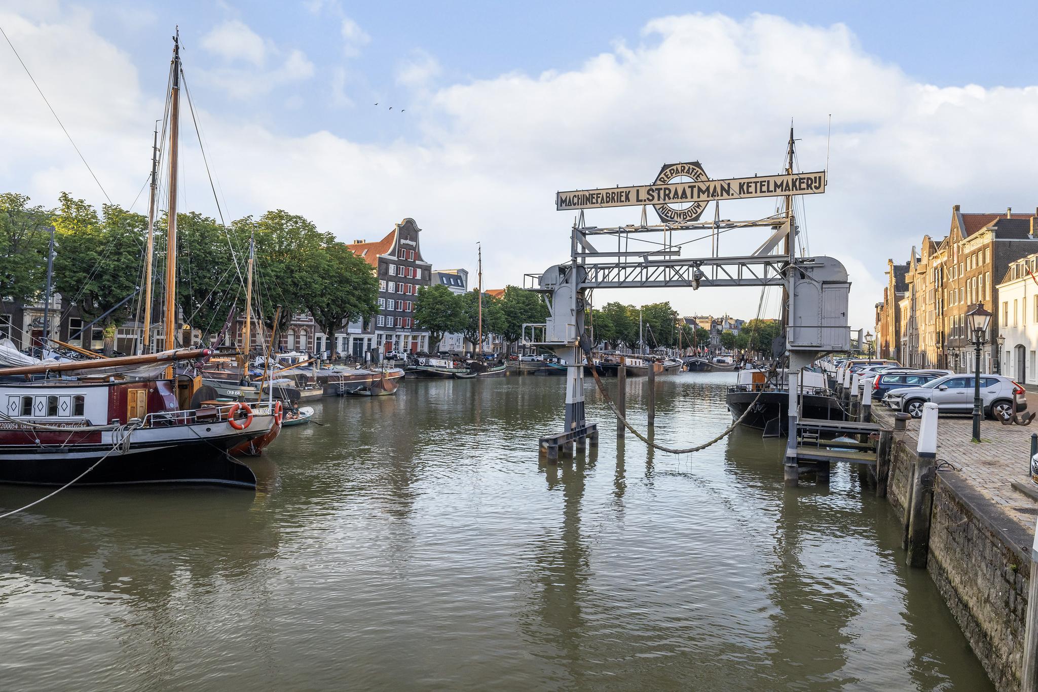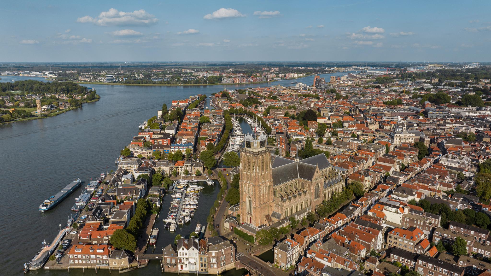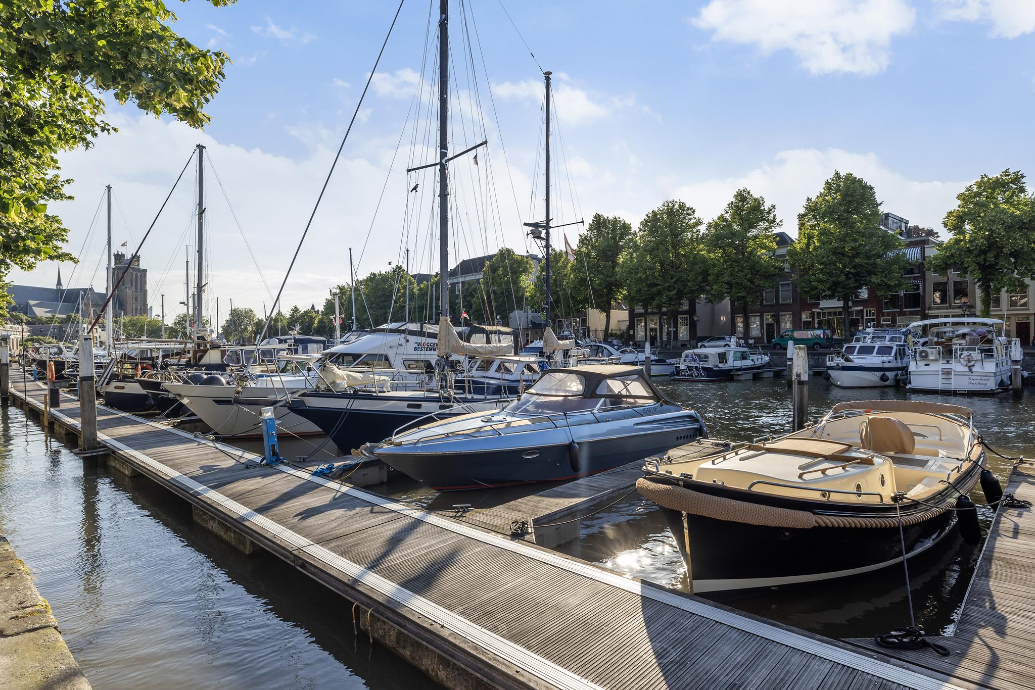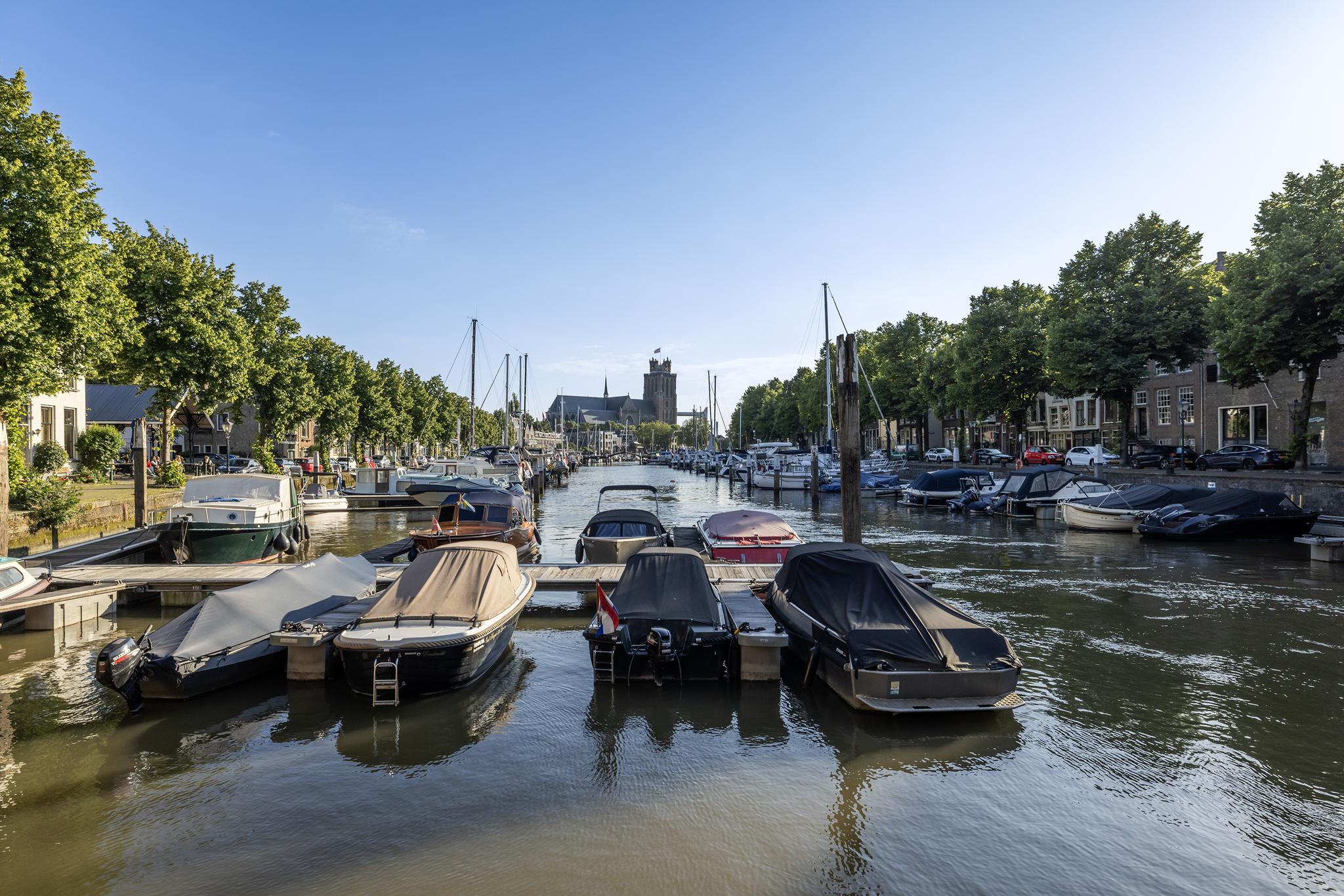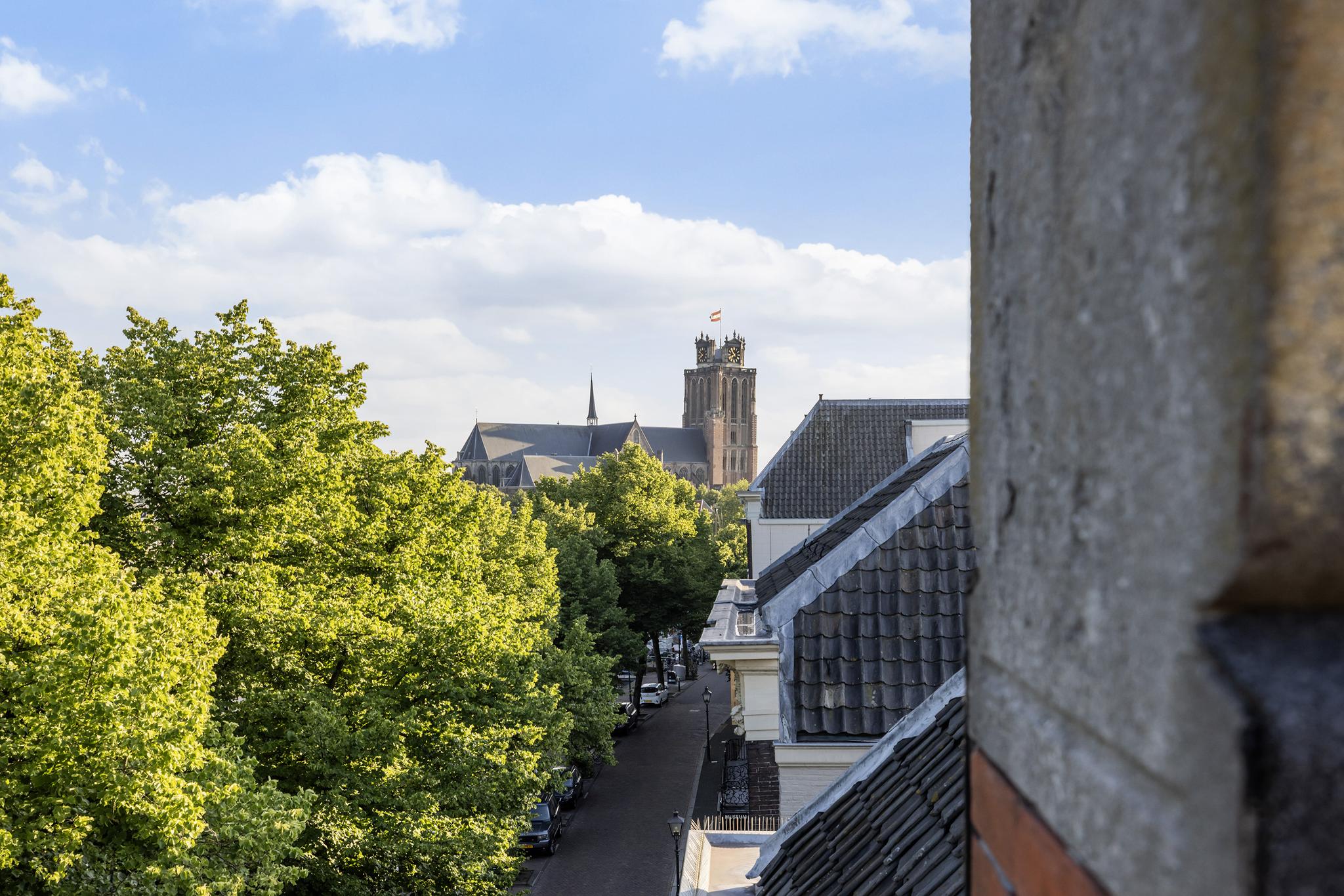 Uitzicht op de schepen in de Nieuwe Haven, maar ook op de prachtige grote Kerk; meer Dordts dan dit wordt het niet!