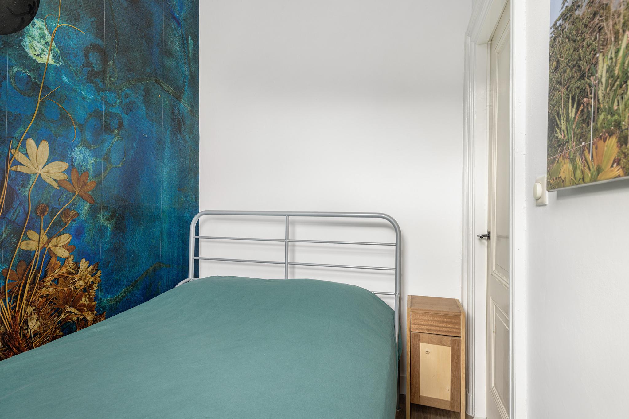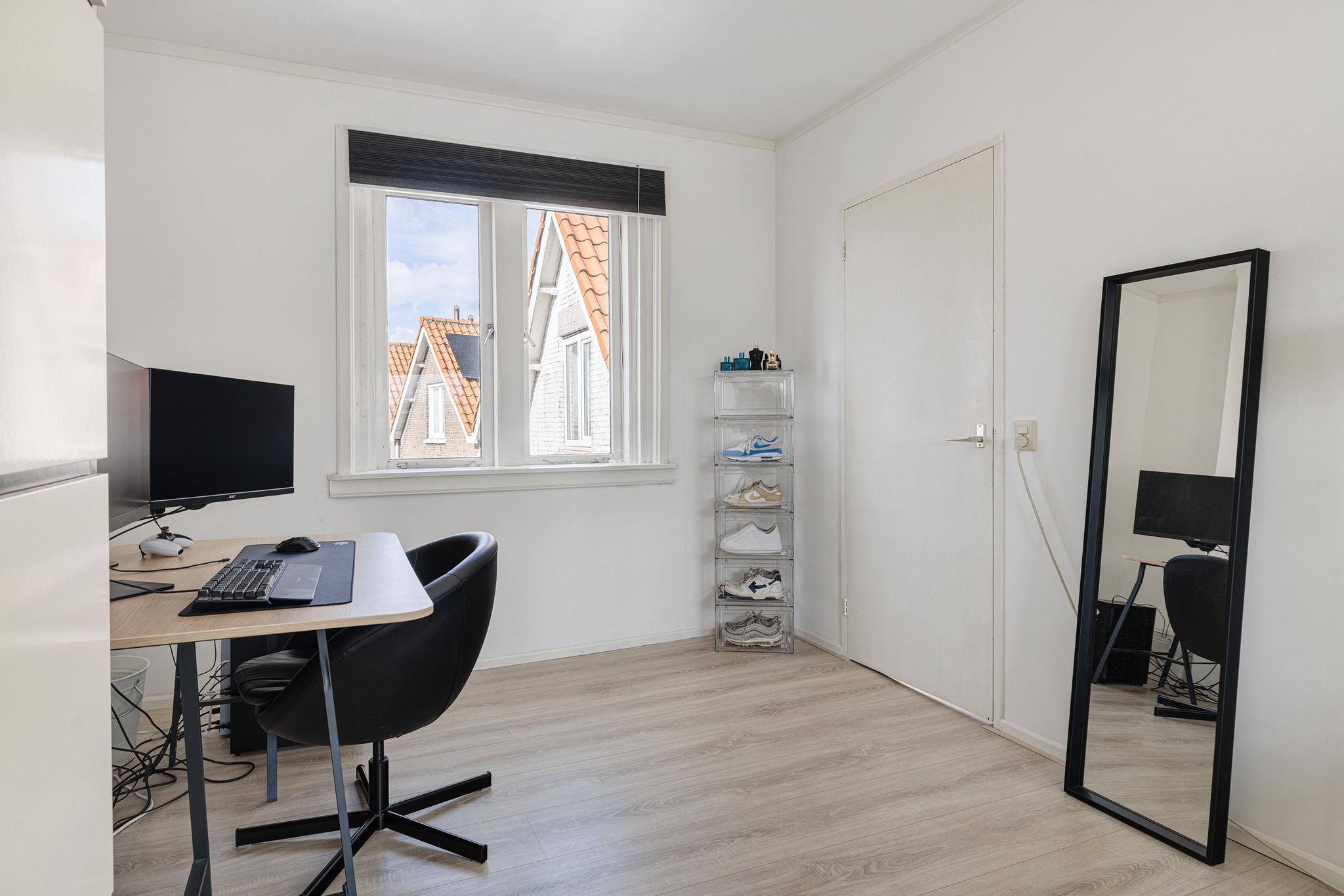 Slaapkamer/ kantoor aan de achterzijde met zicht op de tuin.
