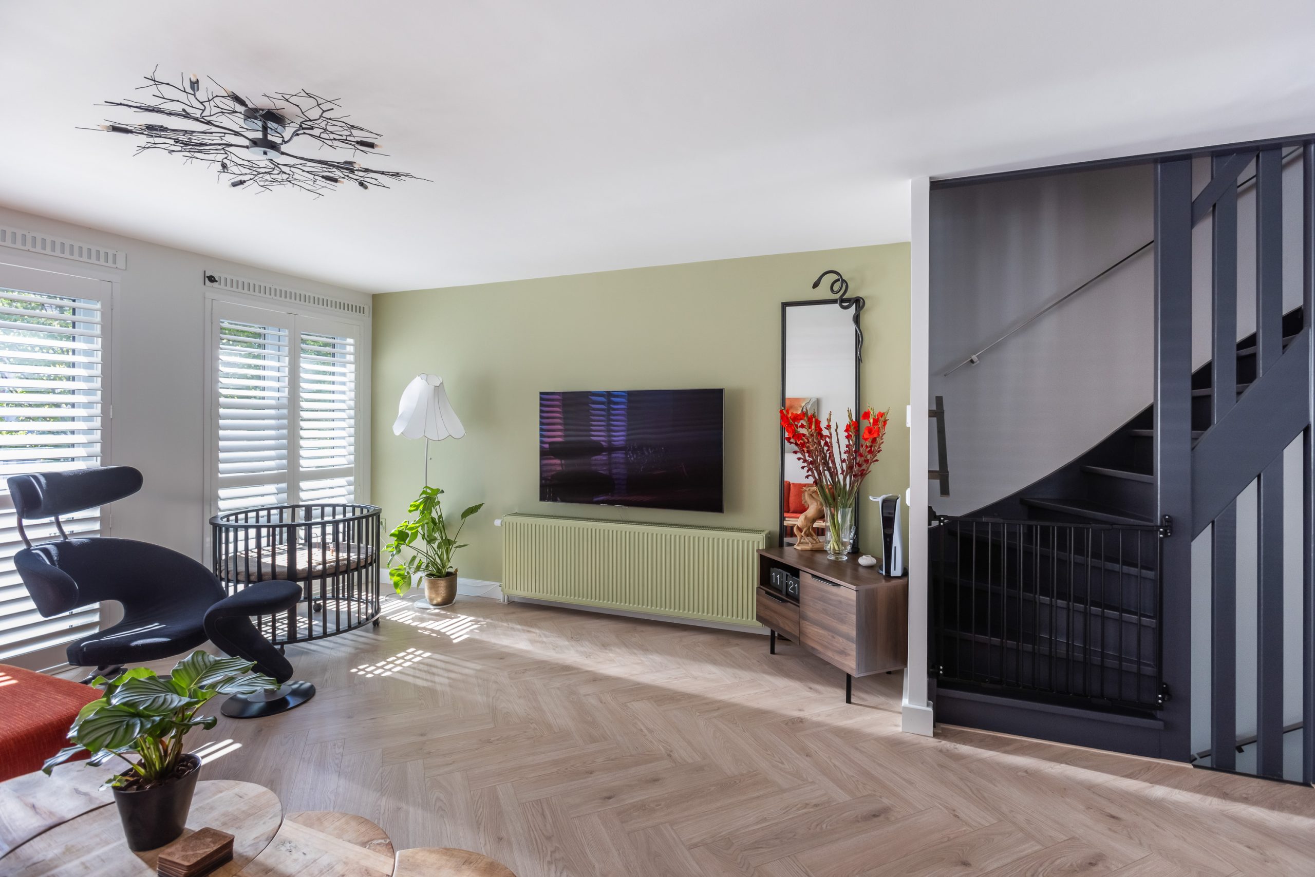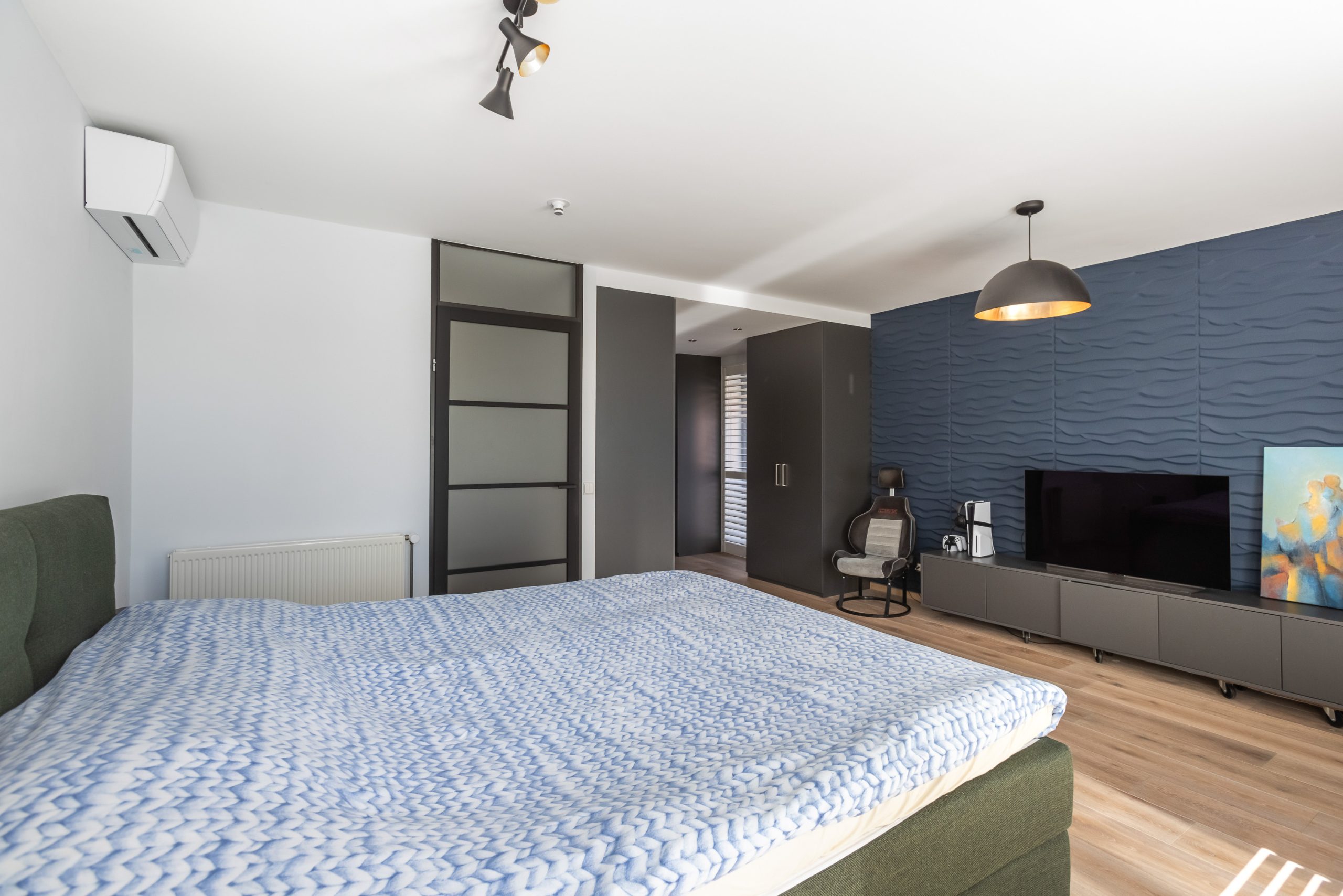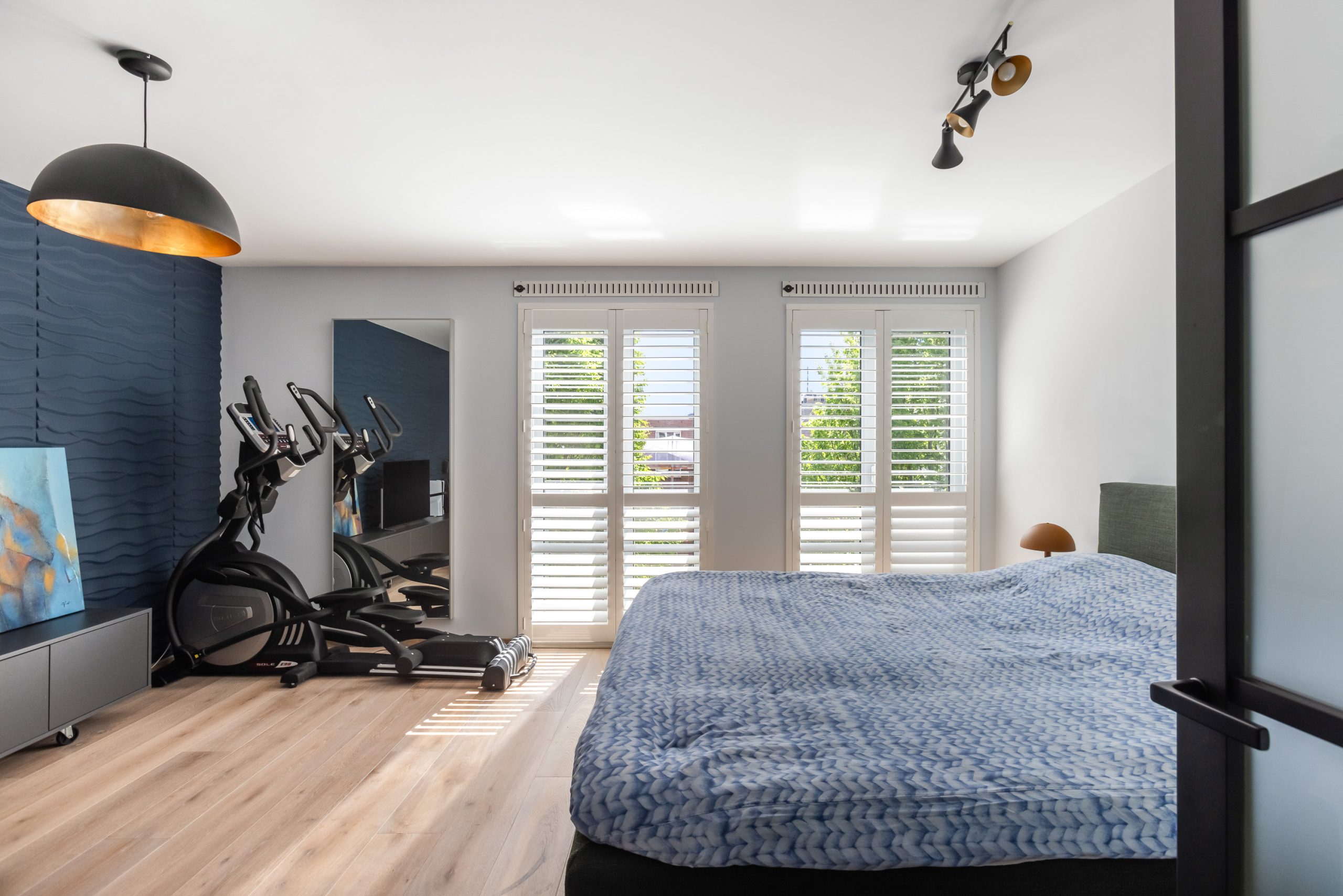 In de kamer is een gasaansluiting aanwezig voor het plaatsten van een haard. Daarnaast is de hele verdieping voorzien van op maat gemaakte schutters om zo de hele dag door de lichtinval op een sfeervolle manier te kunnen regelen.
