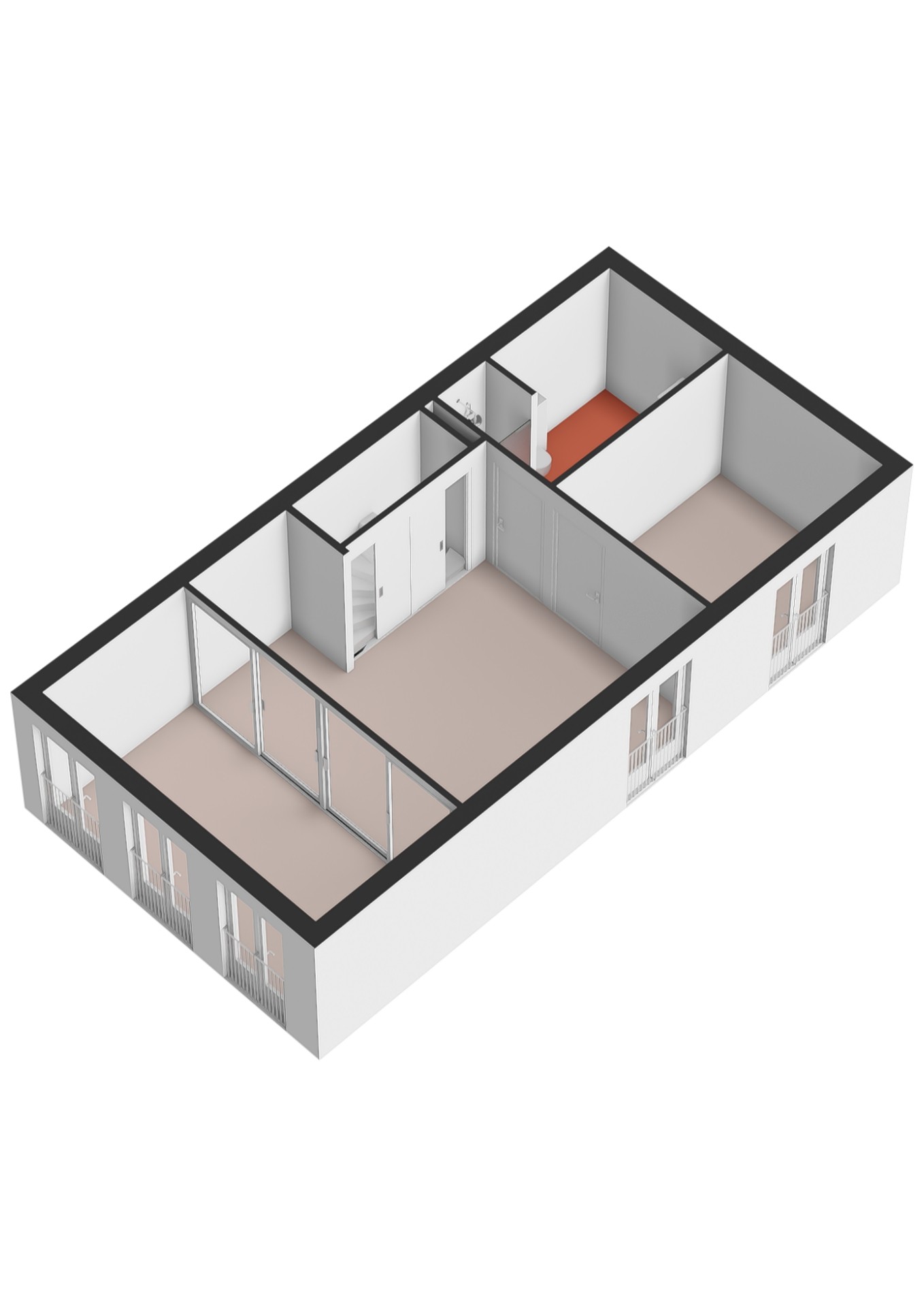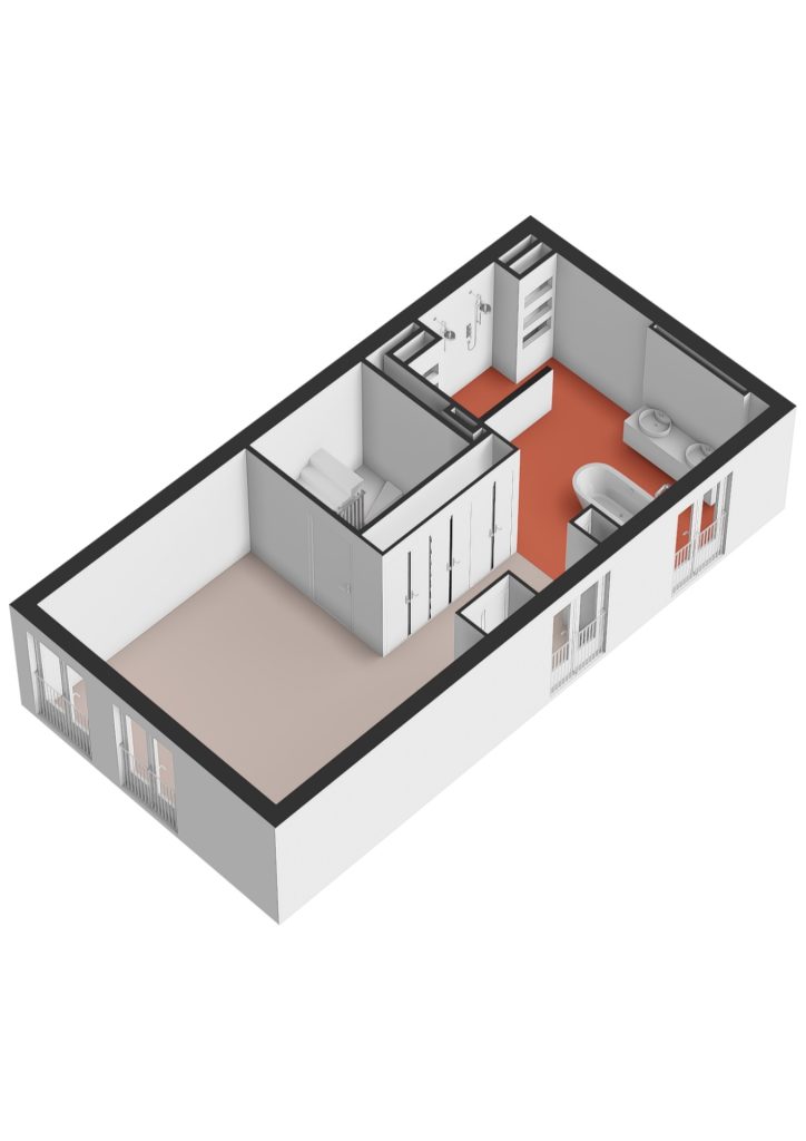 Deze verdieping, behalve de badkamer, heeft een gietvloer. Tevens is er in de slaapkamer een airco-unit met voldoende capaciteit om de gehele verdieping te koelen.