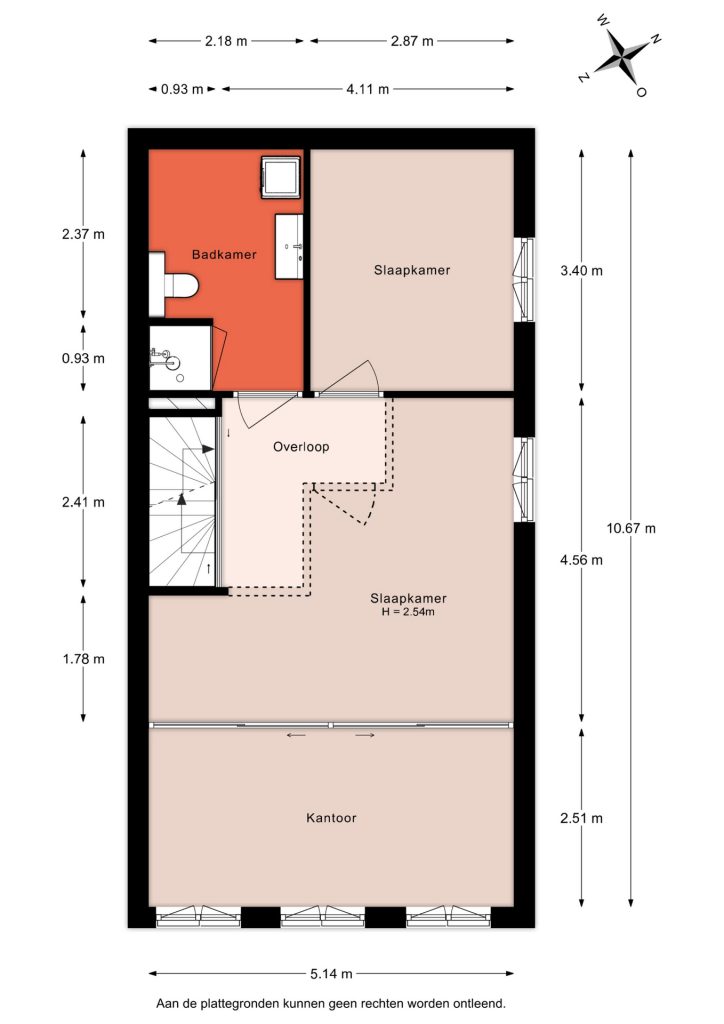 NB: Er zitten 2 plattegronden van deze verdieping bijgevoegd met opties tot het maken van een overloop waardoor je een afgesloten slaapkamer krijgt, in plaats van een open ruimte.