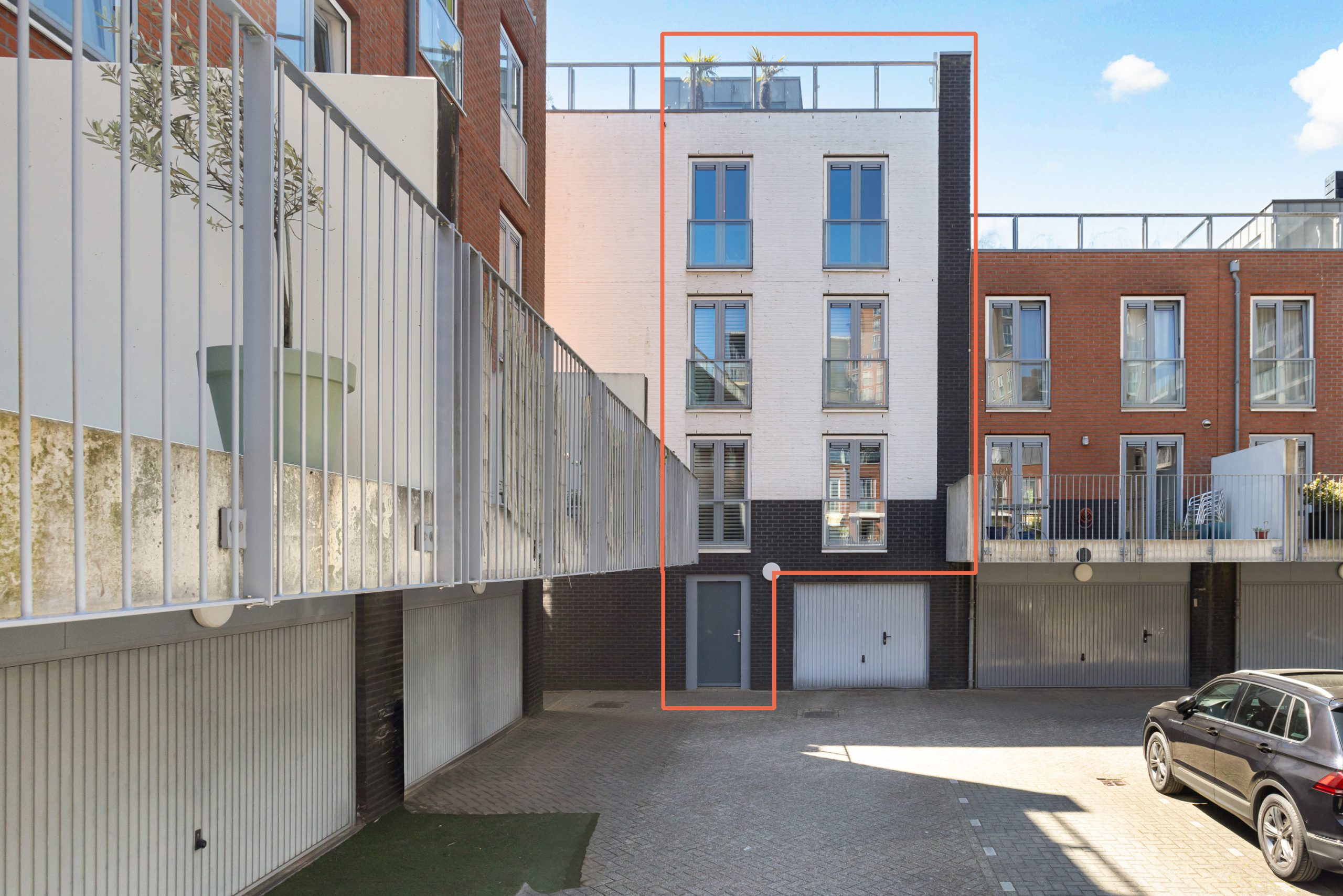 Vanuit de berging kan je via de zijdeur het achtergelegen parkeerterrein bereiken, waar de woning beschikt over een eigen parkeerplaats. In overleg met VvE is het mogelijk om hier een laadpunt te realiseren.