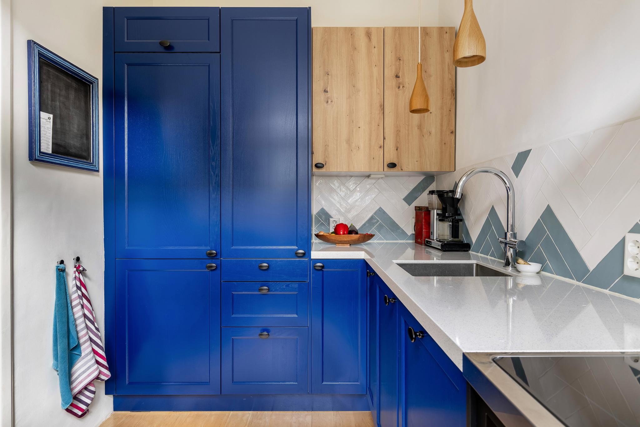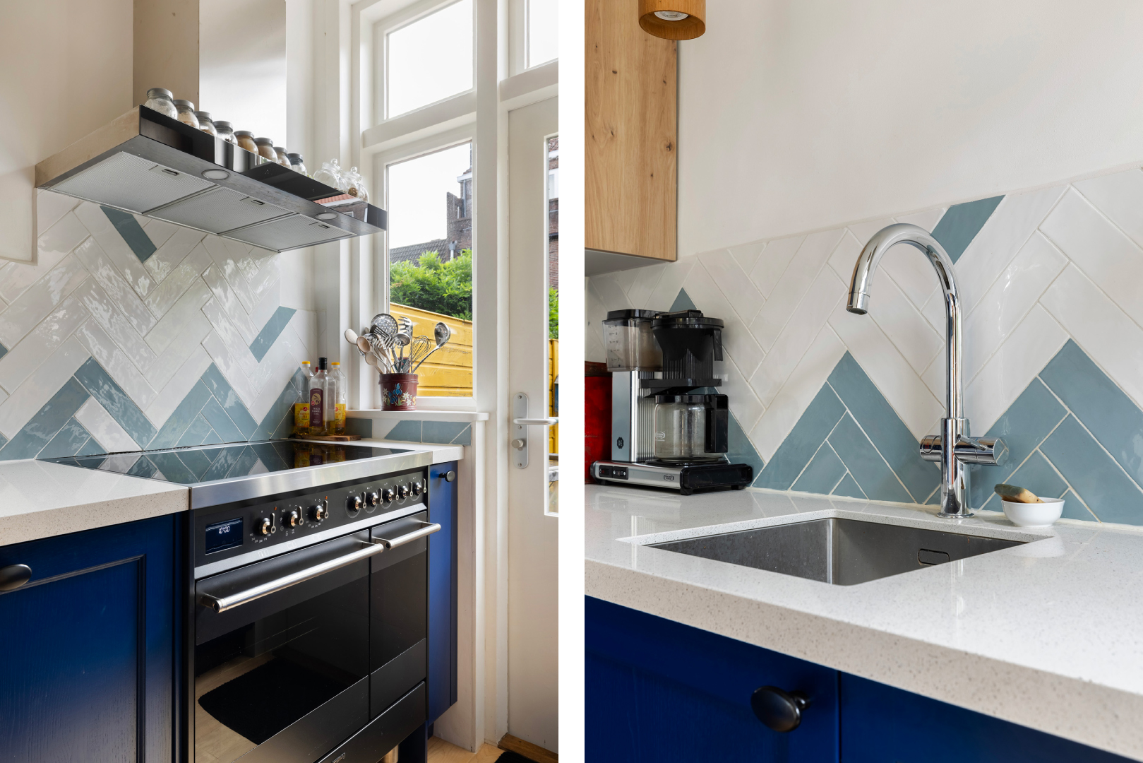 De keuken is in 2022 vervangen en voorzien van een inductiefornuis met 2 ovens, kokend water kraan, magnetron, koelvriescombinatie en vaatwasser. De keuken is gemaakt van hout met composieten blad en heeft een deur naar de tuin.