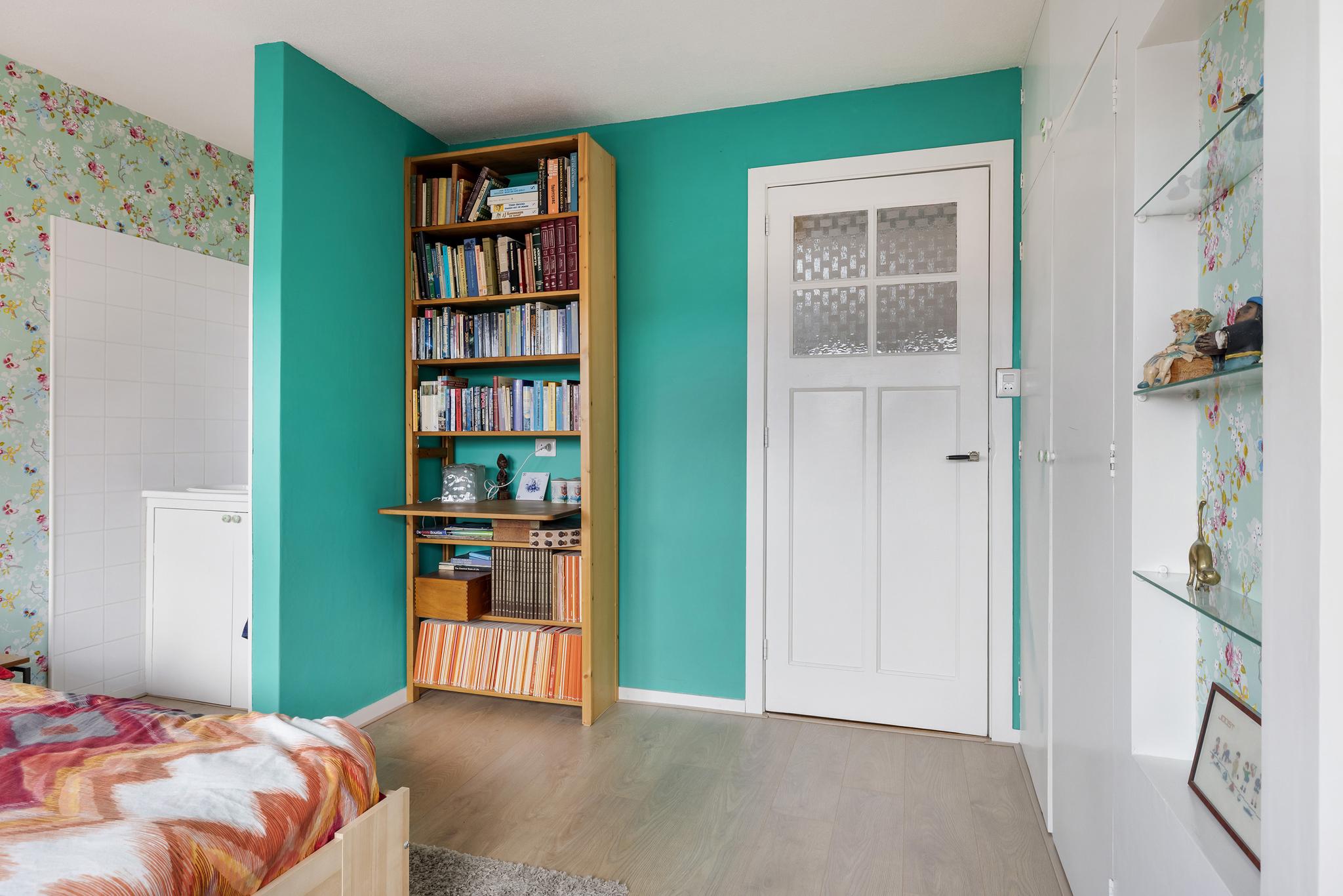 Slaapkamer 3 eveneens aan de voorzijde met 2 vaste kasten en marmeren schouw en wastafel.