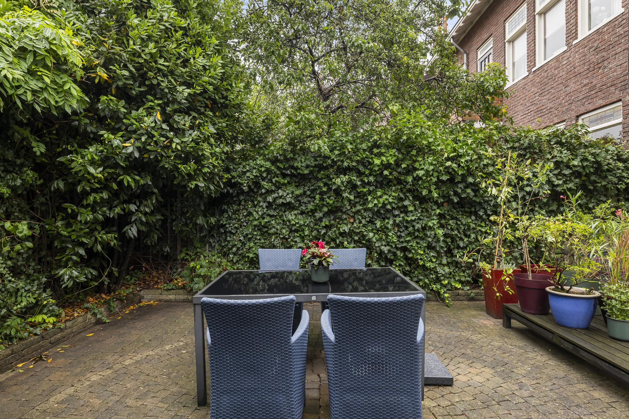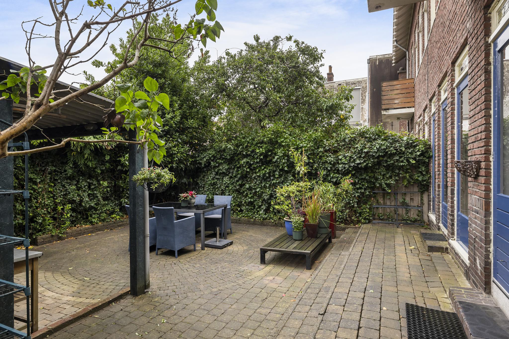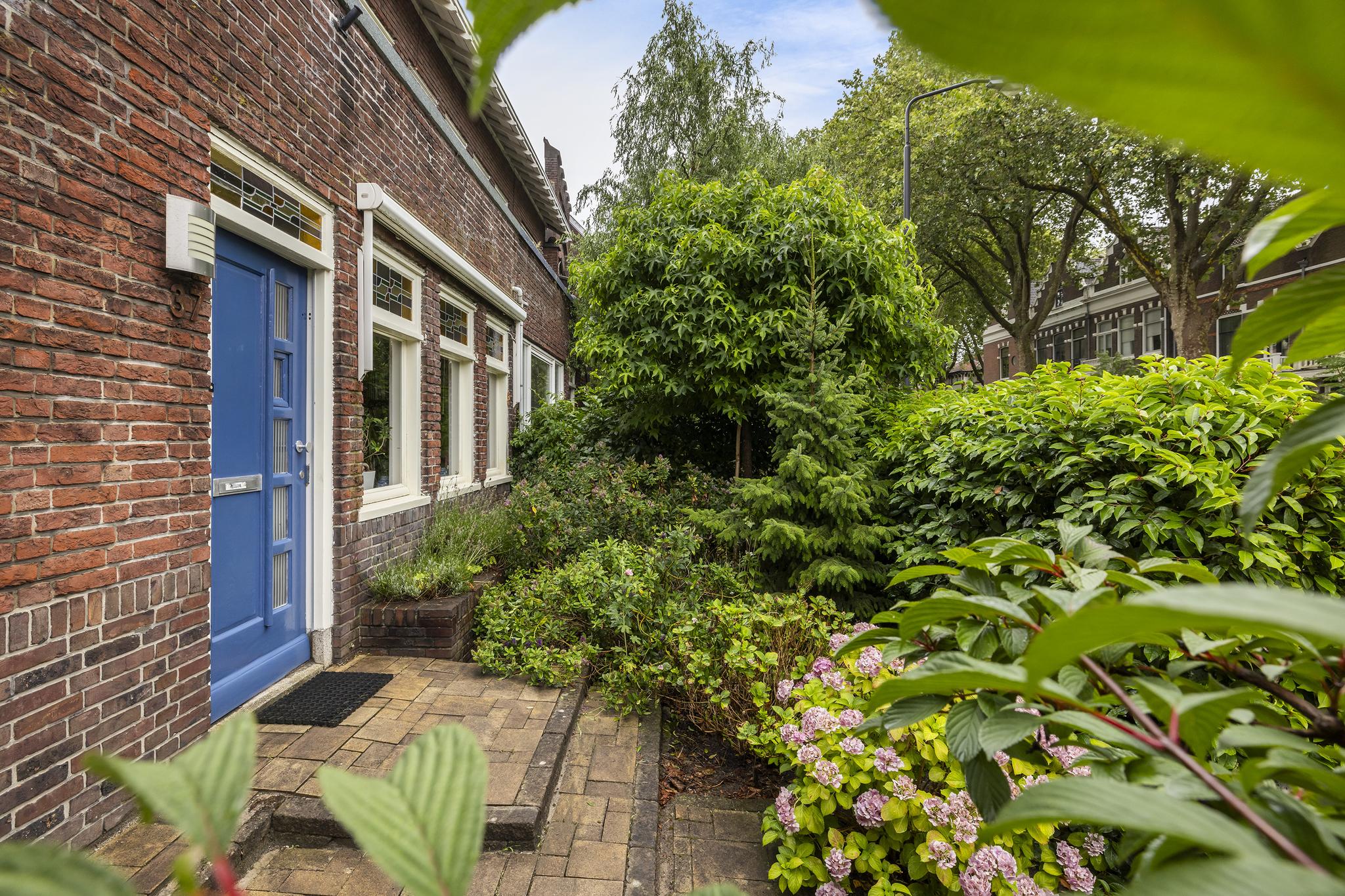 Groene voortuin met toegang tot voordeur en tot de oude opgang naar de voormalige bovenwoning, deze kan nu worden gebruikt als extra buitenruimte!