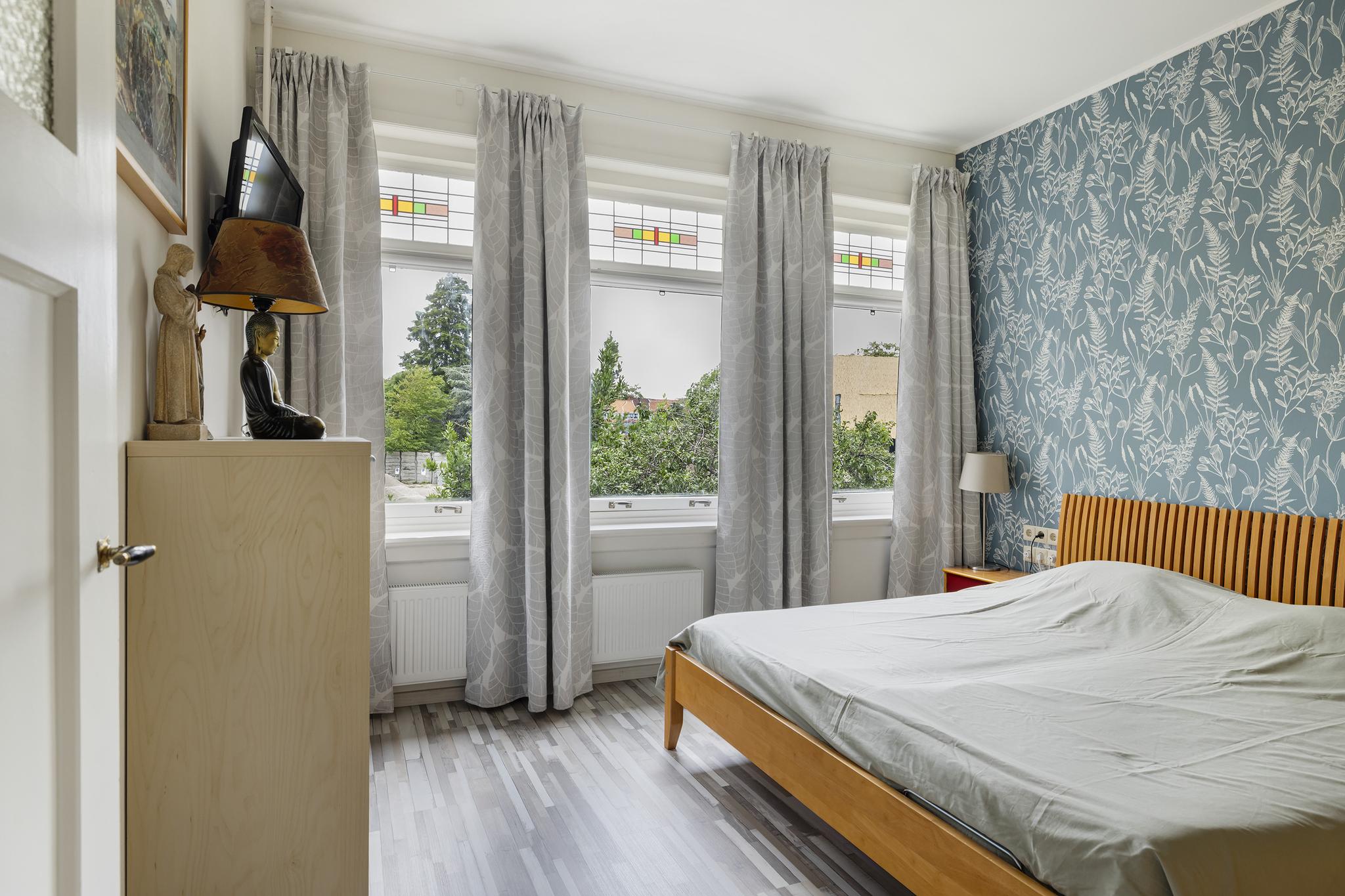 Door de hoge plafonds voelen alle slaapkamers ruimtelijk aan. Deze beschikken tevens allemaal over prachtige glas-in-lood bovenramen!