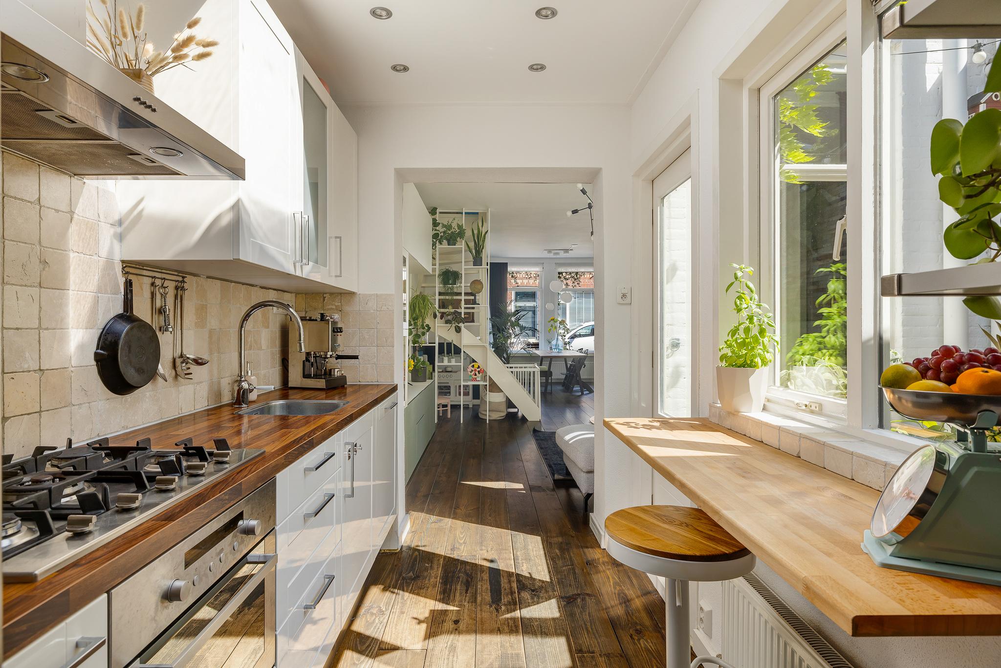 De mooie houten vloeren met stoere uitstraling zijn op alle verdiepingen te vinden en zorgen voor eenheid in huis.