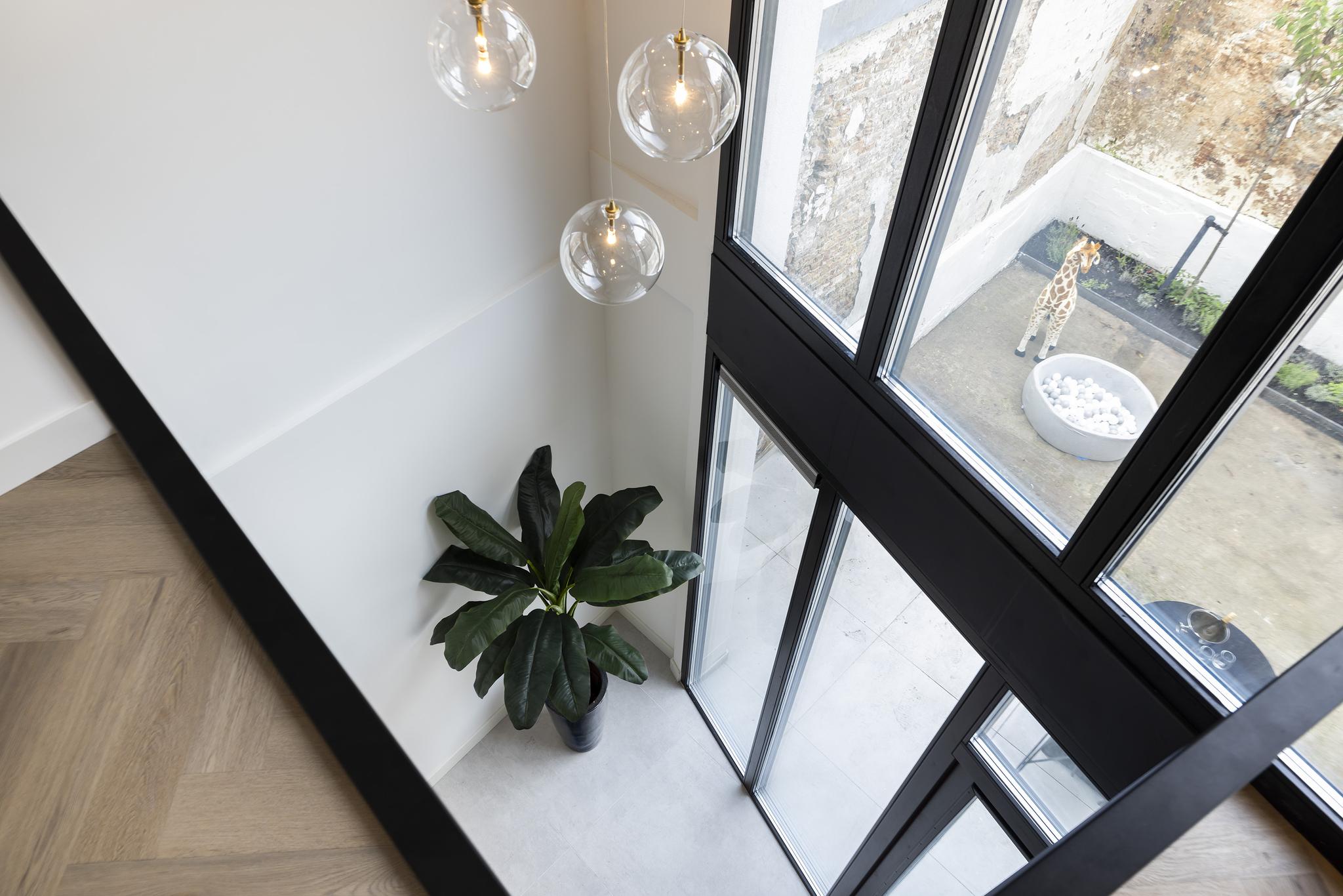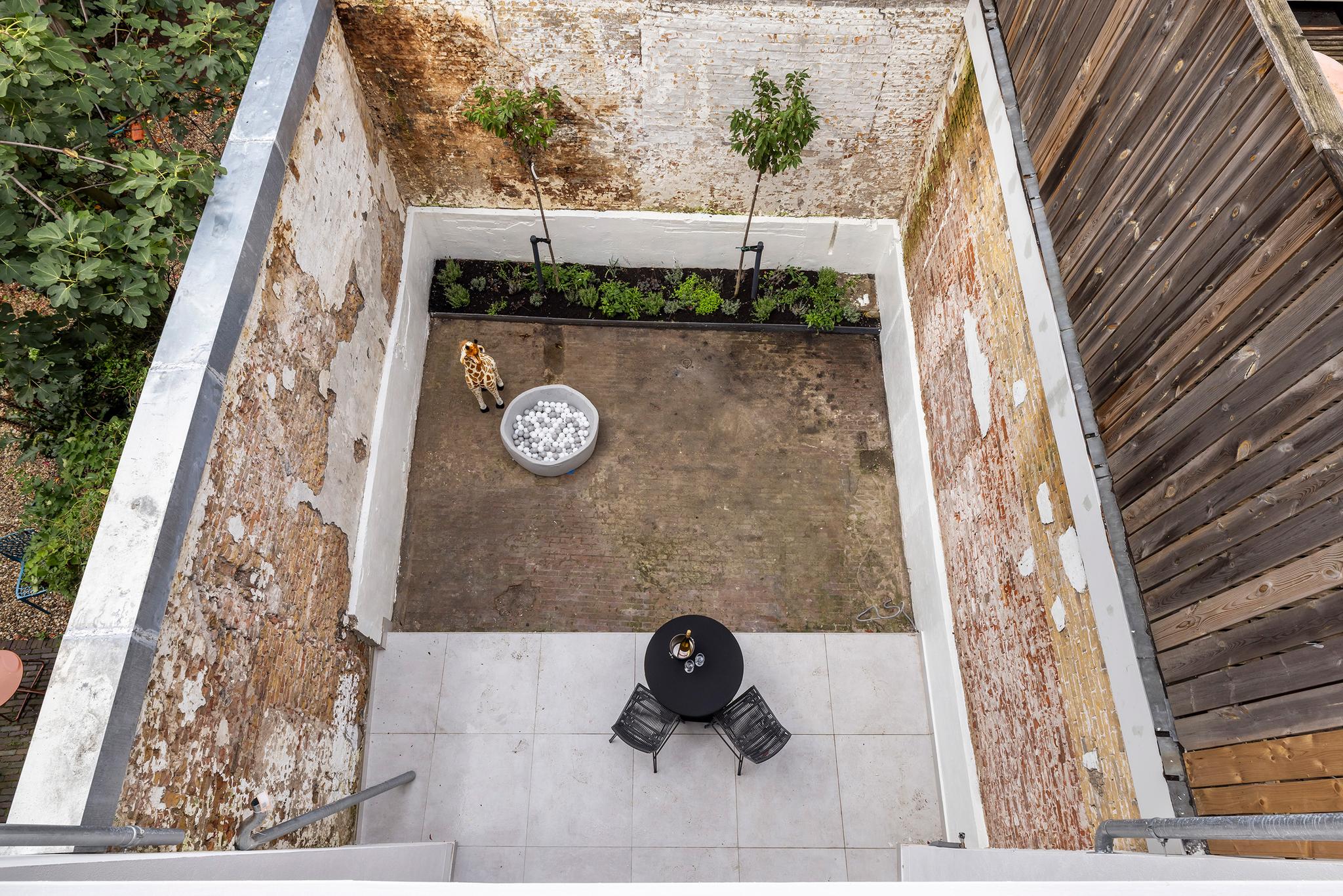 De tuin is gelegen op het zuidwesten en is meer dan 30m2 groot. Vanuit de tuin heb je prachtig zicht op de volledig nieuwe achterpui, een prachtige glazen gevel met HR+++ glas, uniek om zo'n karakteristieke voorgevel van het pand te zien samengaan met deze stoere en strakke achtergevel.
