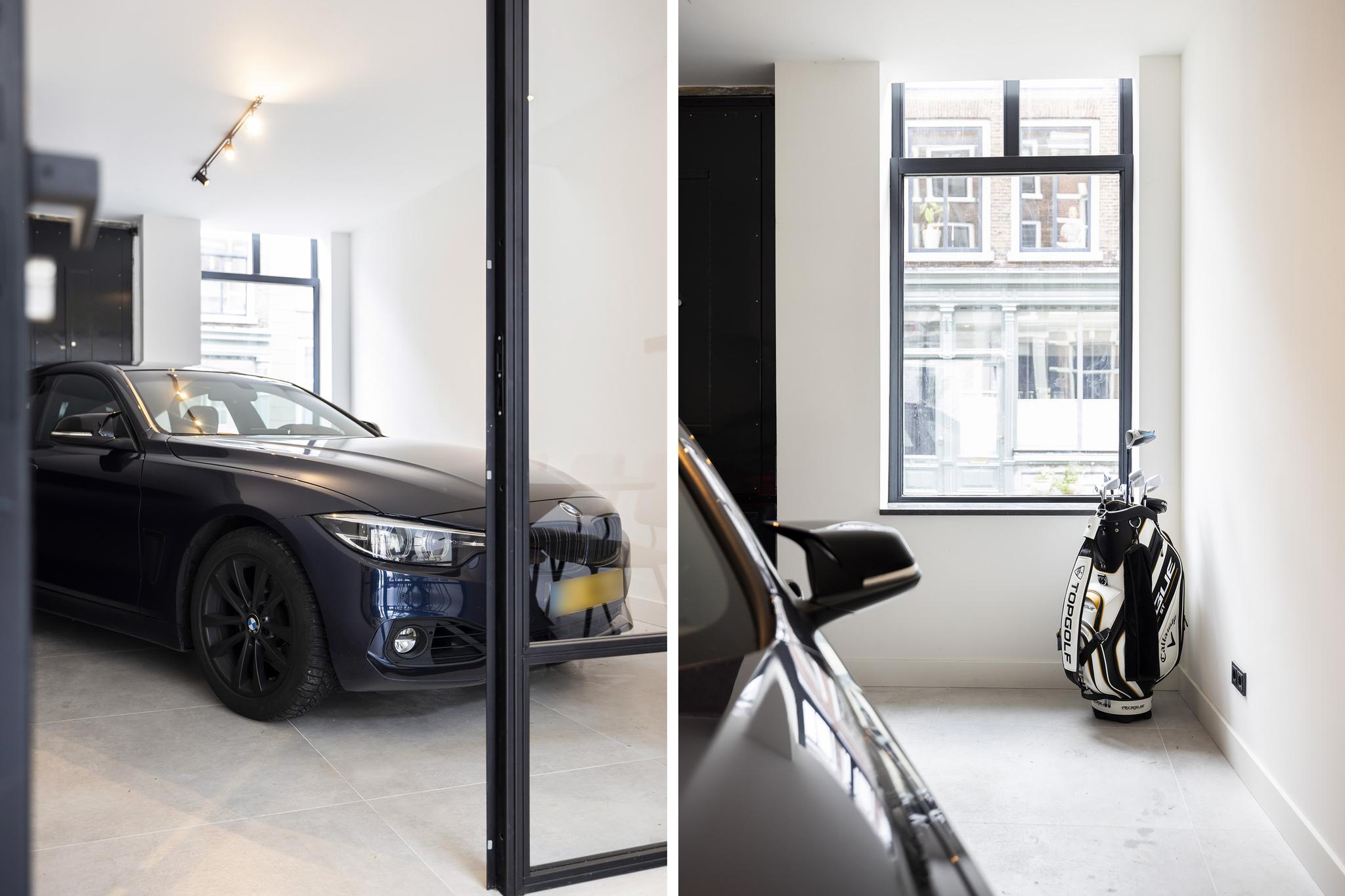 Maar dit is nog niet alles: aan de voorzijde van de woning is een prachtige ruimte gemaakt waar je je auto/ motor/ oldtimer kan parkeren. Door de bijzonder toffe glaswand kan je vanuit de eetkeuken naar je bolide kijken! Heb je geen auto of rijtuig wat het bekijken waard is? De ruimte doet ook prima dienst als berging, chill room voor de kinderen, natuurlijk als werkkamer of als kantoor aan huis.