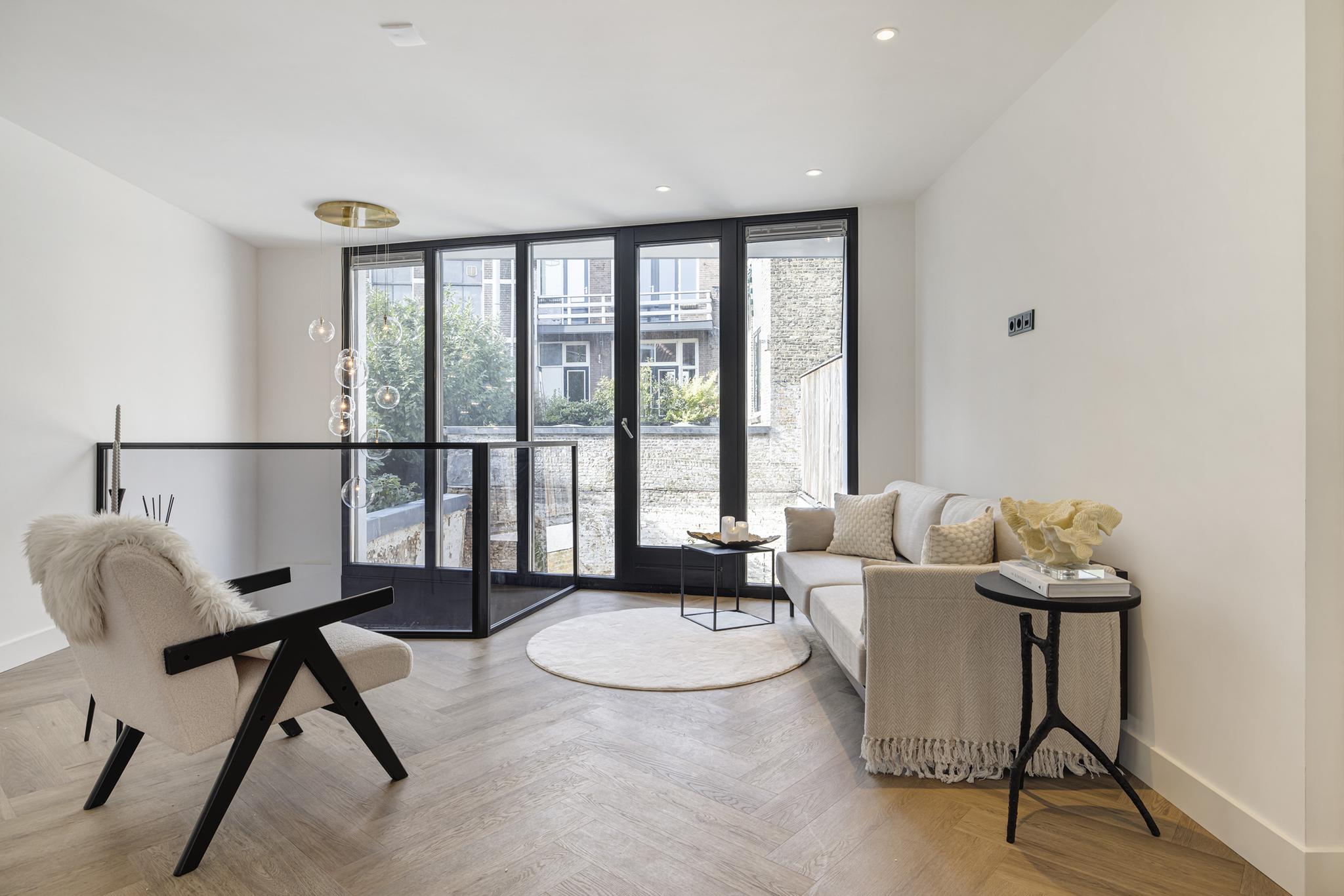 Deze volledige verdieping is gewijd aan wonen. Vanuit de hal loop je de werkelijk enorme woonkamer in. Aan de achterzijde is een speelse vide gemaakt. Ook is er een zij-kamer aanwezig aan de achterzijde zodat je thuis kunt werken maar een extra slaap-of logeerkamer is natuurlijk ook altijd fijn!