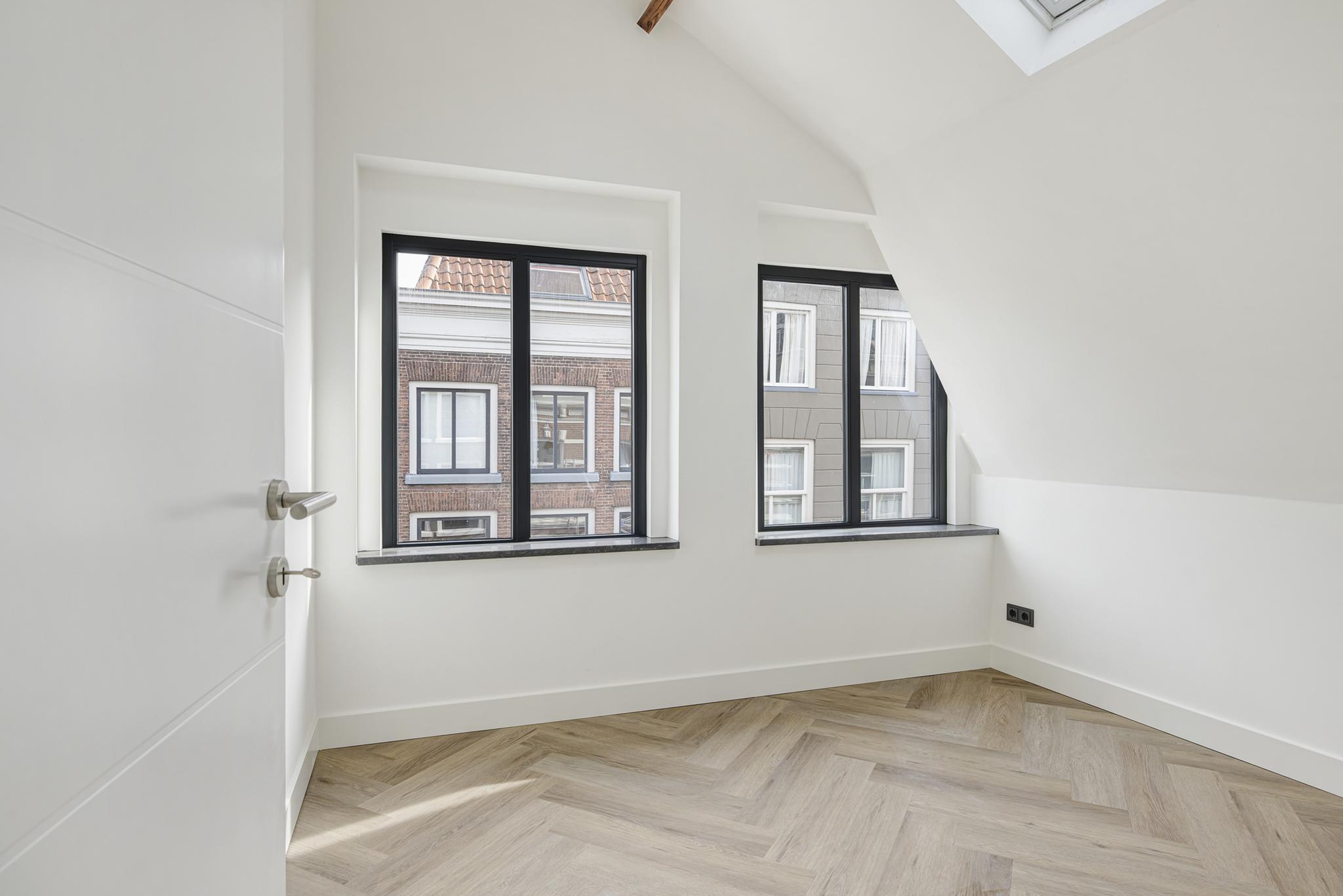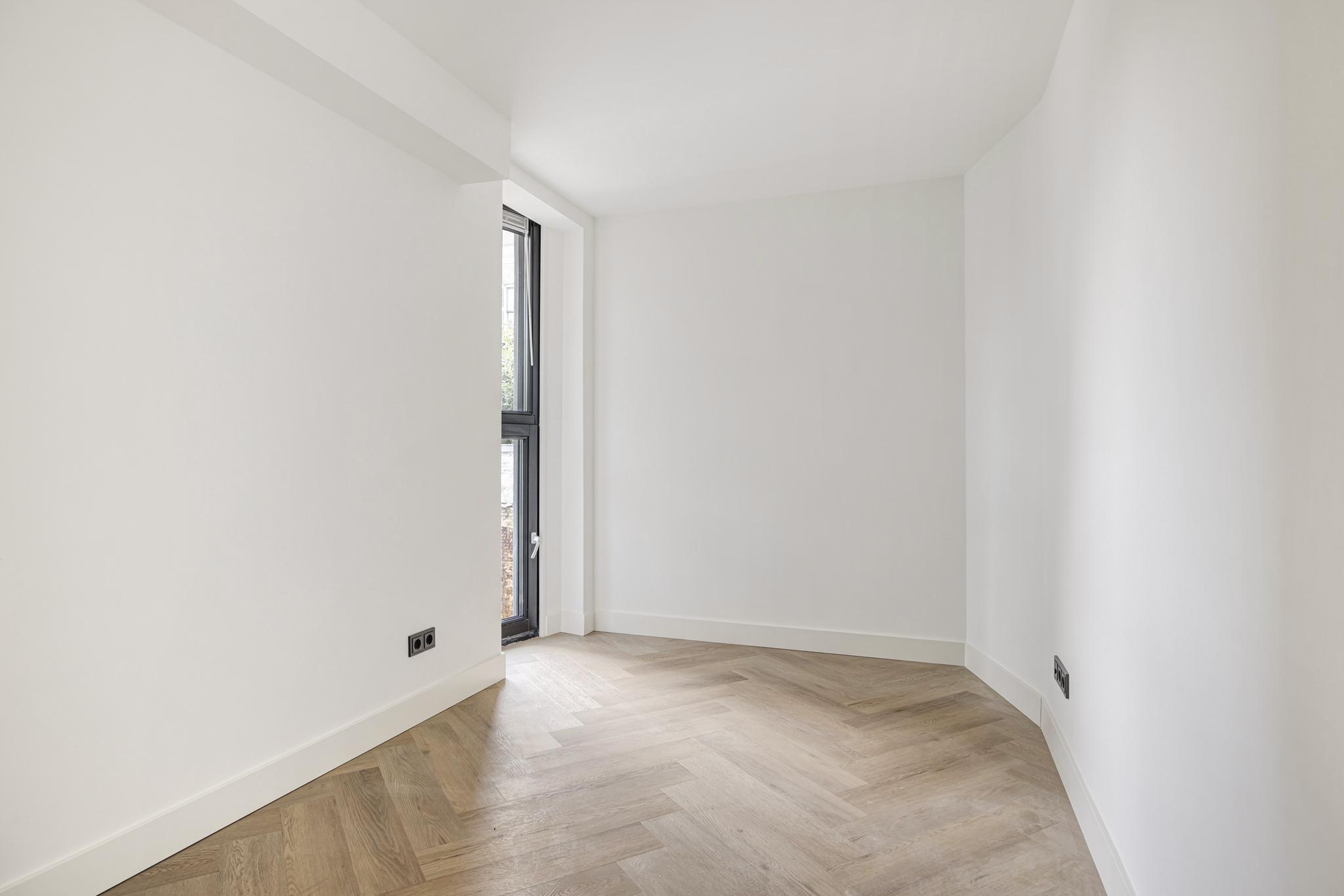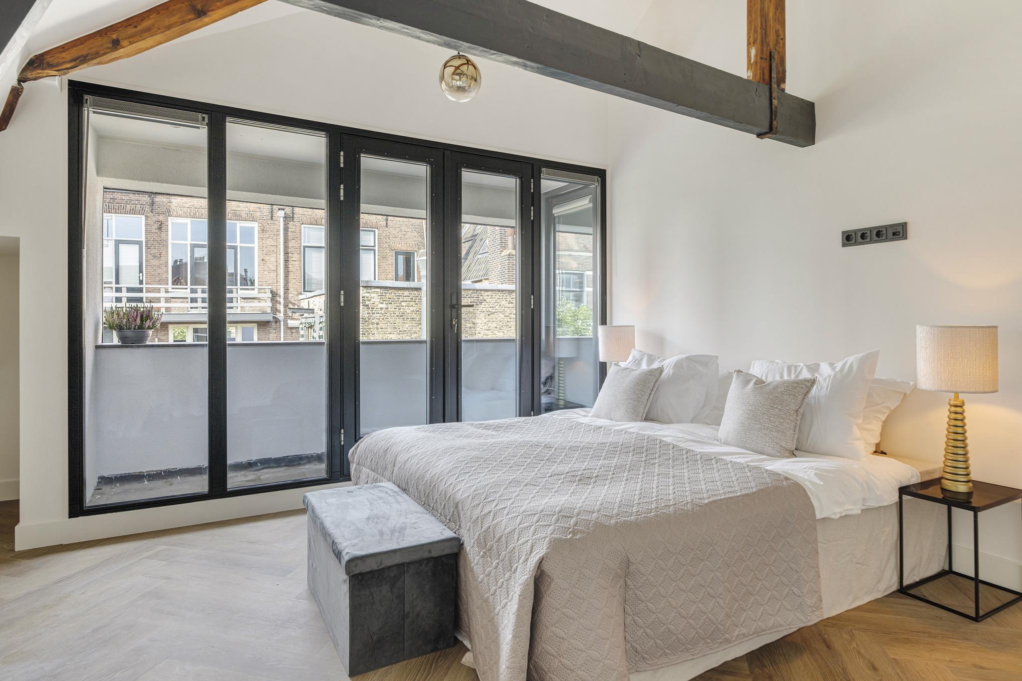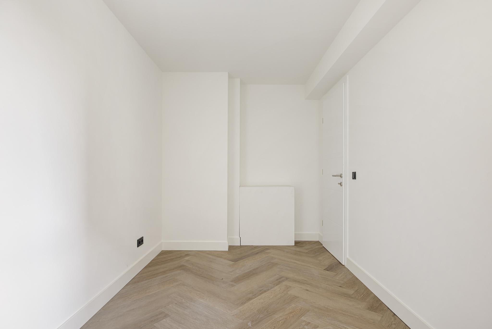 Slaapkamer 3 aan de achterzijde is wel heel bijzonder: de kamer beslaat de gehele breedte van het pand en bestaat uiteraard uit een royaal slaapgedeelte met openslaande deuren naar het balkon op het westen. Er is echter ook een eigen inloopkast aanwezig EN een zeer luxe eigen badkamer.