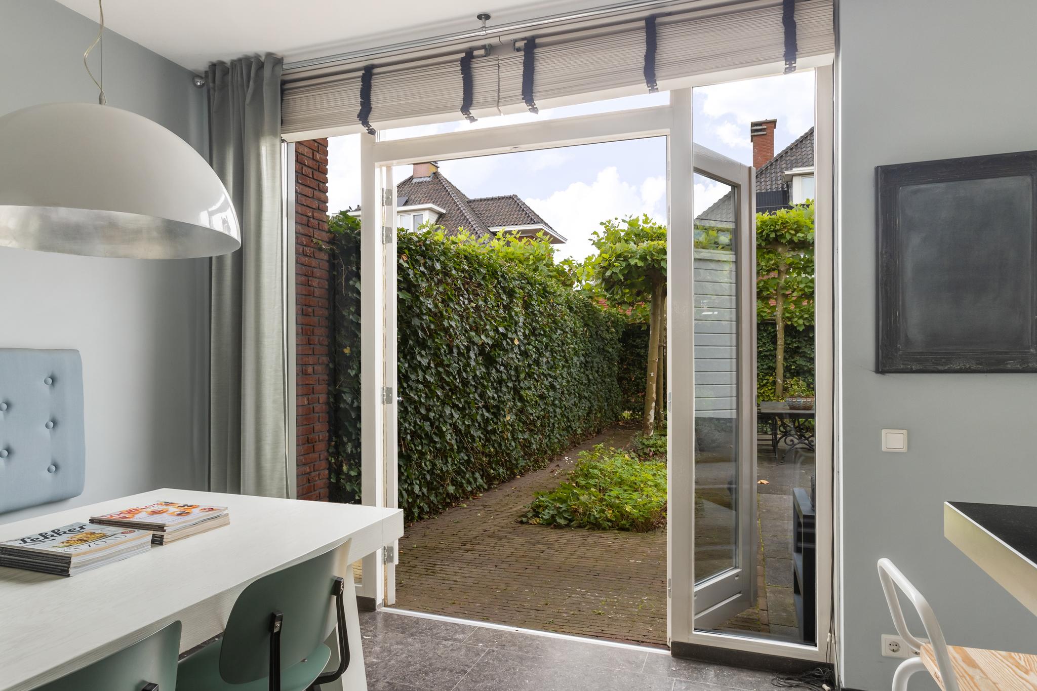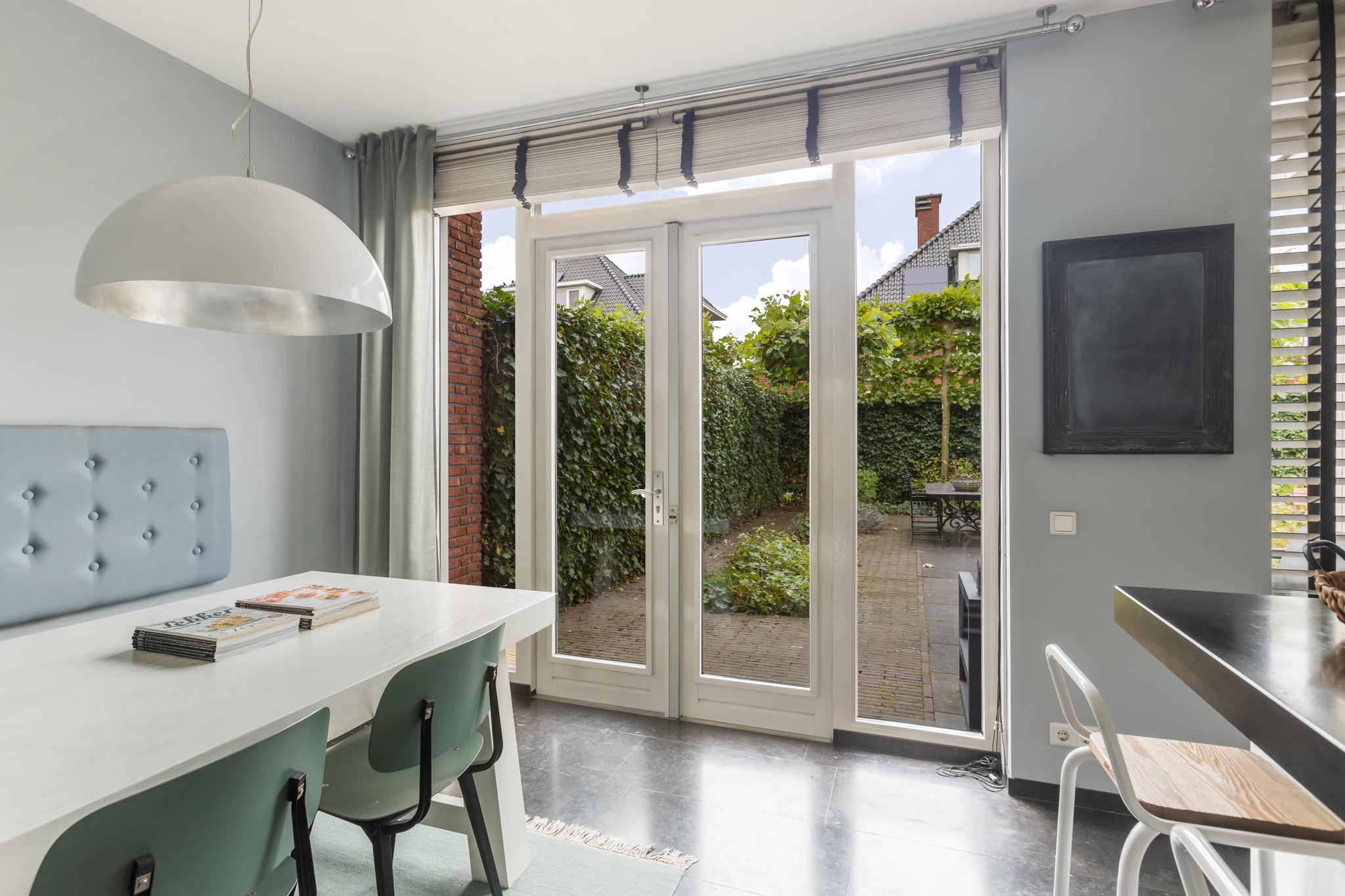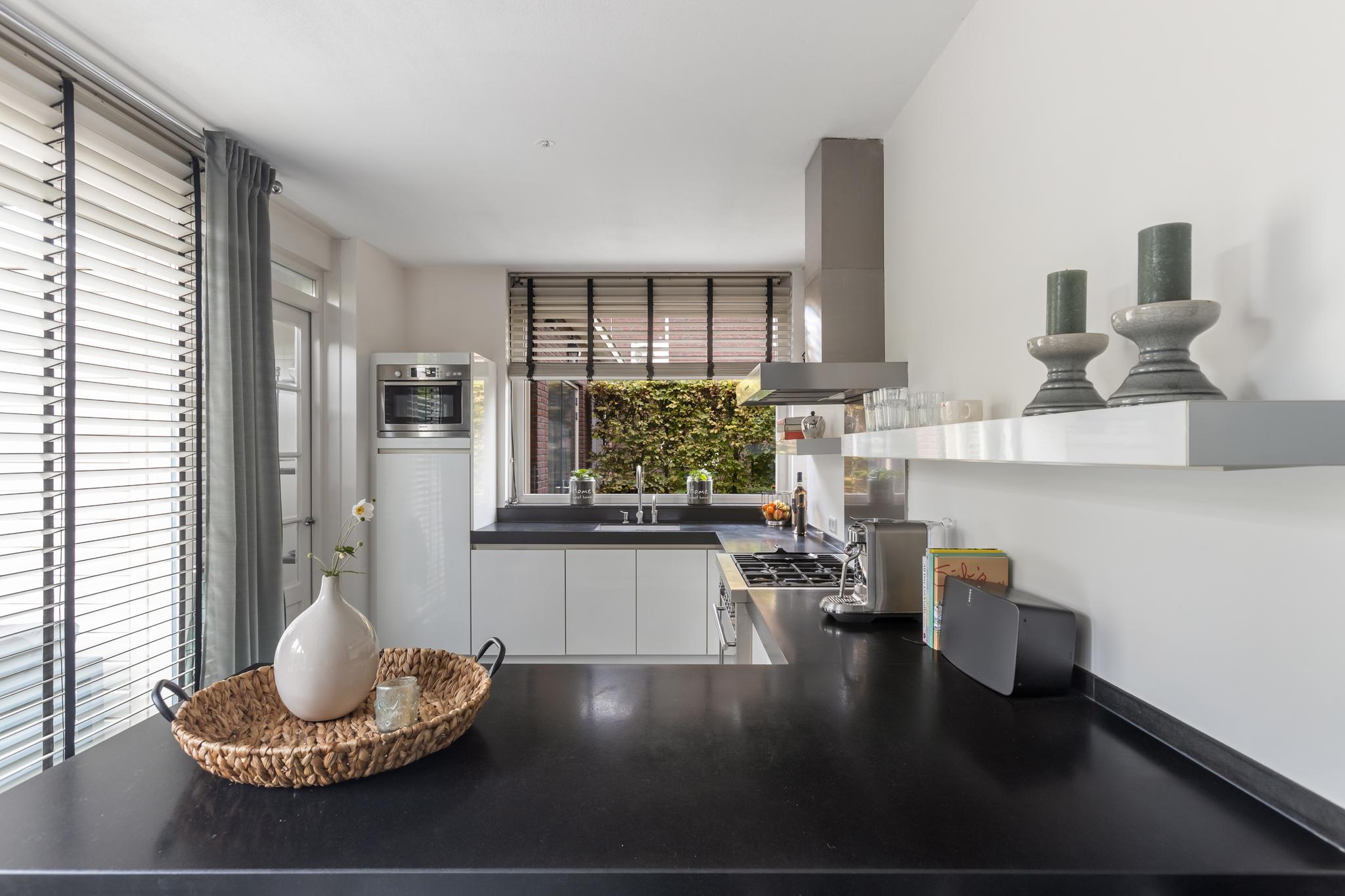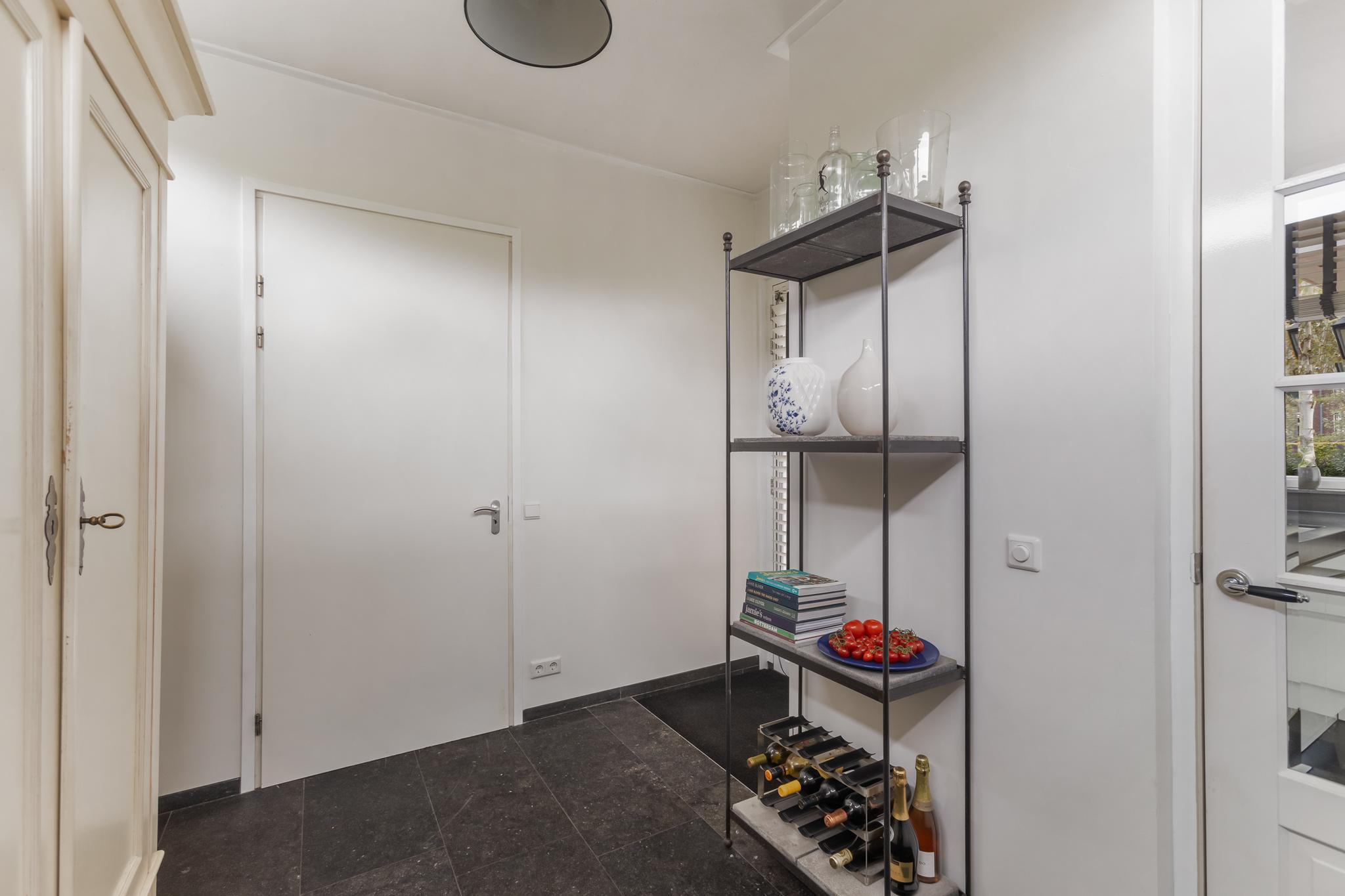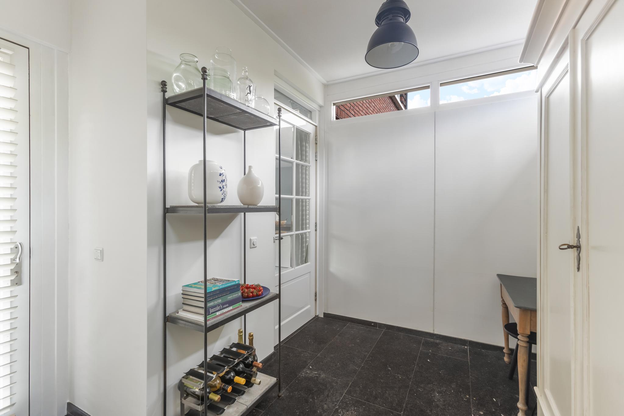 Bijkeuken met deur naar de voortuin, de bijkeuken verbind de woning met de garage.
