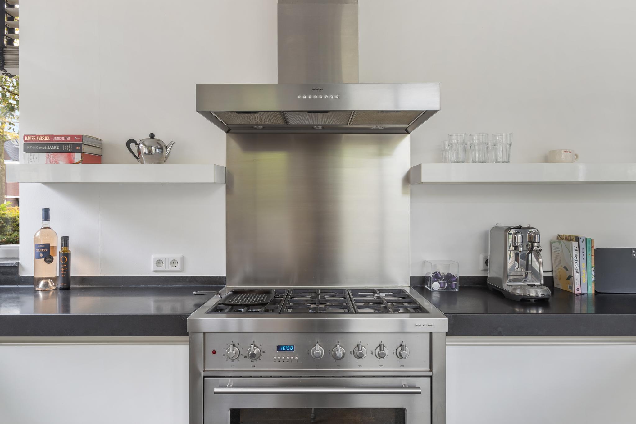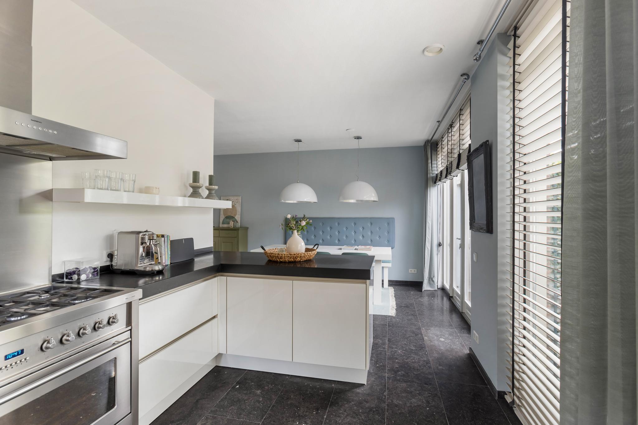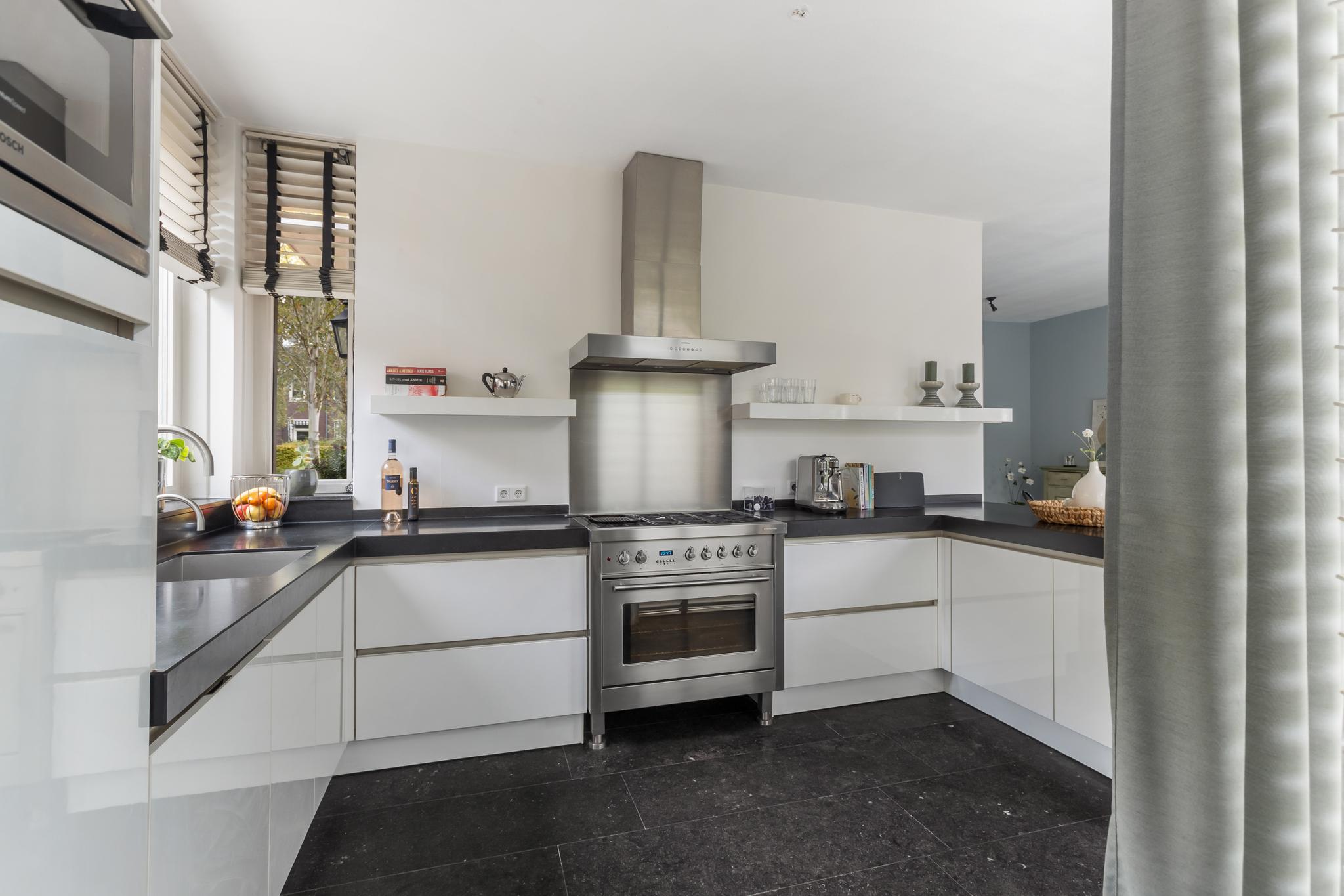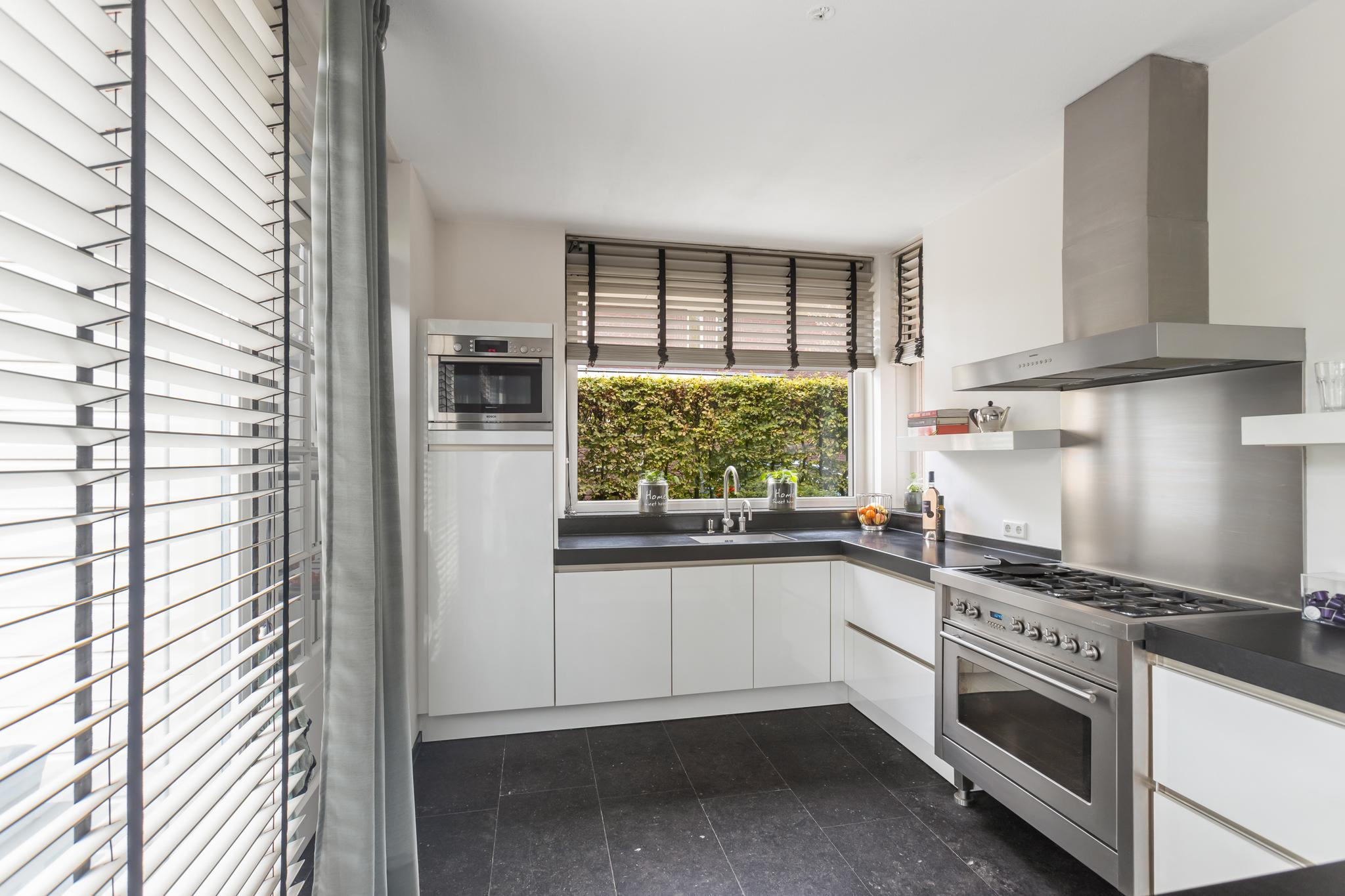 Keuken van het vooraanstaande merk Siematic in U opstelling met schiereiland voorzien van een kooktoestel met oven, rvs schouw, koelkast, combi magnetron, spoelbak, vaatwasser, Quooker. Vanuit de keuken toegang tot de (vanuit bouw aangebouwde) bijkeuken. De vaatwasser en koelkast zijn ca. 3 a 4 jaar geleden vernieuwd.