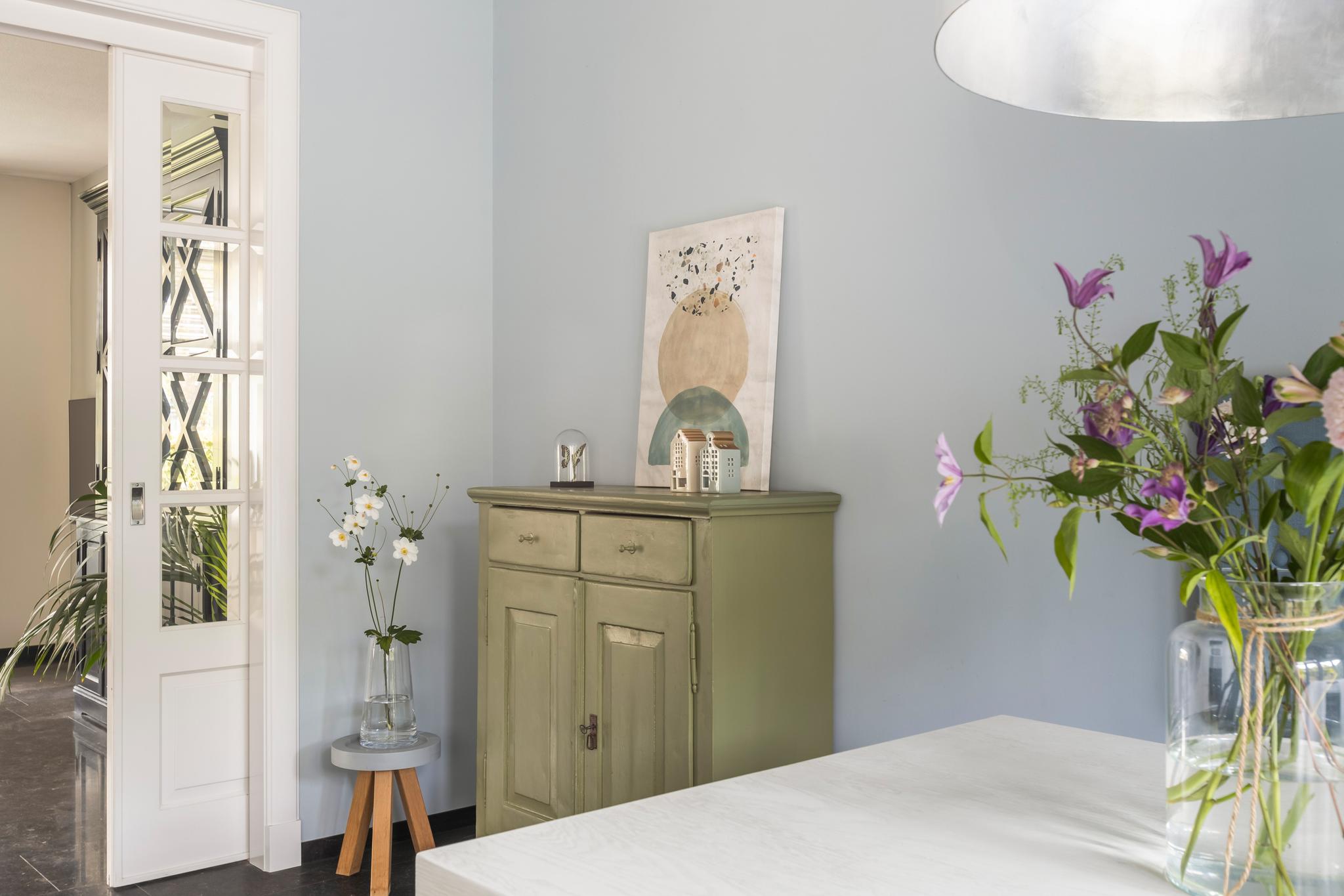 Het eetkamergedeelte zit direct aan de keuken vast, tijdens het koken houd je dus gezellig contact met degene die mee-eten. De en suite deuren geven een authentieke sfeer, de open haard voelt gemoedelijk en de lichtinval is zacht & warm. Al met al een verdieping waar je enorm comfortabel zit!