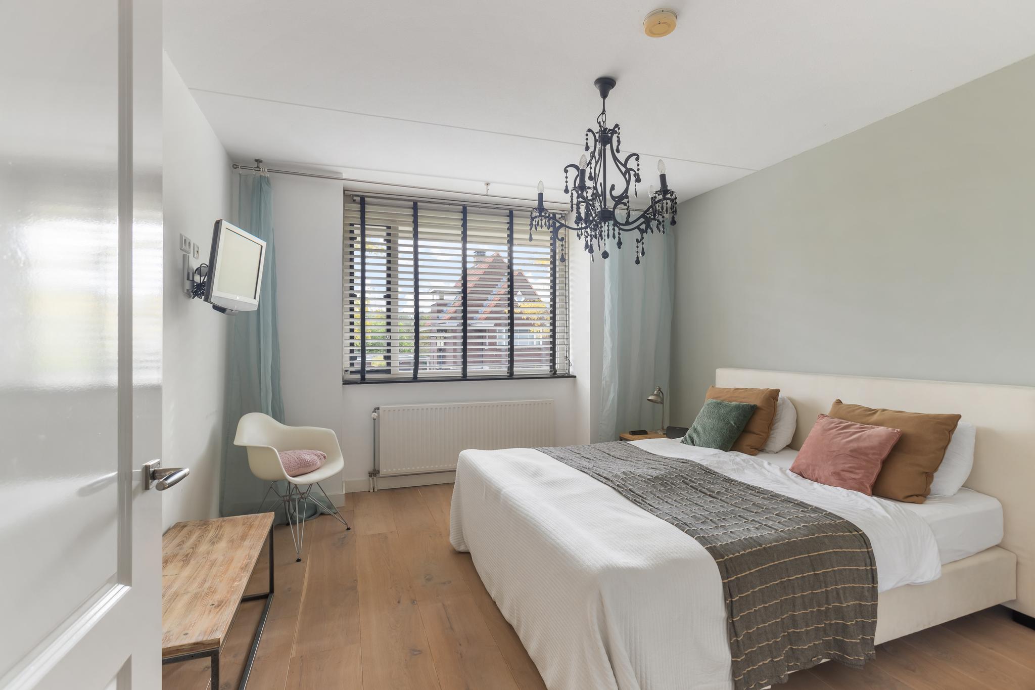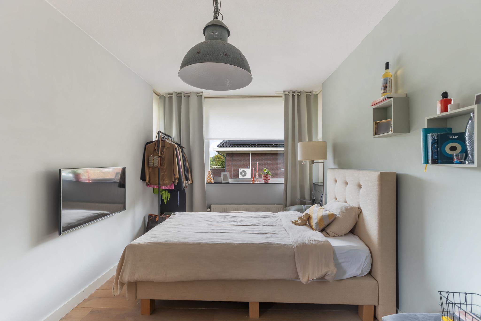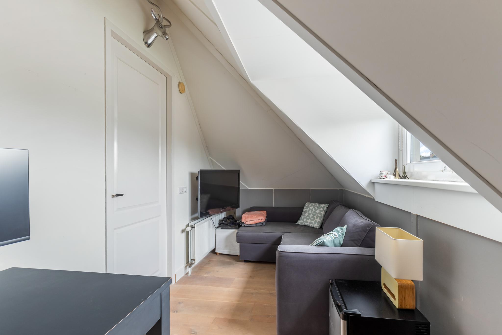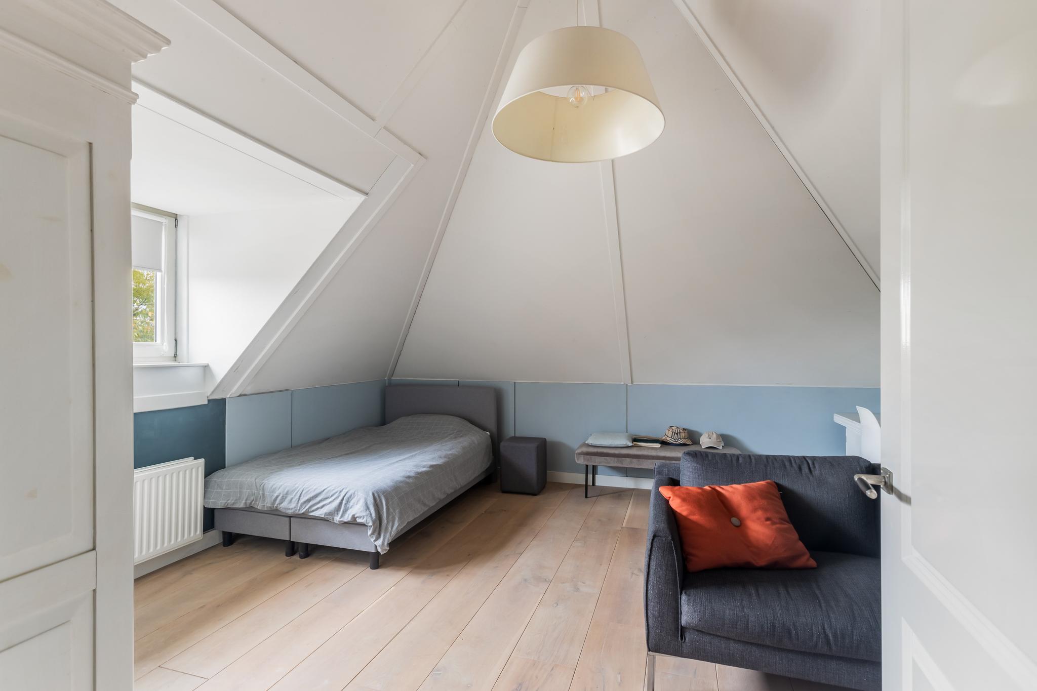 Slaapkamer aan de achterzijde met dakkapel en bergruimte schuin dak.