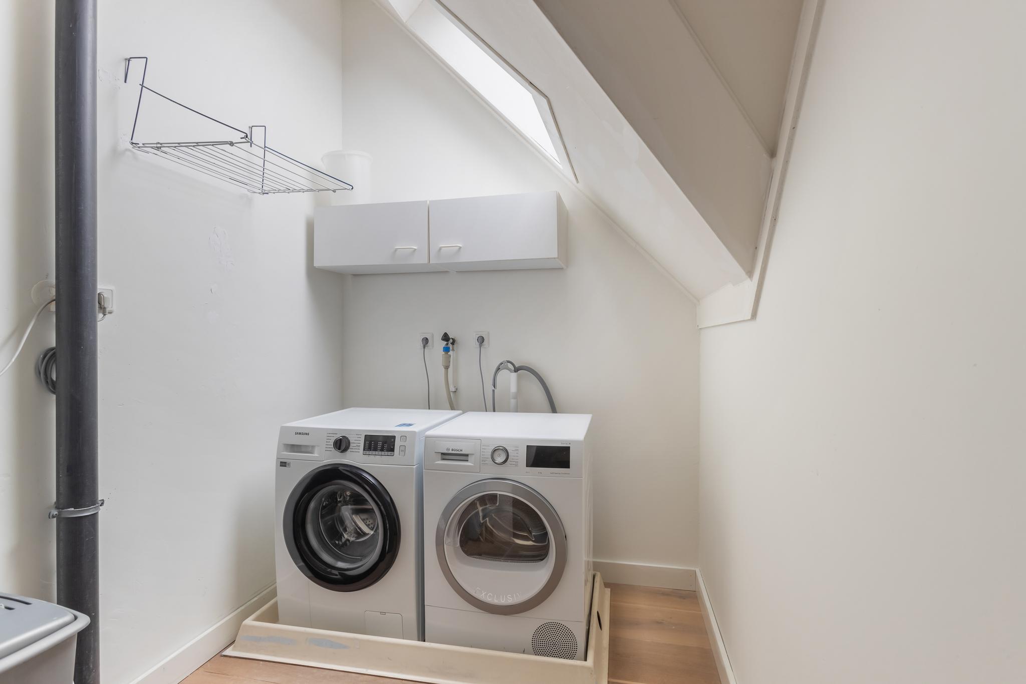 Overloop met opstelling van de CV ketel Remeha Avanta 2019, aparte wasruimte met opstelling mechanische ventilatie en dakraam voor extra lichtinval.