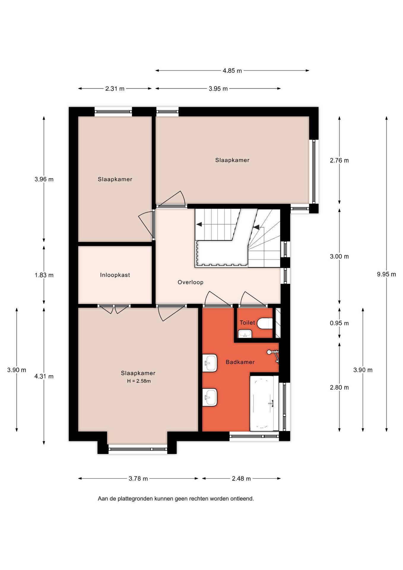 Overloop met toegang tot alle vertrekken en vaste trap naar de tweede verdieping.