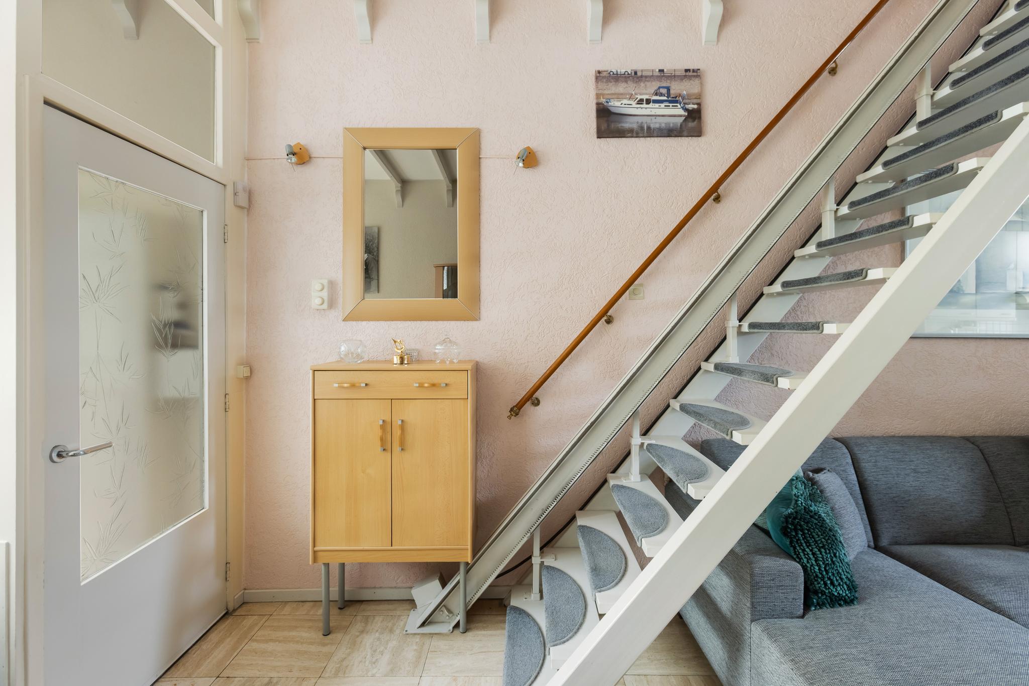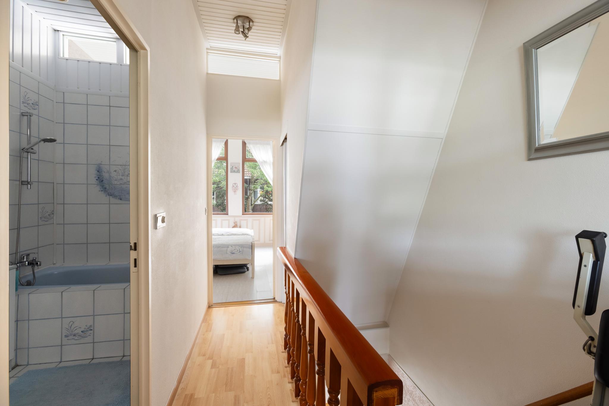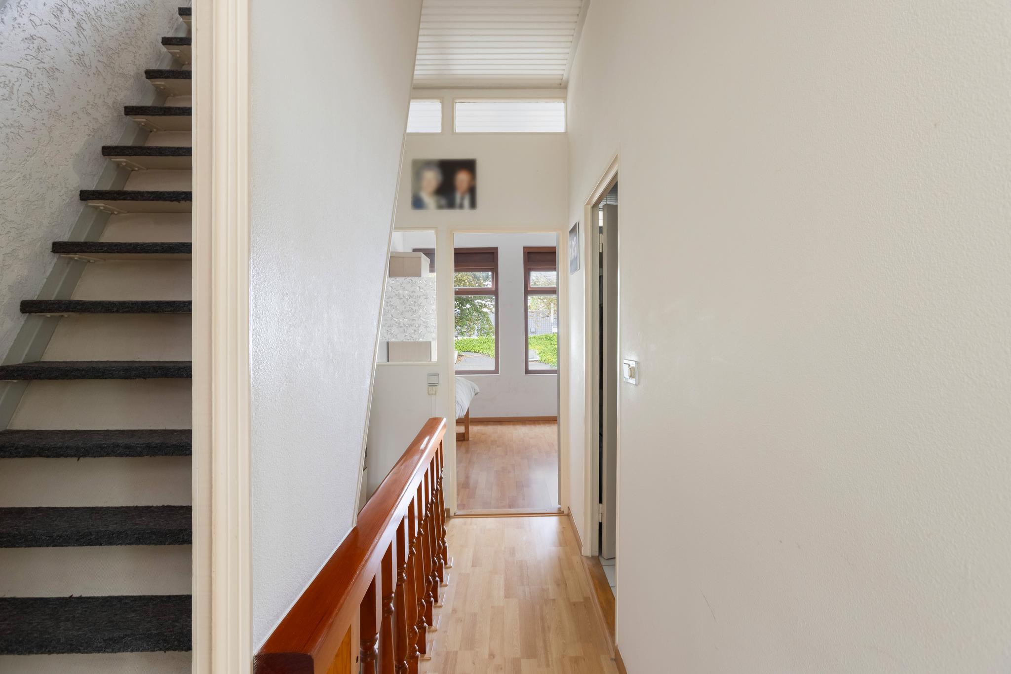 Overloop met toegang tot alle vertrekken en vaste trap naar de tweede verdieping.