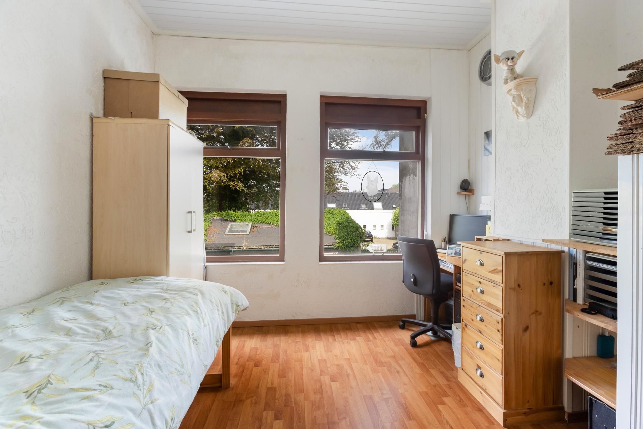 Slaapkamer 2 gelegen aan de achterzijde, ook hier een laminaat vloer.