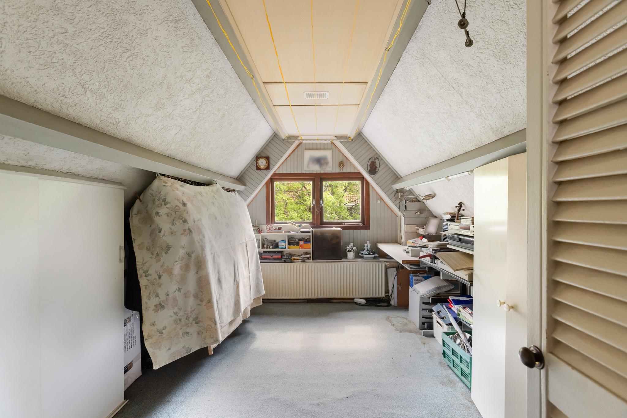 Slaapkamer 3, een lekkere kamer onder de nok, met bergruimte in de nok en bergruimte onder schuin.