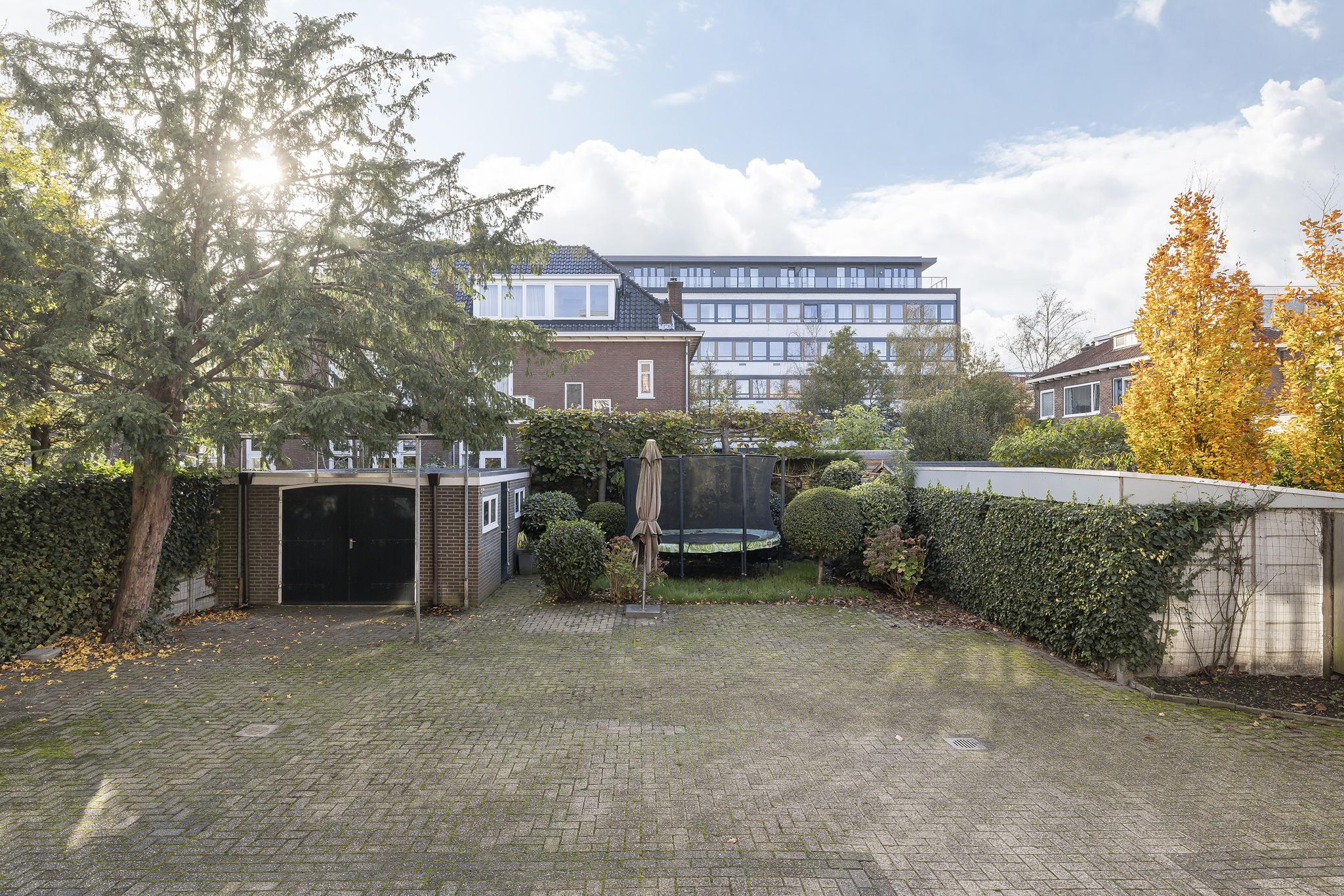 Aan de zijkant van de woning staat aan 1 kant een stenen berging voor bijvoorbeeld de fietsen. Aan de andere zijde van het pand kun je middels een elektrische deur met de auto langs het pand de achtertuin in rijden.