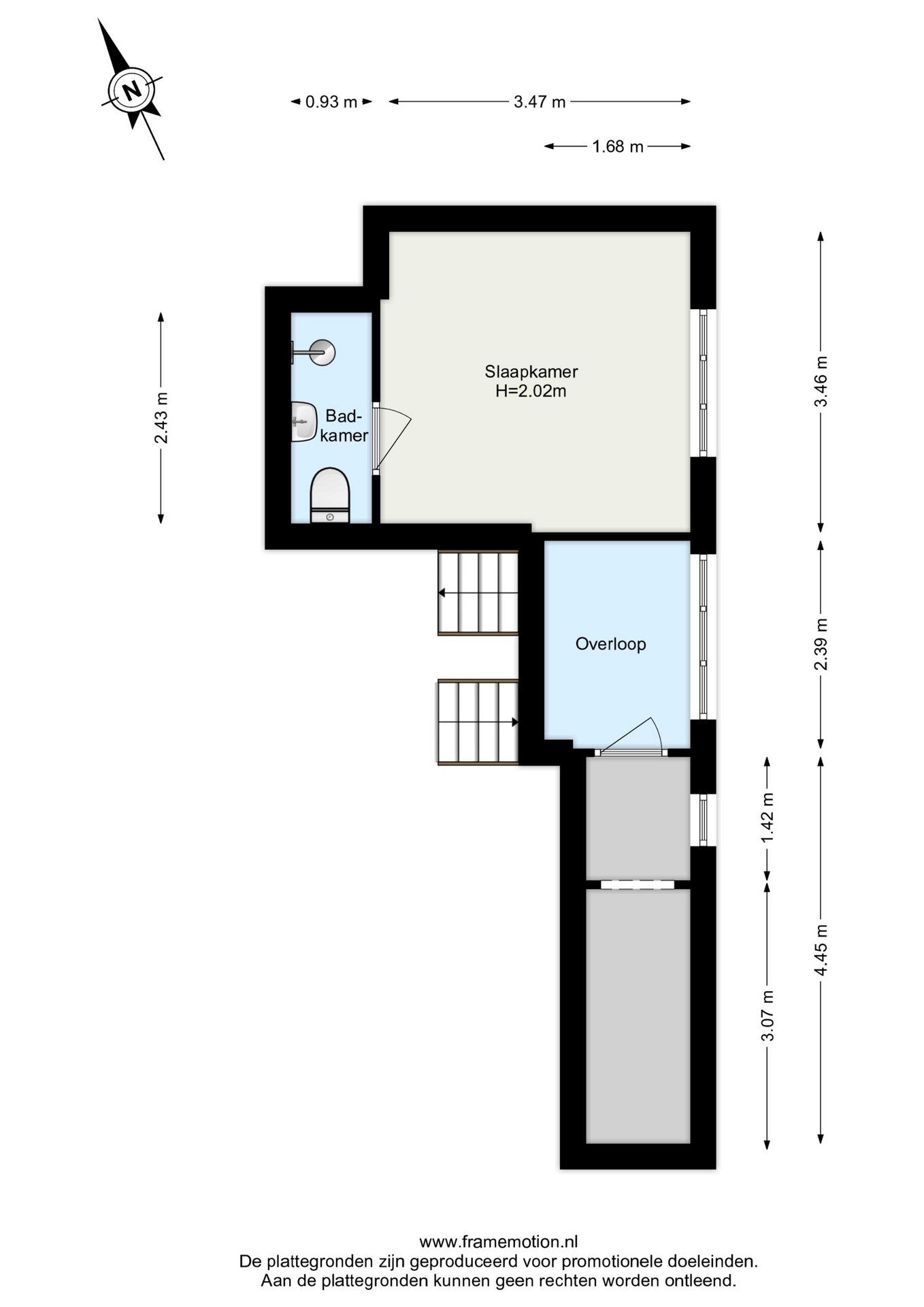 Deze verdieping bestaat uit een grote bergruimte aan de ene zijde (met een meterkast) en aan de andere zijde een mooie (slaap) kamer met wederom een badkamer. Deze badkamer is voorzien van een toilet (nummer 4) wastafel en douche.
