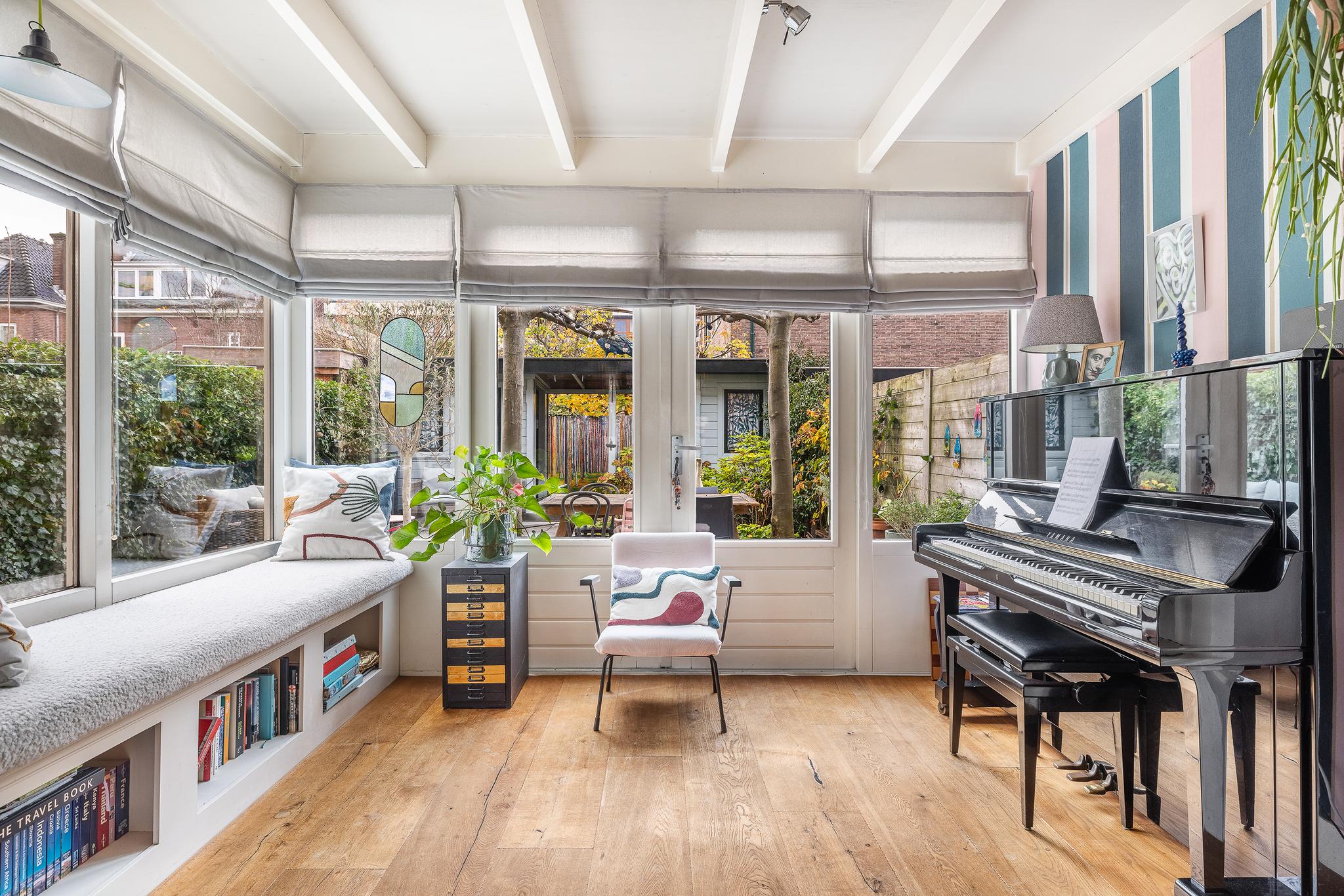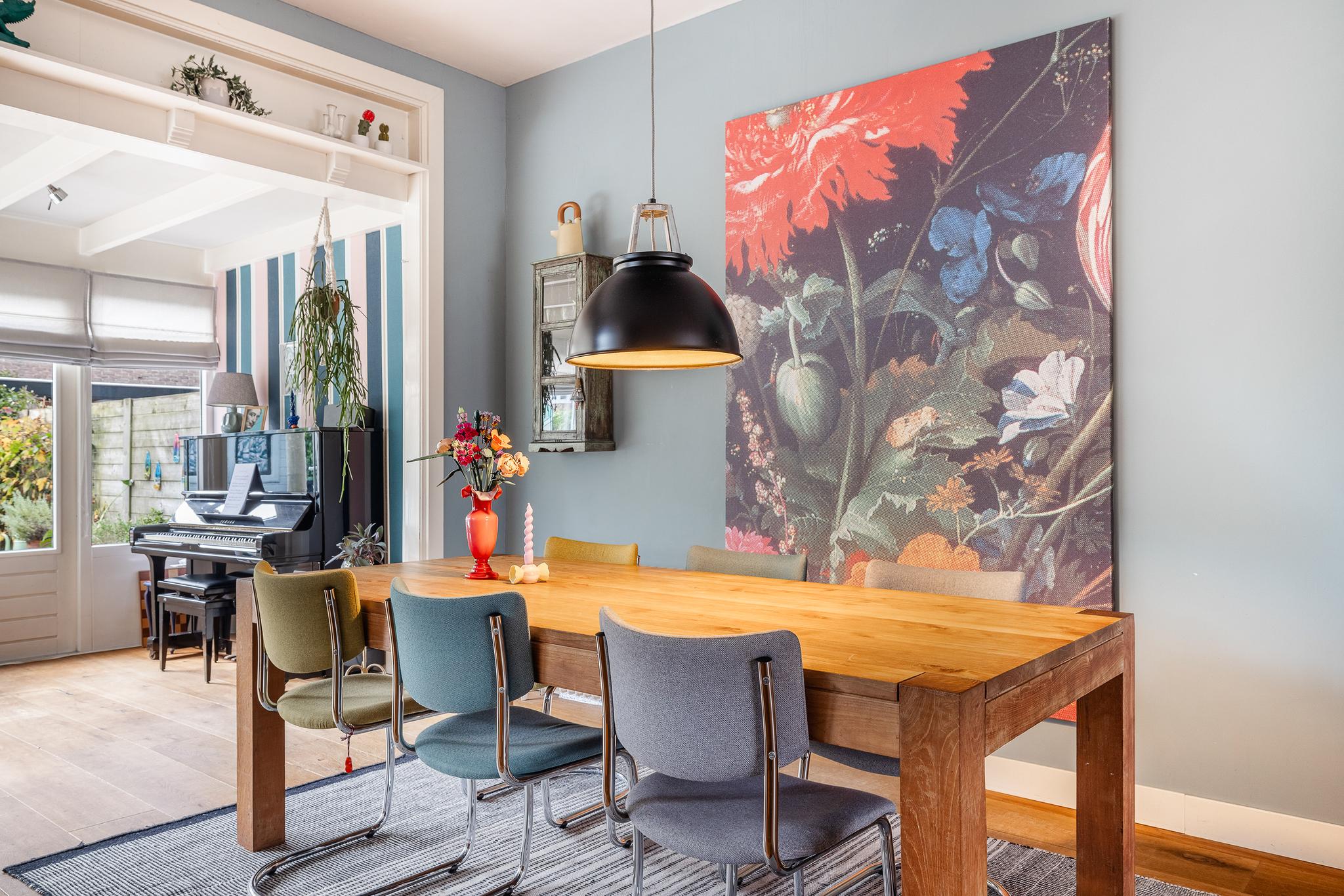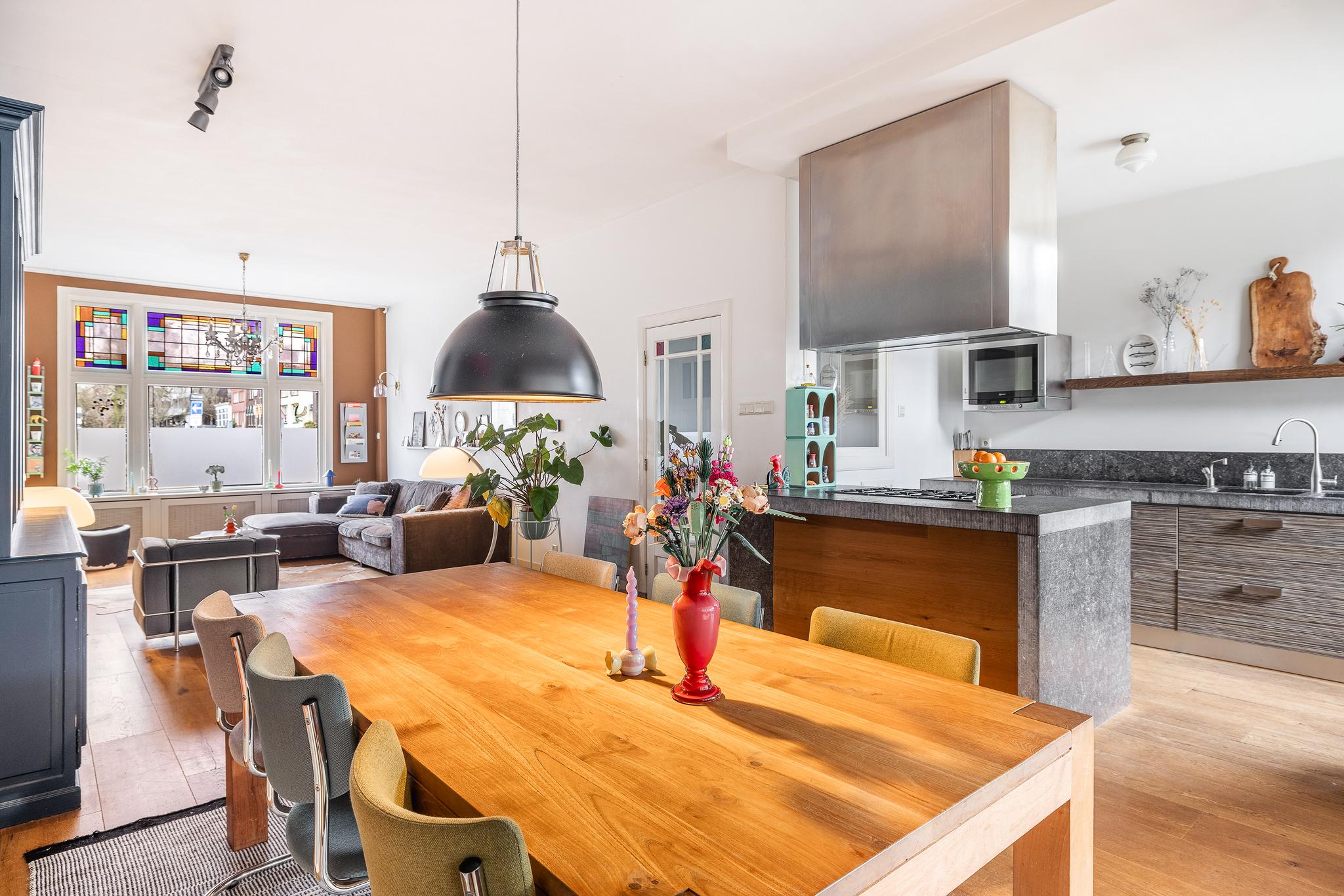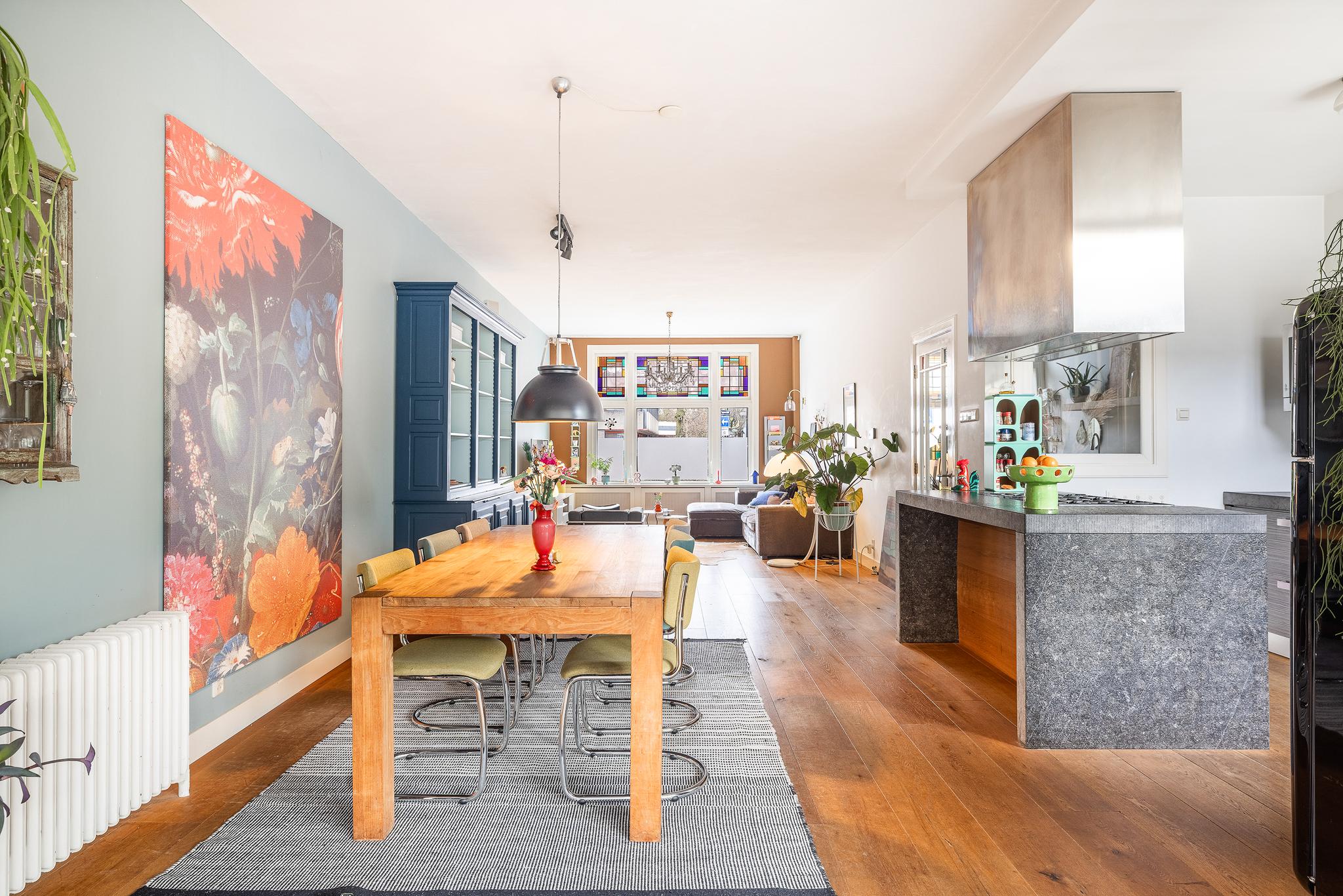 Laten we even binnenkijken: je komt binnen in een stijlvolle hal met terrazzo-tegels en glas-in-lood deuren. De woonkamer? Breed, licht en met een prachtige eikenhouten vloer. Aan de achterkant vind je dé samenkomstplek van het huis: een ruime serre en gezellige keuken met schiereiland en Quooker. Hier komen verjaardagen, borrels en diners écht tot leven!