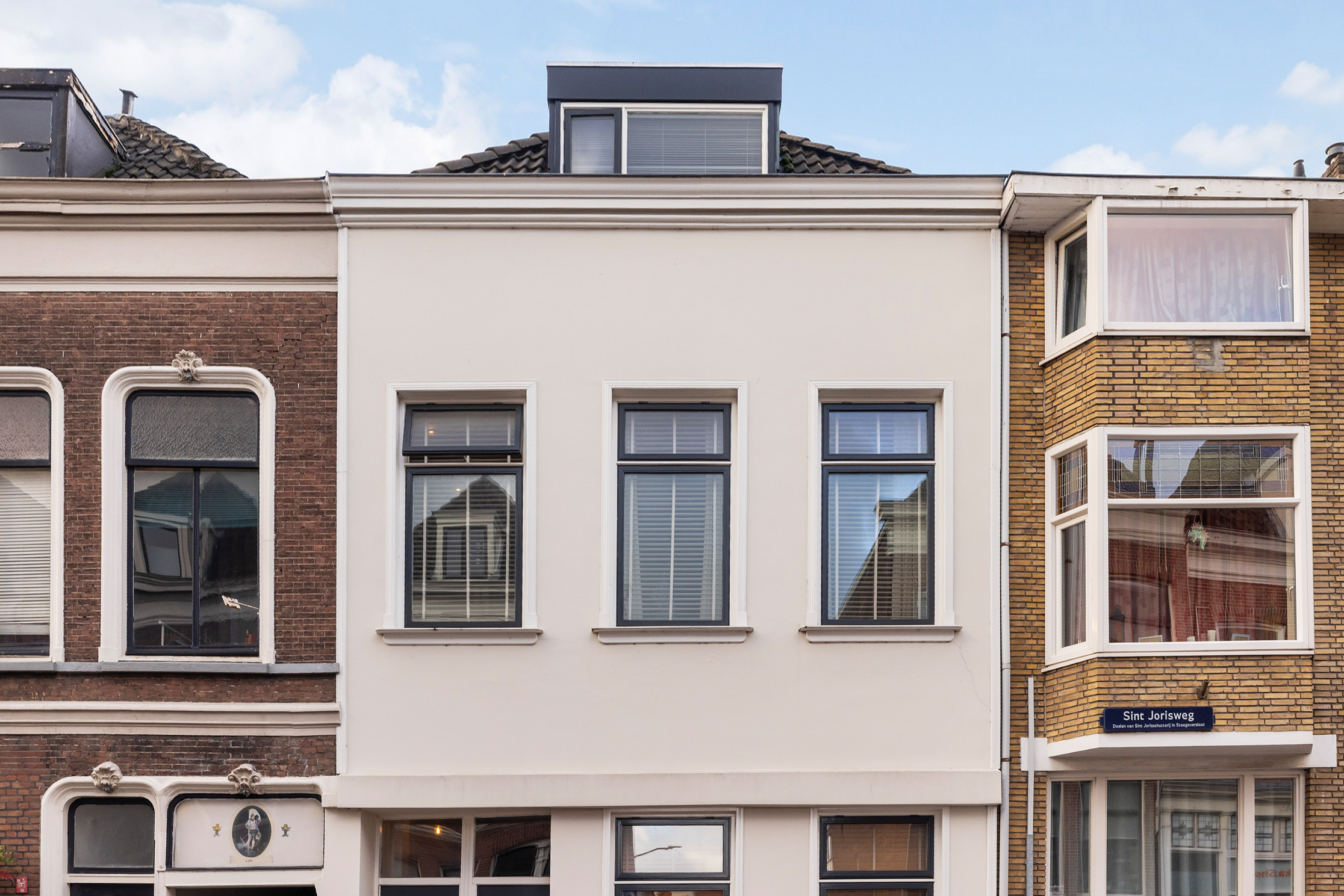 Wonen aan de Sint Jorisweg 33 betekent het beste van twee werelden: het bruisende stadsleven van Dordrecht binnen handbereik, maar dan in een rustige, bijna verborgen straat naast het Kunstmin.