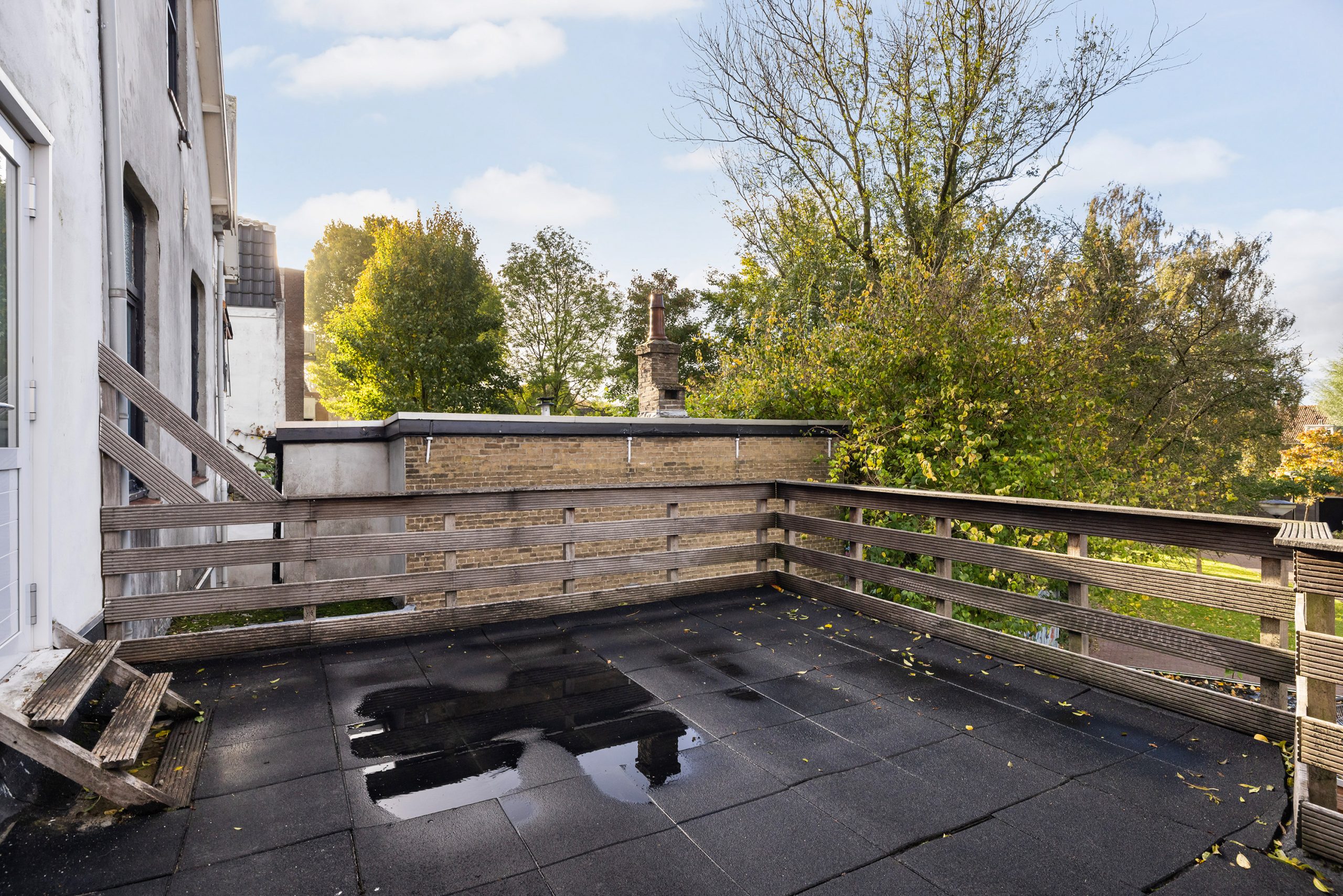 - Ruime bovenwoning met drie slaapkamers, twee badkamers, twee keukens en een heerlijk dakterras op het zuidwesten.
