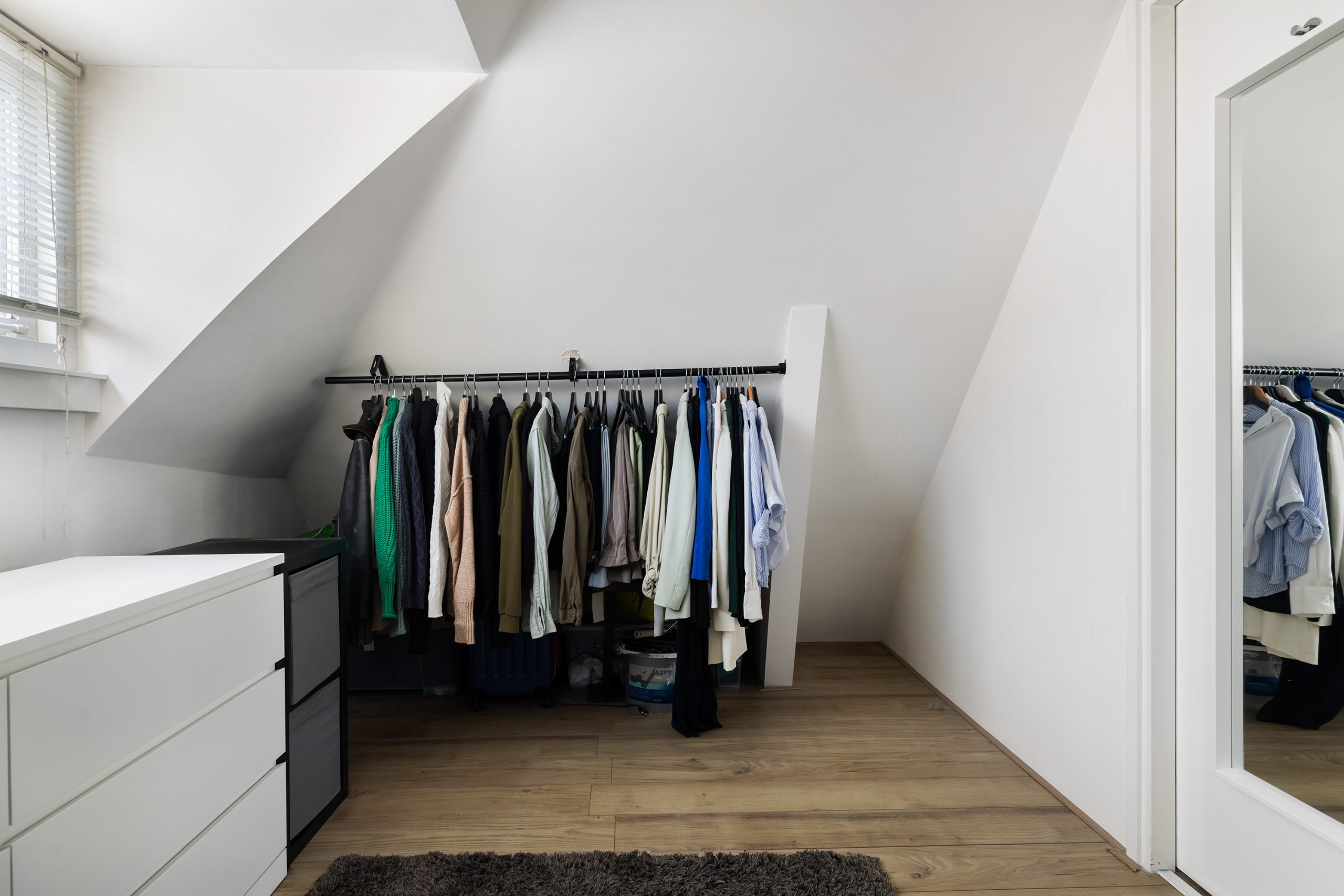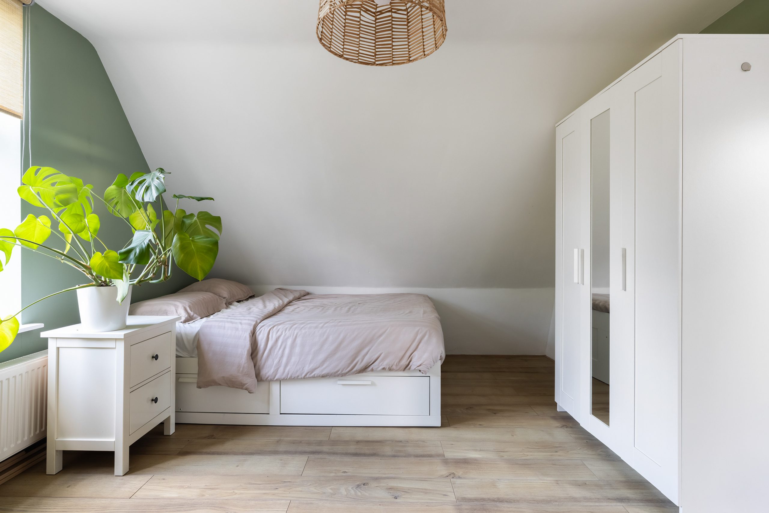 Slaapkamer aan voorzijde, voorzien van een brede dakkapel en afgewerkt met een laminaatvloer.