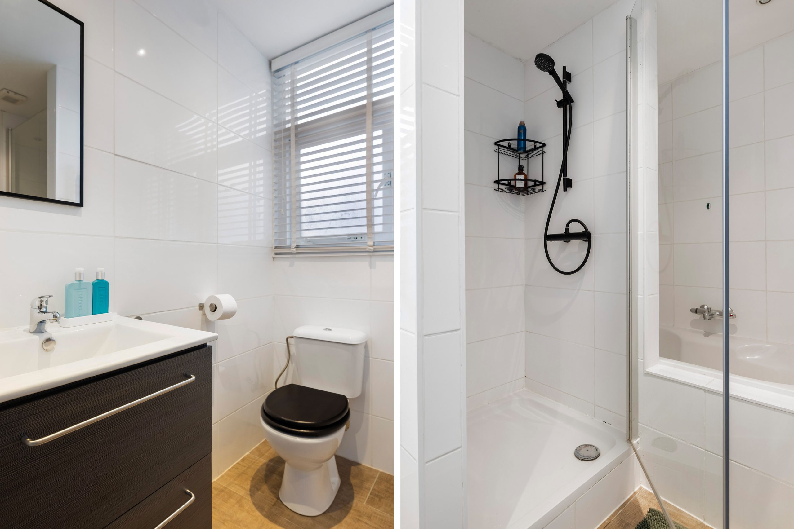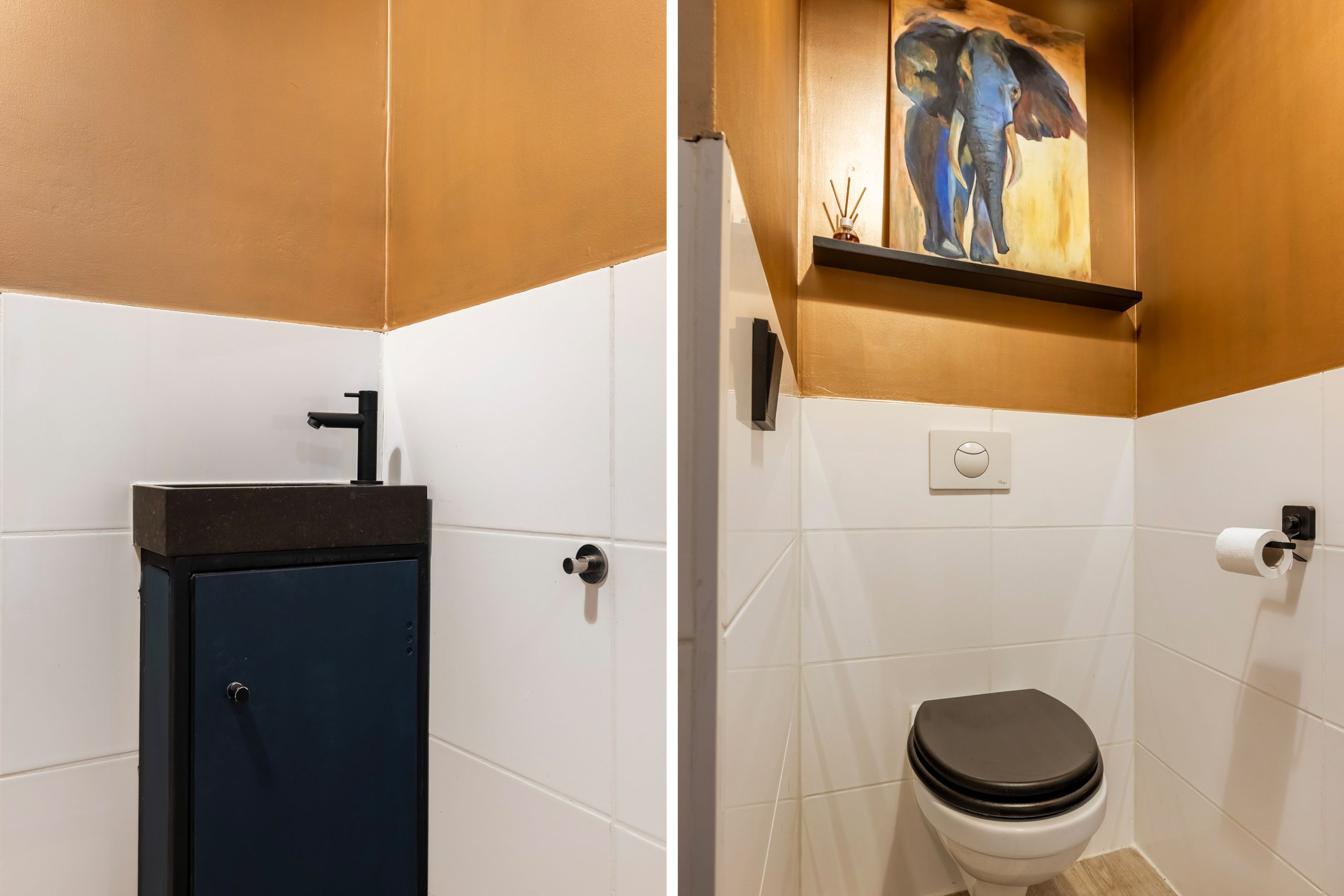 De tweede badkamer is gelegen aan de zijkant, deze ruimte is voorzien van een ligbad met thermostaatkraan, douchecabine met thermostaatkraan, wastafelmeubel, toilet, inbouwspots en mechanische ventilatie.