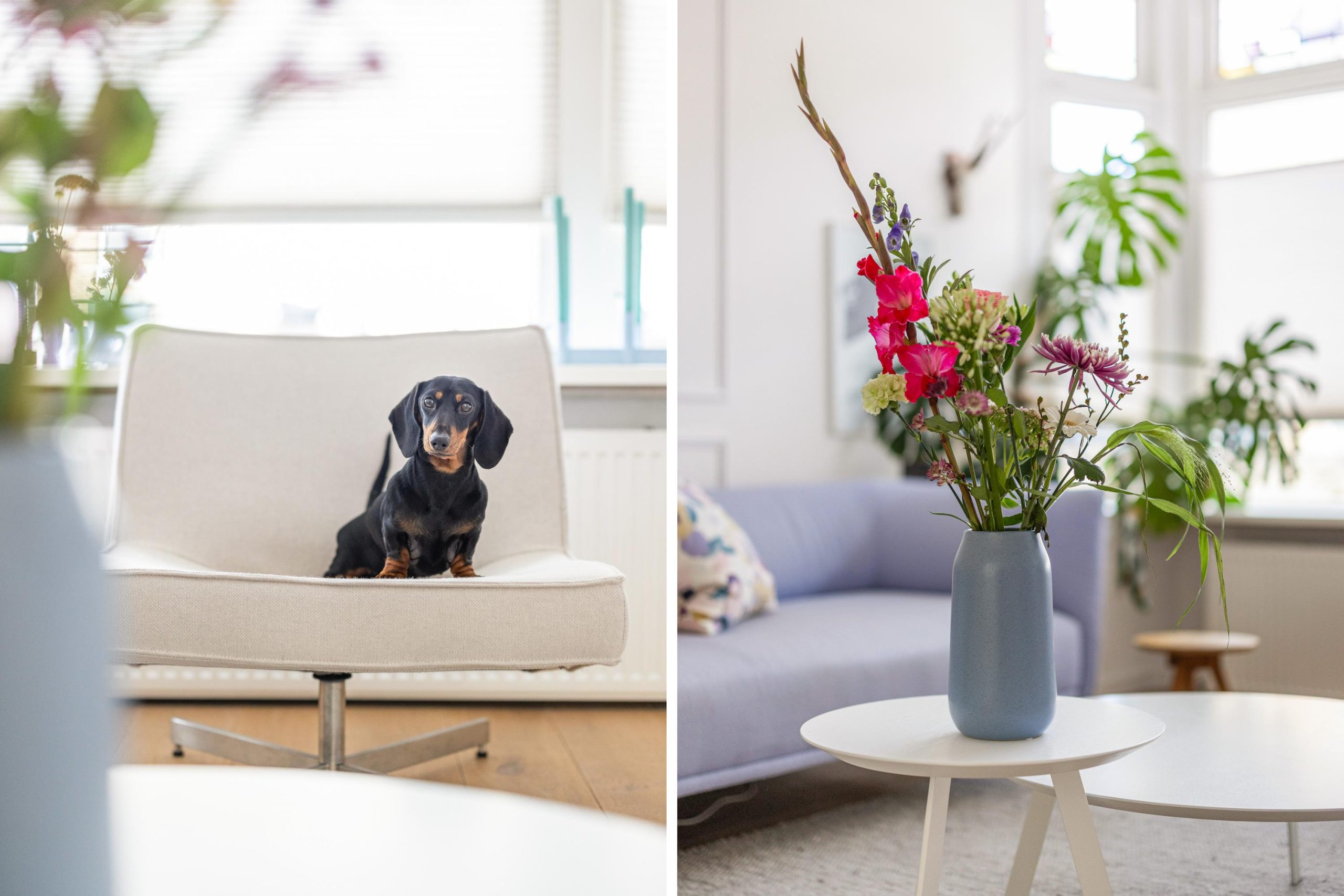 En dan de tuin, mijn filmrol staat helemaal vol met sfeerbeelden… Groen, gezellig & verrassend veelzijdig. Met verschillende zitplekjes en een tuinhuis dat je als schuur óf hobbyruimte kunt gebruiken, is dit een heerlijke plek om te genieten. Waar ook hond Ted het heel goed voor elkaar heeft met een eigen trap de tuin in, wat een luxe!