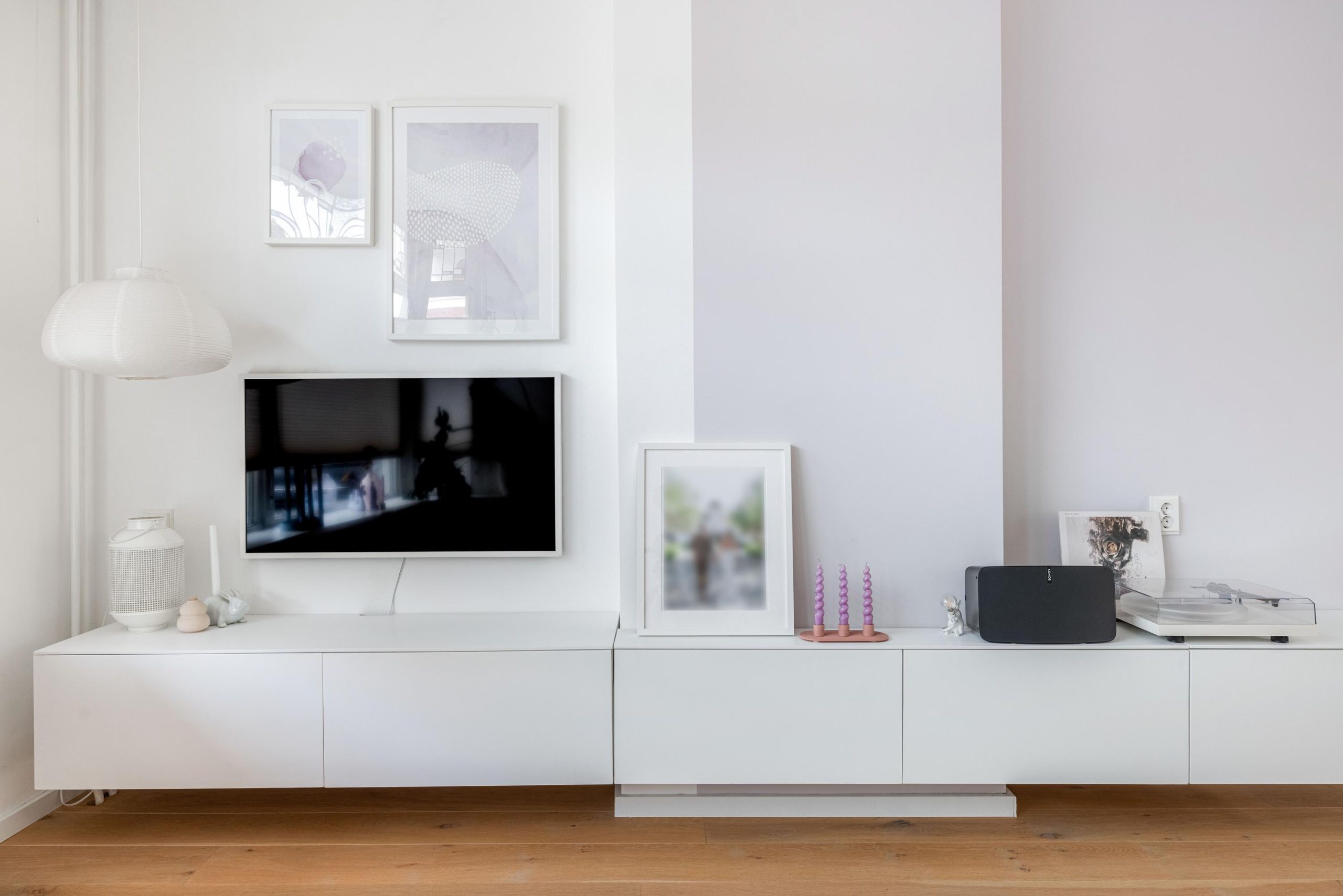 De woonkamer is geheel voorzien van een hoogwaardige eikenhouten vloer, stucwerk wand- en plafond afwerking.