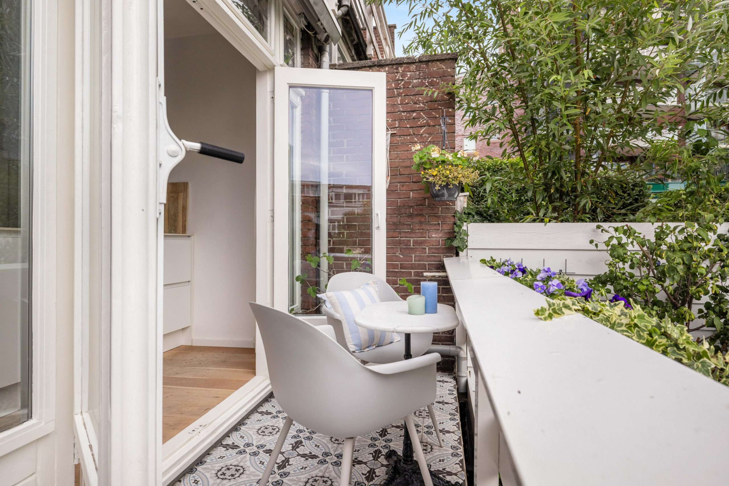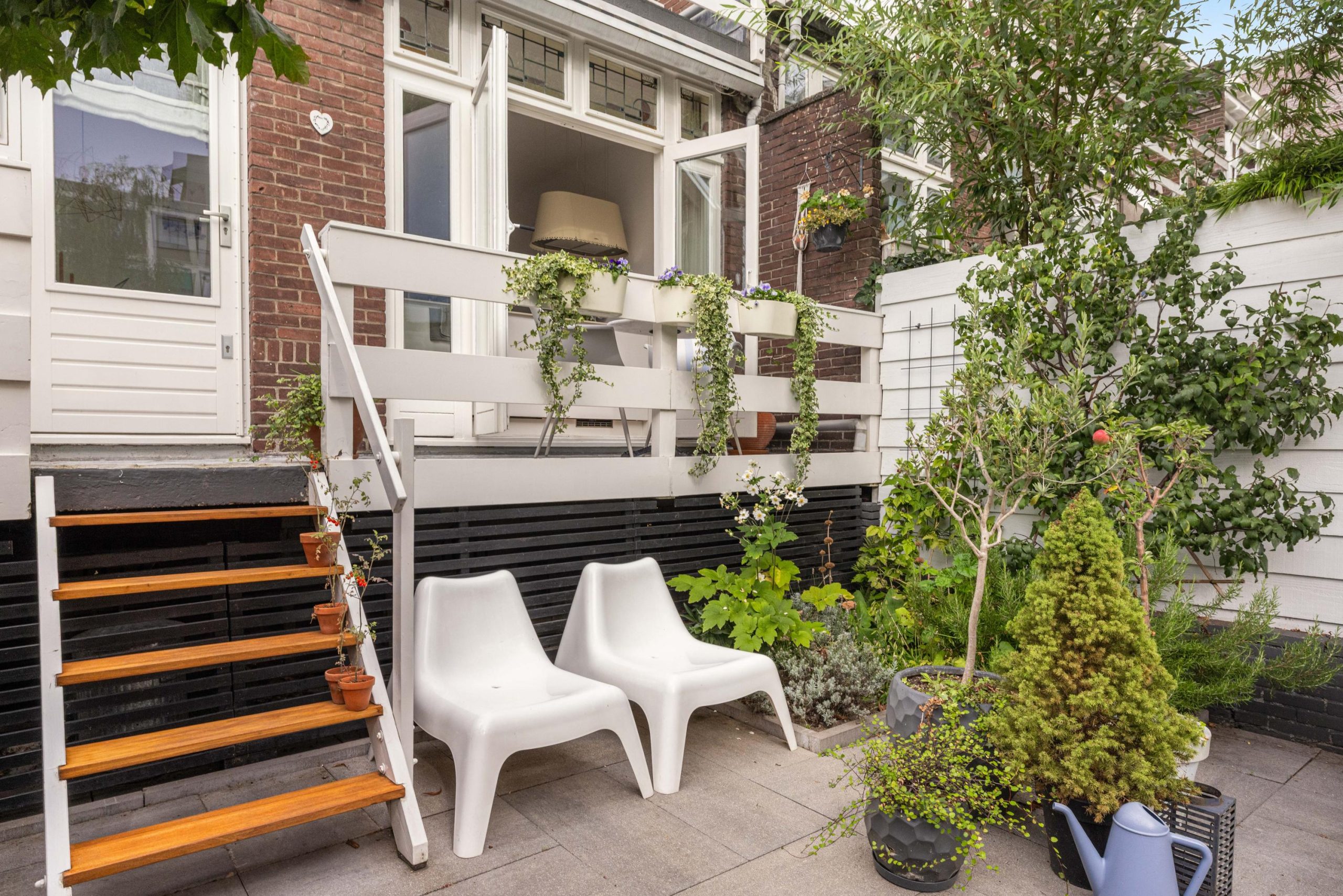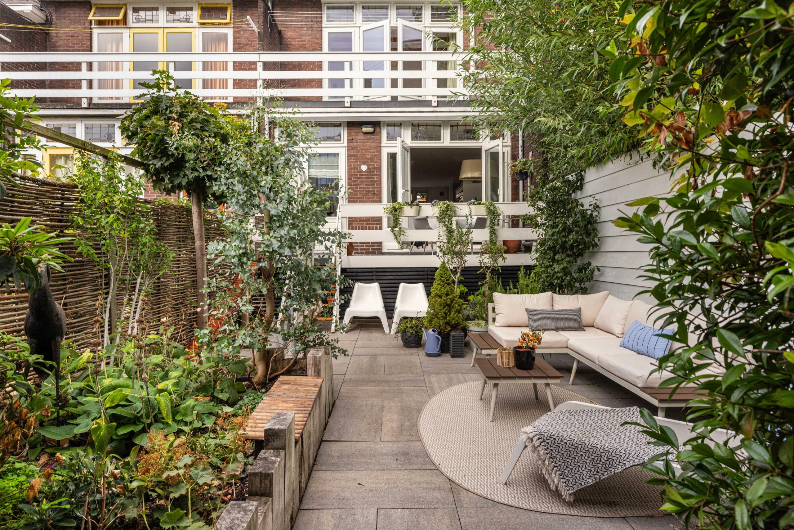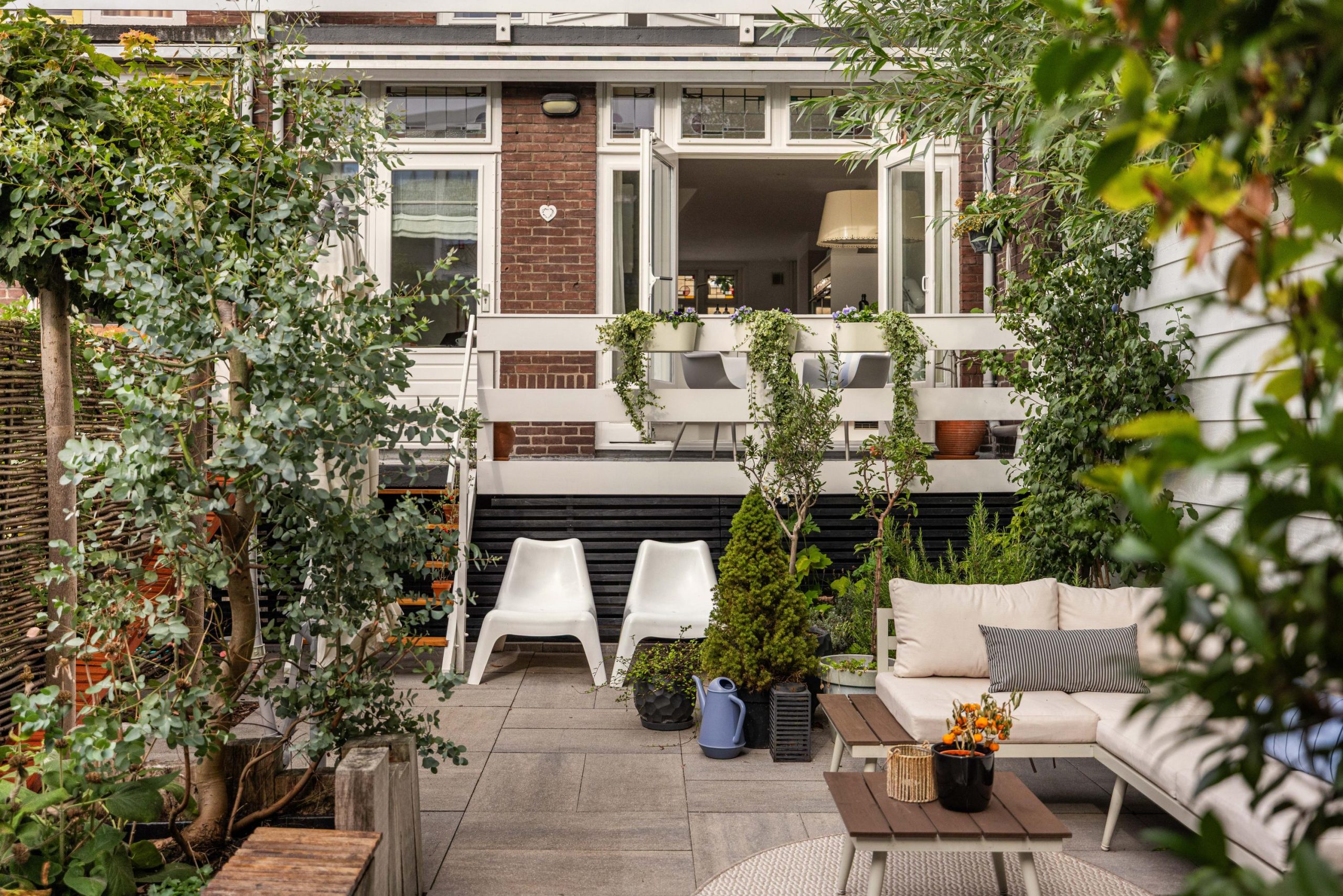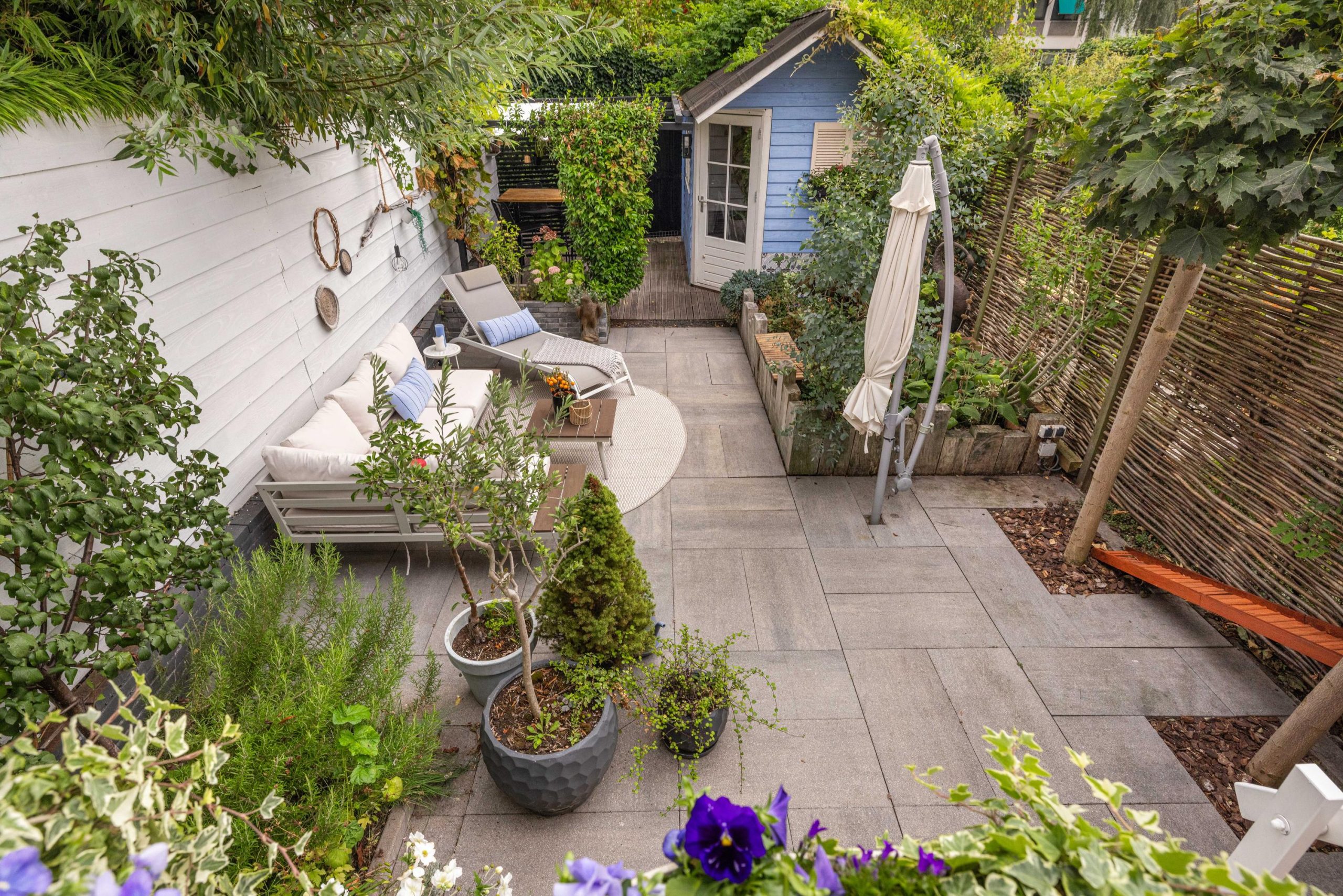 De achtertuin is een ware oase van rust en groen. Prachtig opgezet met diverse vaste perken, deels betegeld en voorzien van vlonderdelen. Achterin de tuin hebben de huidige eigenaren een gezellig zitje gecreëerd. Tevens bevindt zich achterin de tuin een ruime berging en de achterom. Onder het balkon is extra bergruimte beschikbaar.