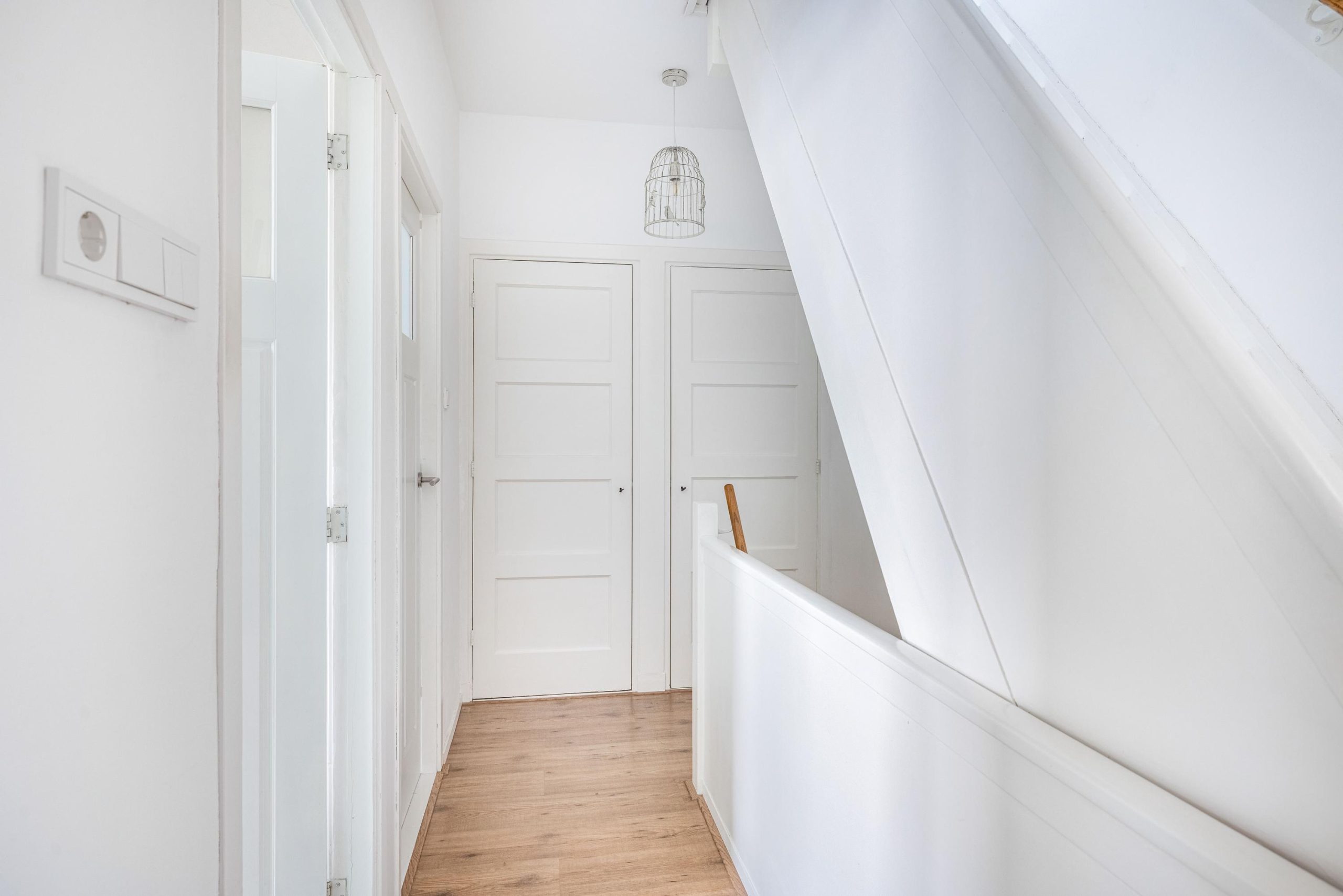 Overloop met toegang tot alle vertrekken, trapopgang naar de 2e verdieping, twee vaste kasten.