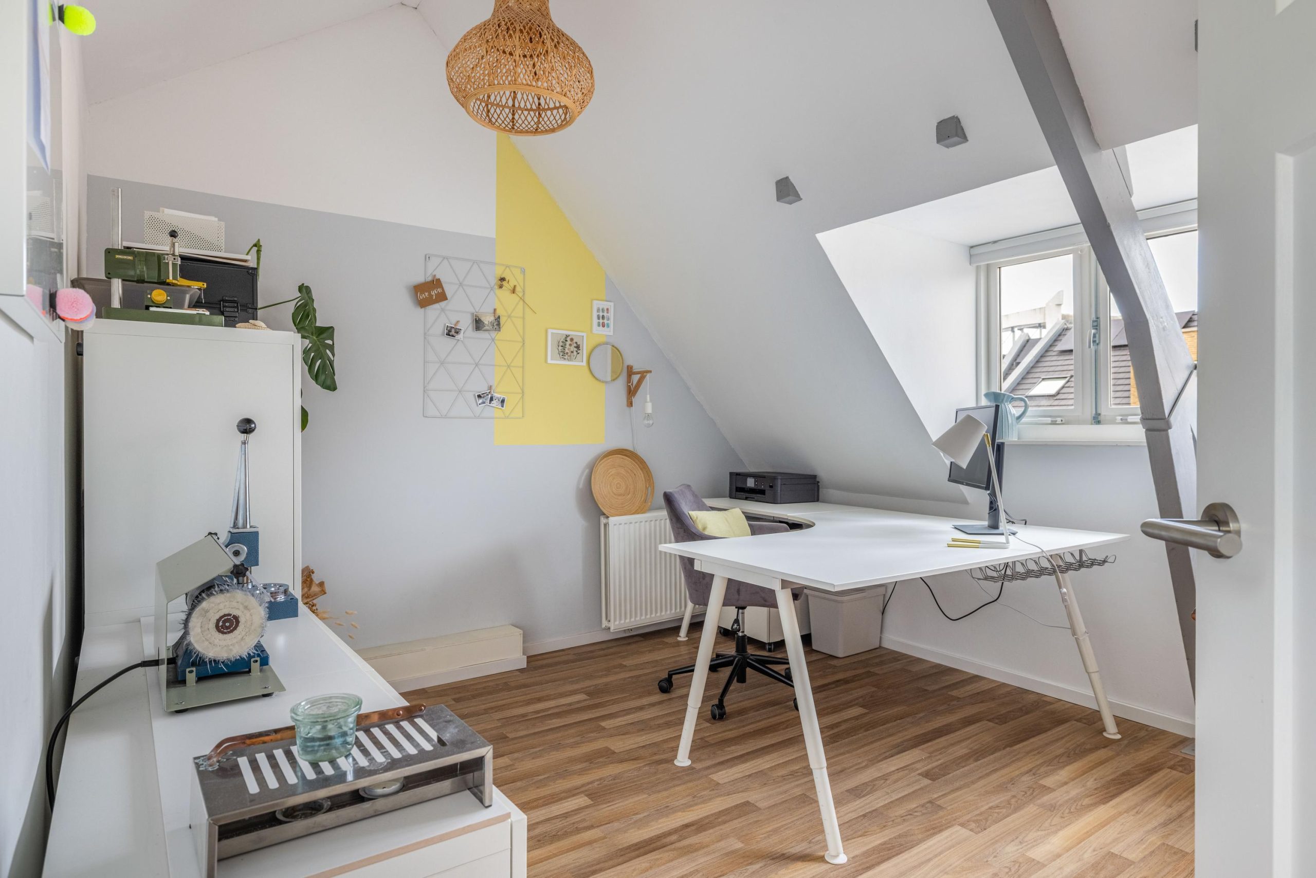 Slaapkamer aan voorzijde, deze kamer is door de dakkapel (in 2022 vernieuwd) van een goed formaat. De kamer is voorzien van een laminaatvloer en heeft een mooi zicht op de dakbalken.