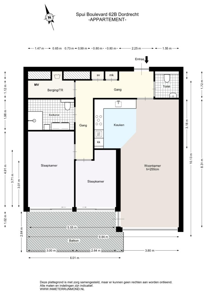 Het royale balkon van maar liefst 16 m² biedt alle ruimte voor een mooie loungehoek en een eettafel. Het balkon is gelegen op het zuiden, hier geniet je de hele dag van de zon. Maar ook van de rust, want hoewel het complex aan de rand van het Dordtse centrum ligt, ervaar je aan de achterzijde juist rust en stilte.