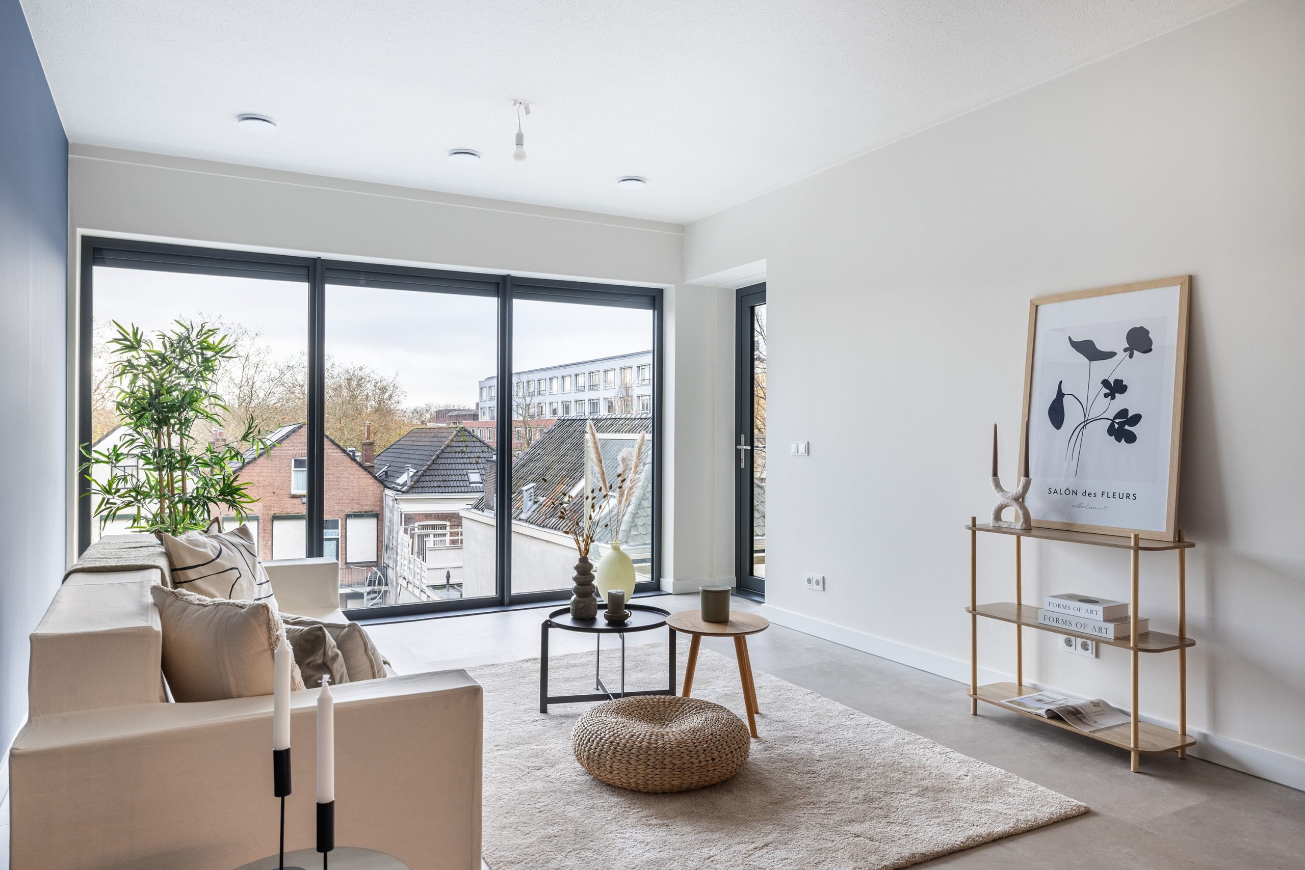 Met twee ruime slaapkamers, een prachtige lichte vloer en gigantische raampartijen (allen voorzien van screens) voelt dit appartement niet alleen luxe, maar vooral heerlijk ruim en fris. De styling is verzorgd door Diana Bloemendaal, dus je kunt rekenen op een smaakvolle, moderne basis waar je zó je eigen draai aan geeft.
