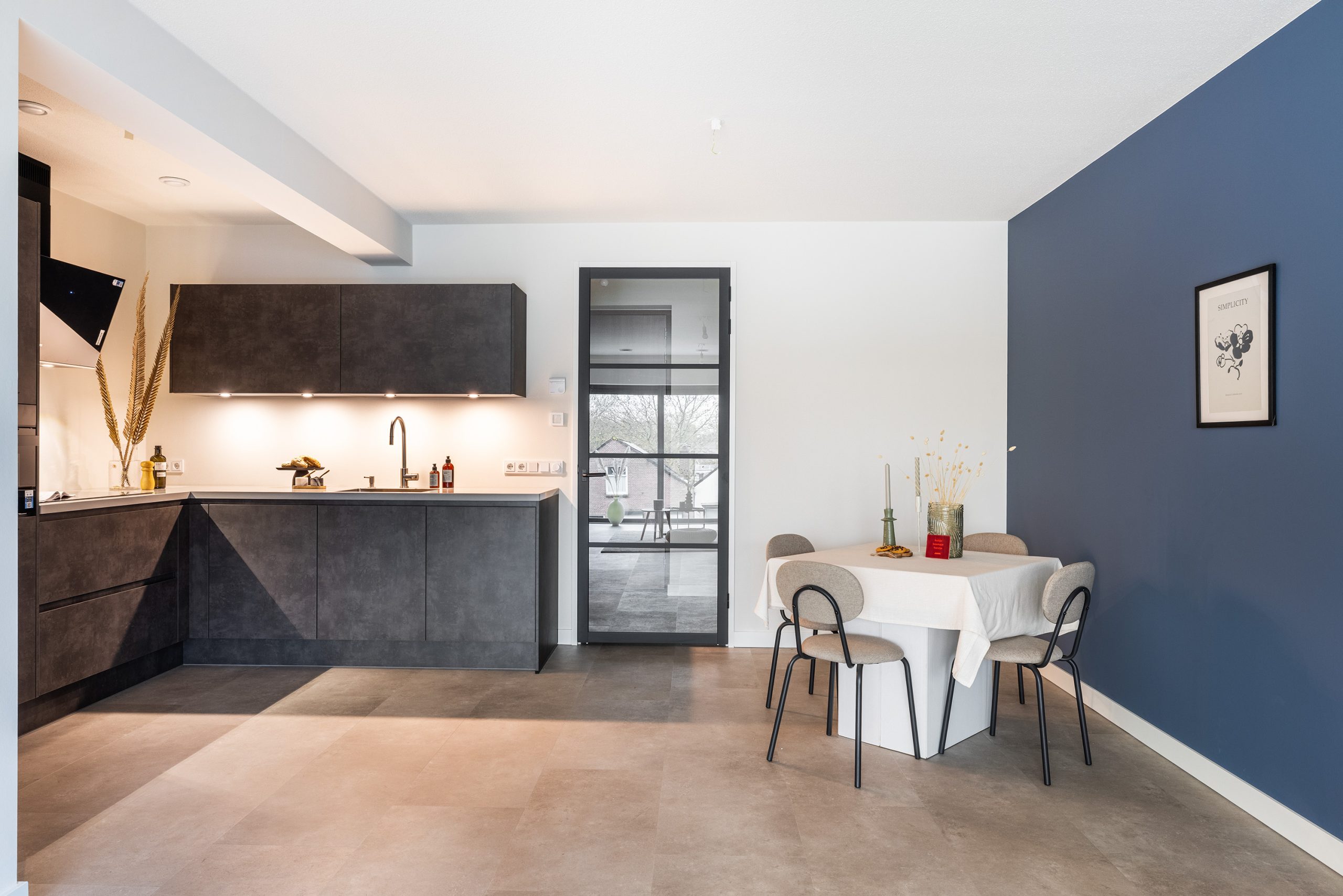 De keuken is strak, de badkamer en het toilet zijn afgewerkt met unieke blauwe tegels (echt een eyecatcher!) en overal zie je dat er is gekozen voor kwaliteit.