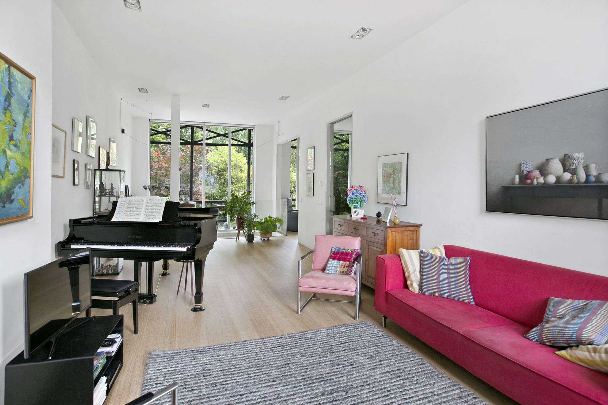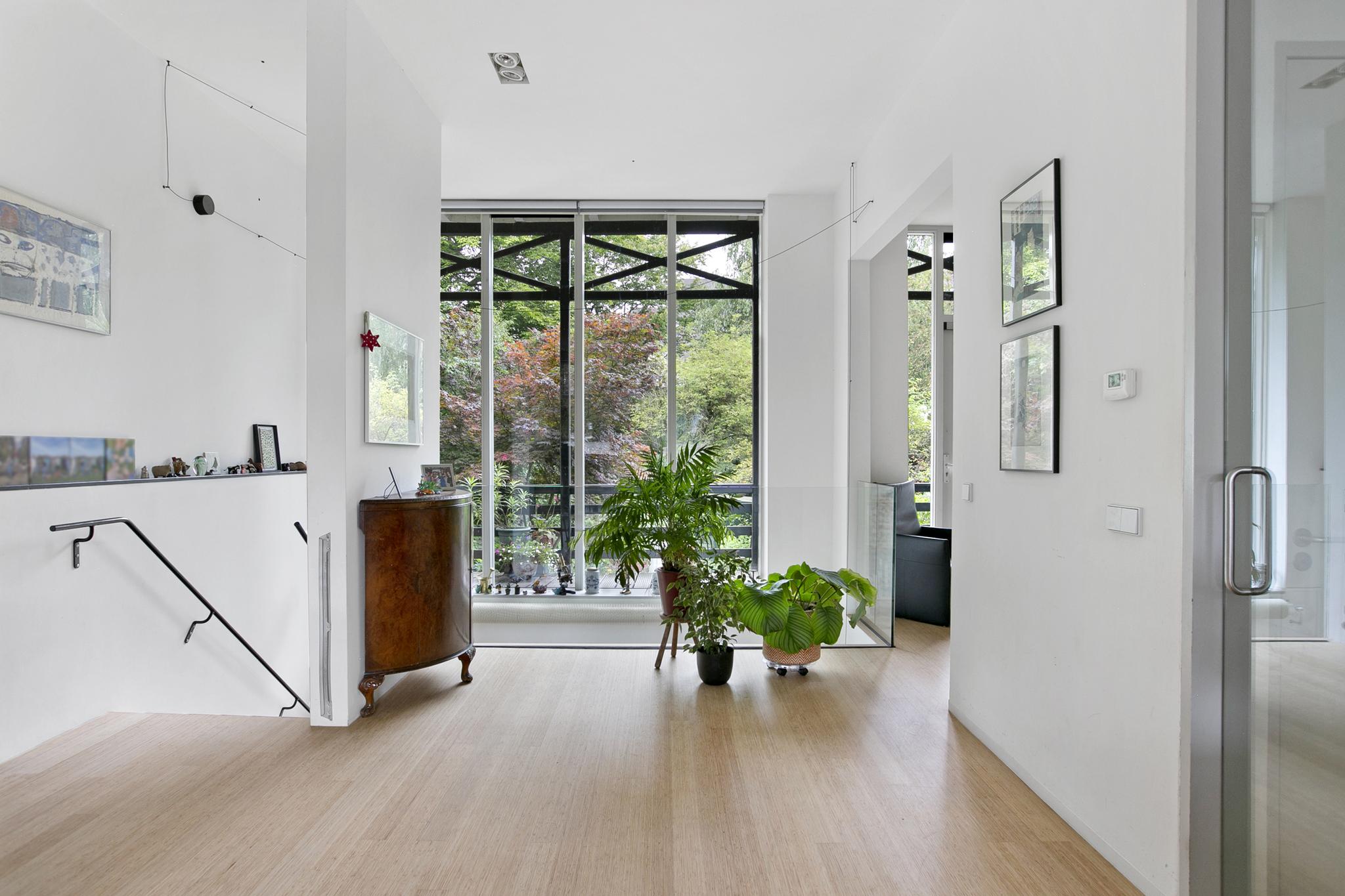 Deze verdieping is heerlijk licht door de grote ramen en staat door de vide in contact met het souterrain. Aan de achterzijde is een grote veranda aanwezig welke mooi uitzicht heeft over de tuin en door de ligging op het zuid oosten een groot deel van de dag zonovergoten is.