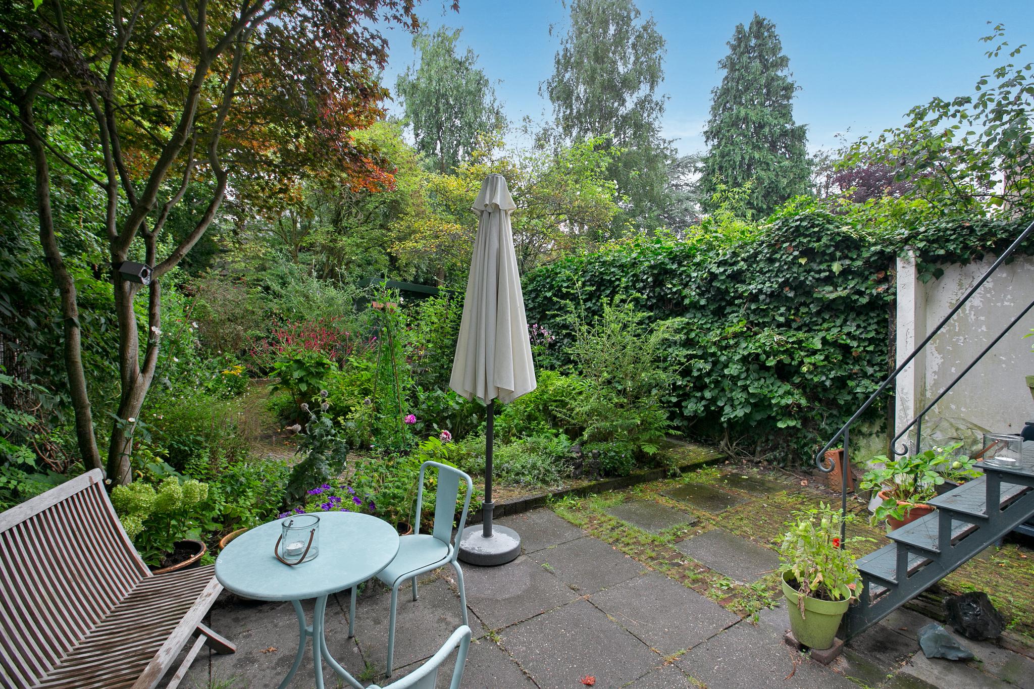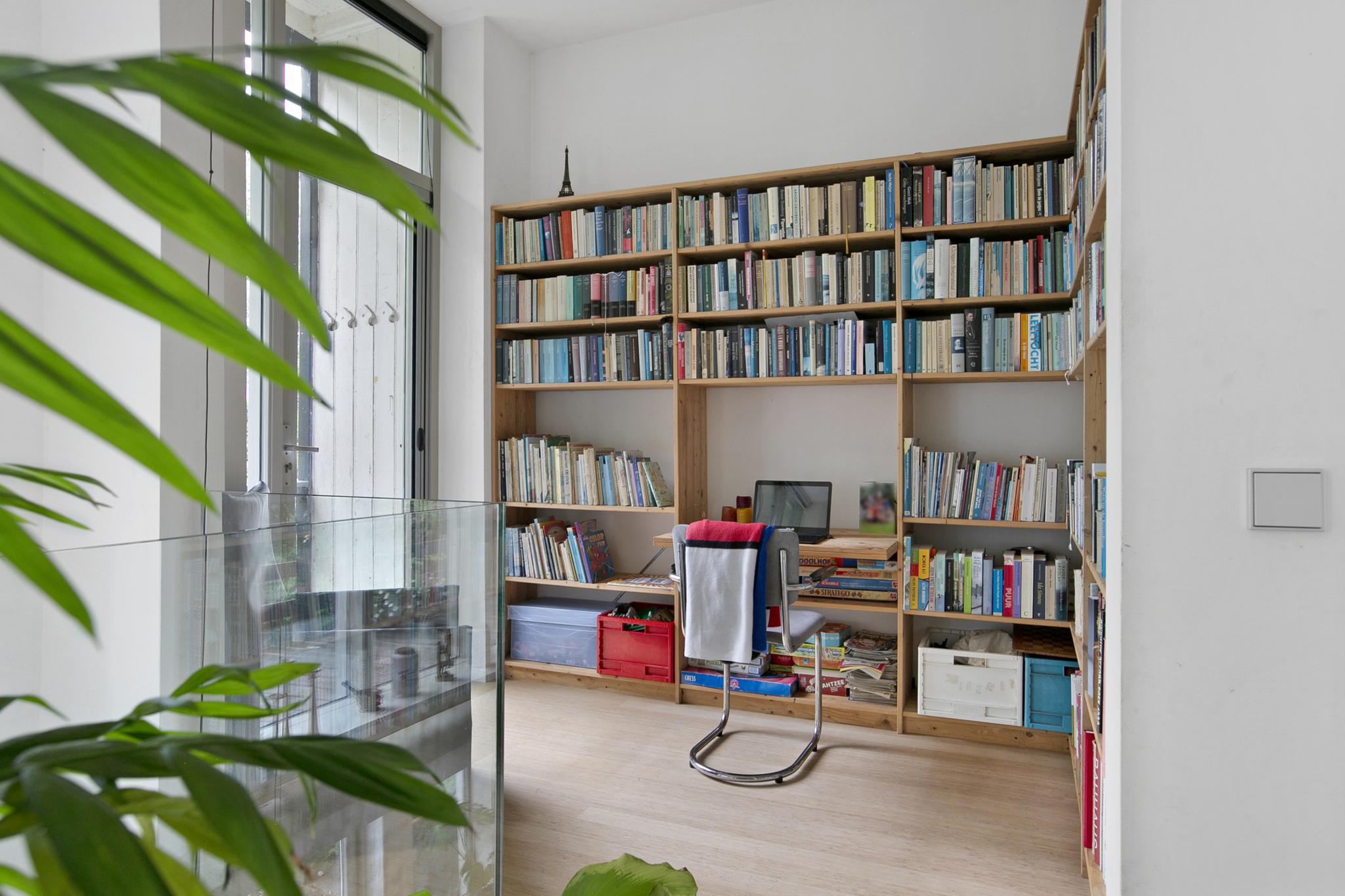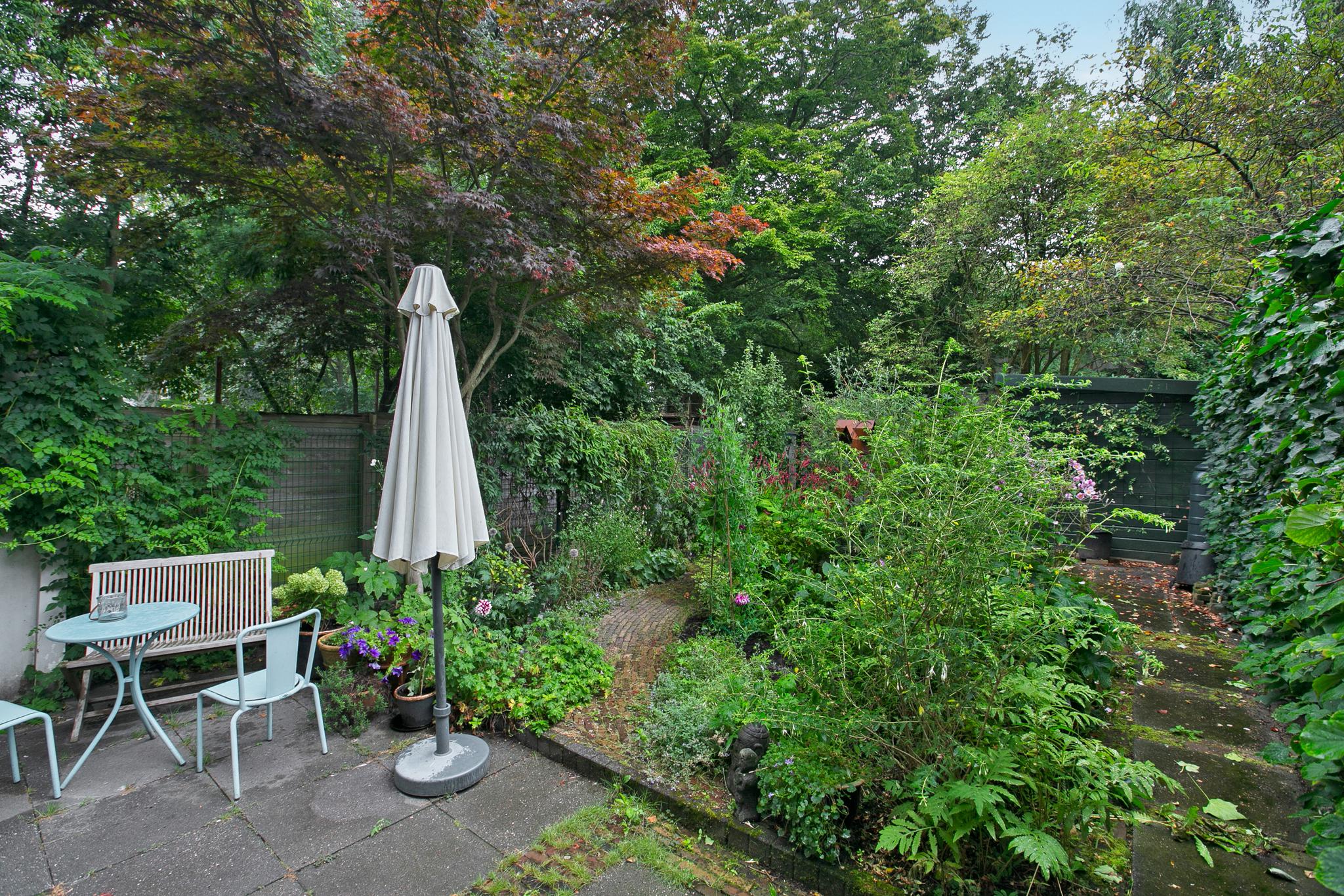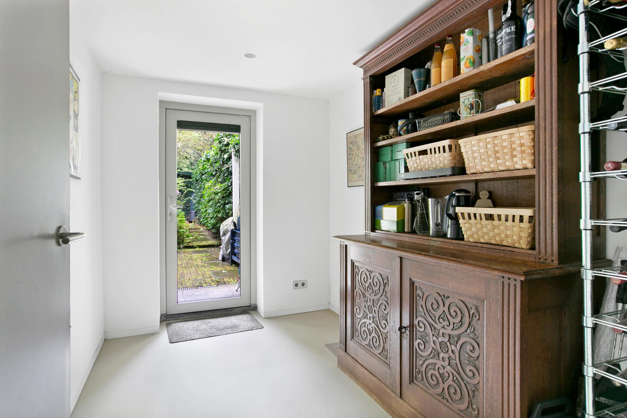 Onder de trap zijn vaste kasten gemaakt. De keuken is geplaatst in U opstelling en voorzien van koelkast, vriezer, vaatwasser, inductie kookplaat, stoomoven (werkt niet goed), oven, afzuigkap, Quooker en spoelbak, het geheel is afgewerkt met een composiet werkblad. Via openslaande deuren kom je in de prachtige stadstuin uit, een oase voor alle vogels en insecten en een fijne plek om na een lange dag werken af te schakelen.