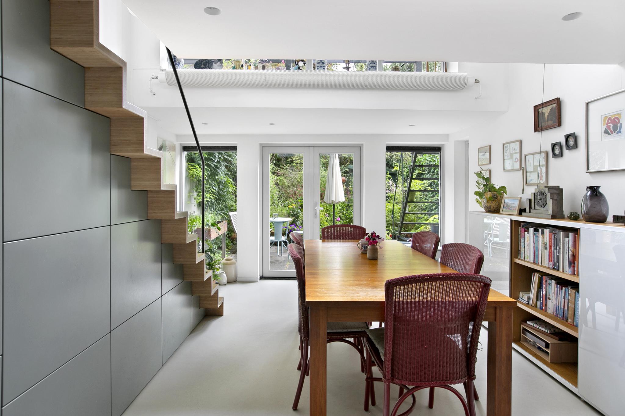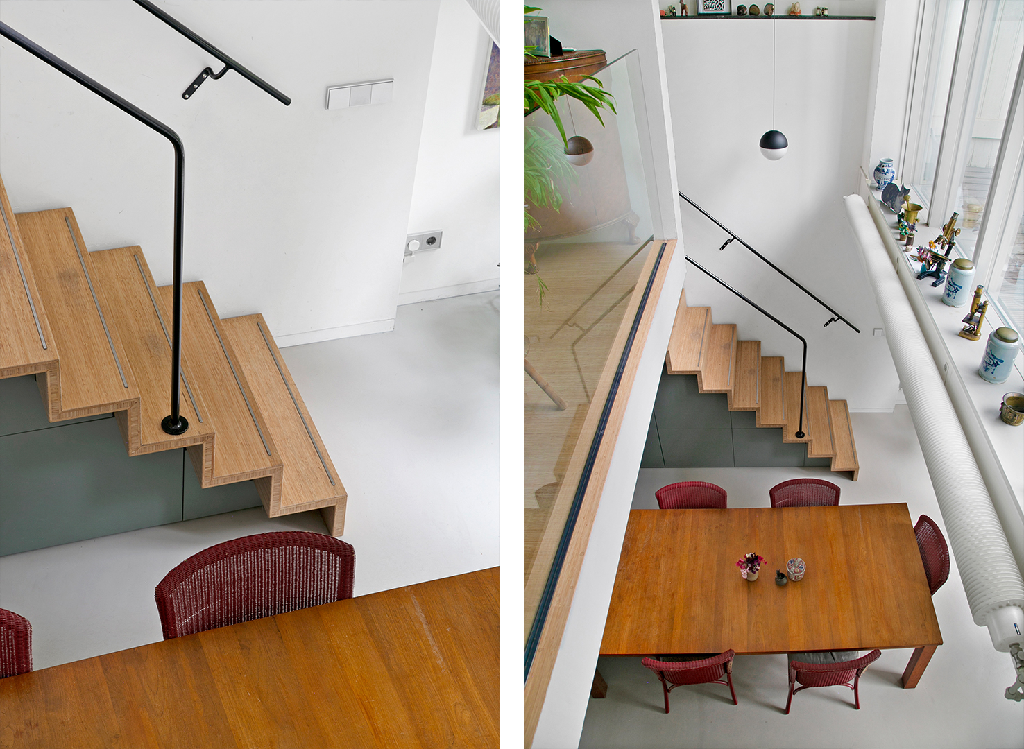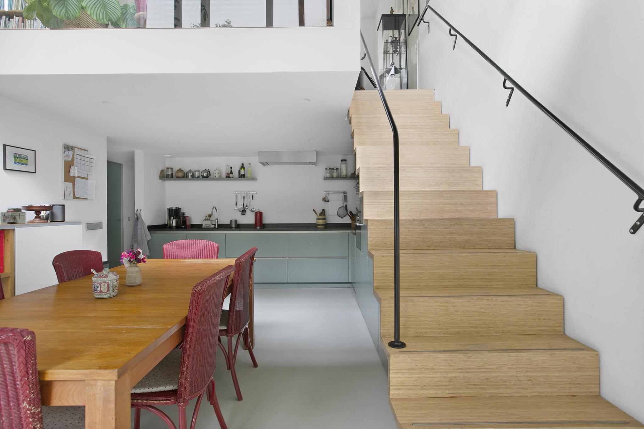 In de hal loop je een tweede trap op naar de woonverdieping.