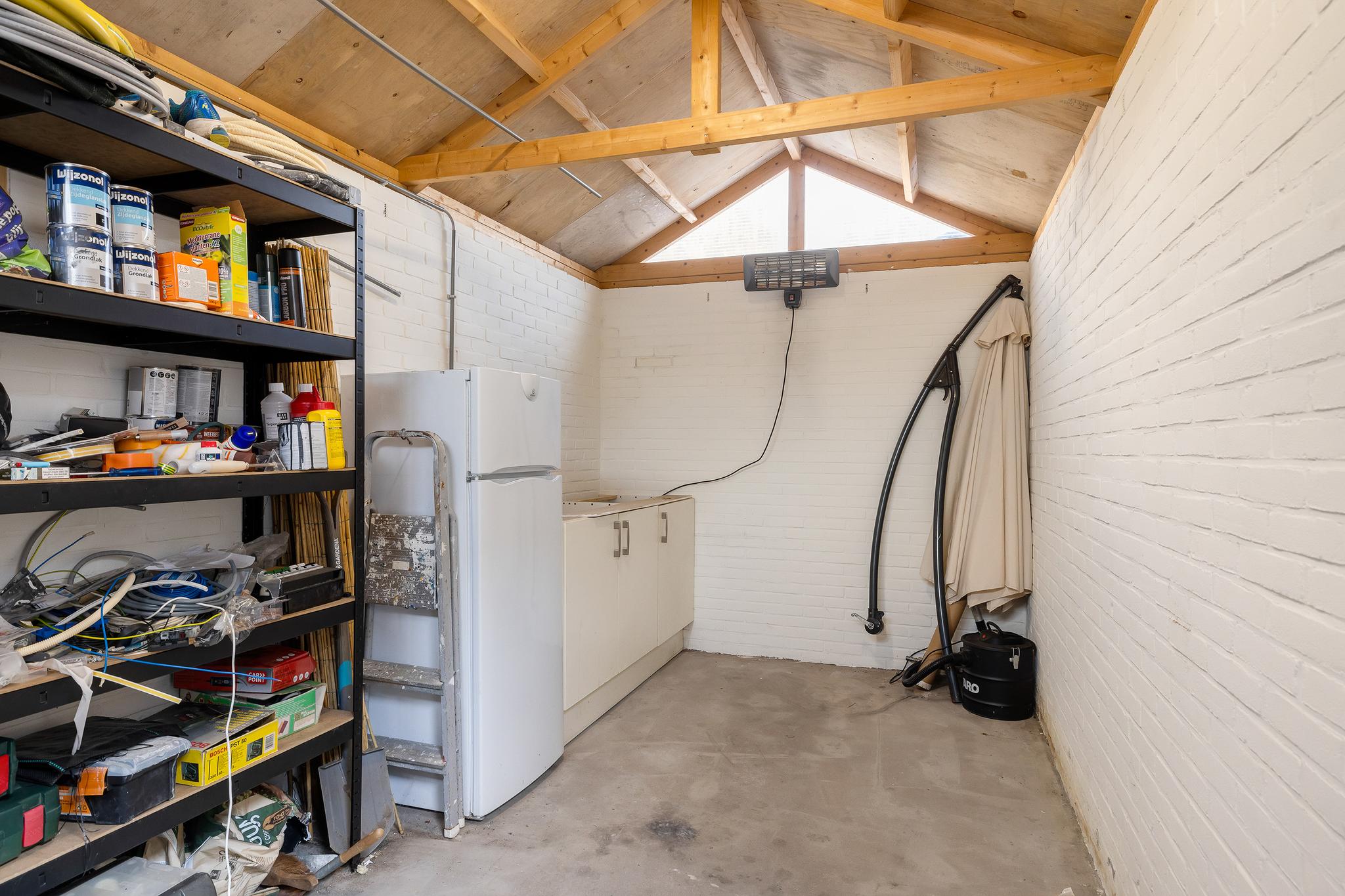 Heerlijke eigen achtertuin (en voortuin) met bijzonder grote stenen berging en achterom in deze berging. De ruimte is dusdanig groot dat hij ook prima kan dienen als hobby ruimte of werkkamer.