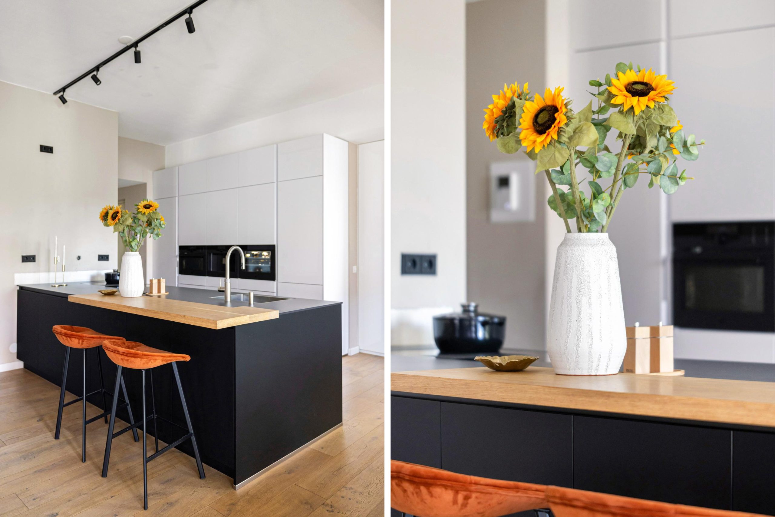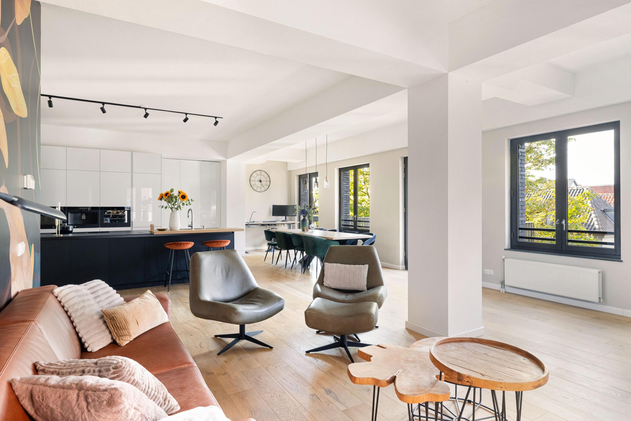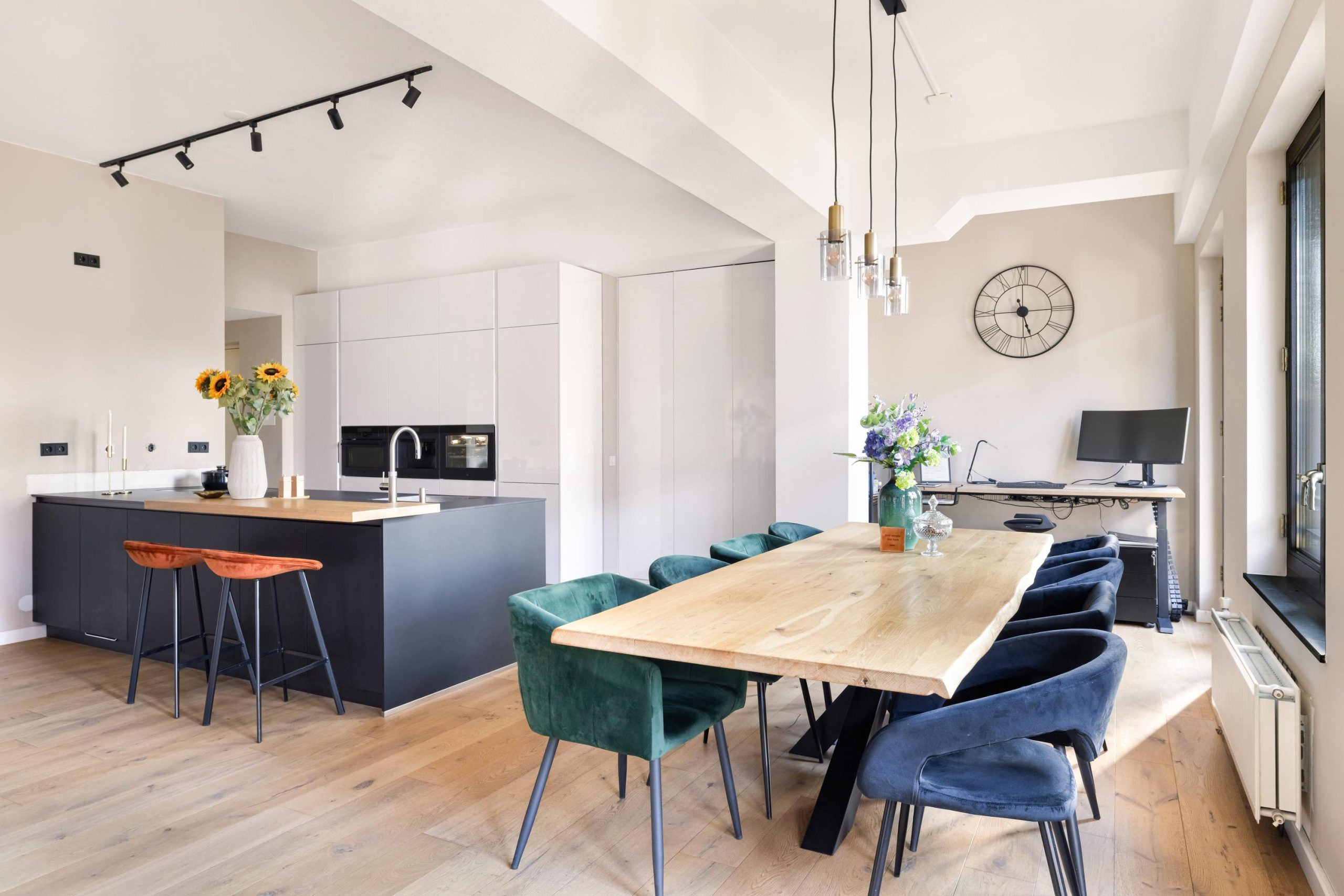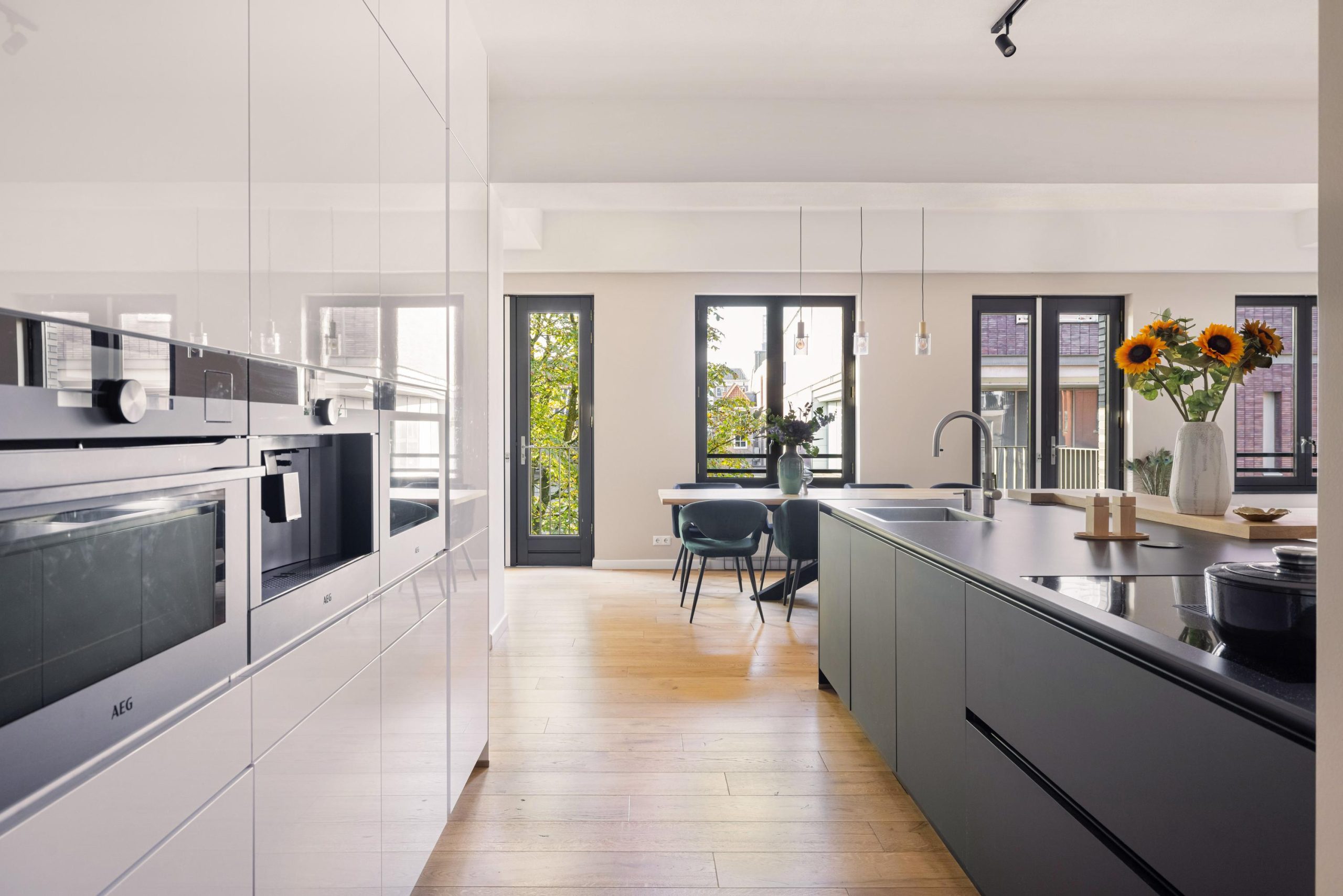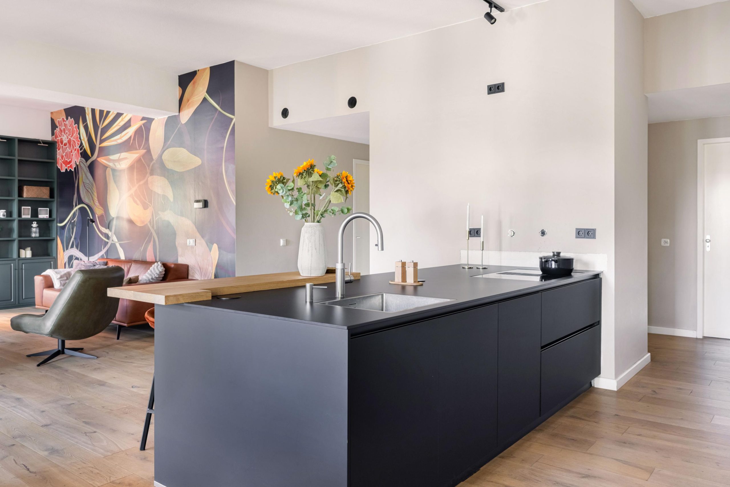 De eyecatcher van dit appartement is zonder twijfel de royale leefkeuken. Ruimte genoeg om uitgebreid te koken, gezellig lang te tafelen of met vrienden bij te praten. Het is dé plek waar je je dag begint met een kop koffie én eindigt met een goed diner! Kortom; het echte hart van de woning.