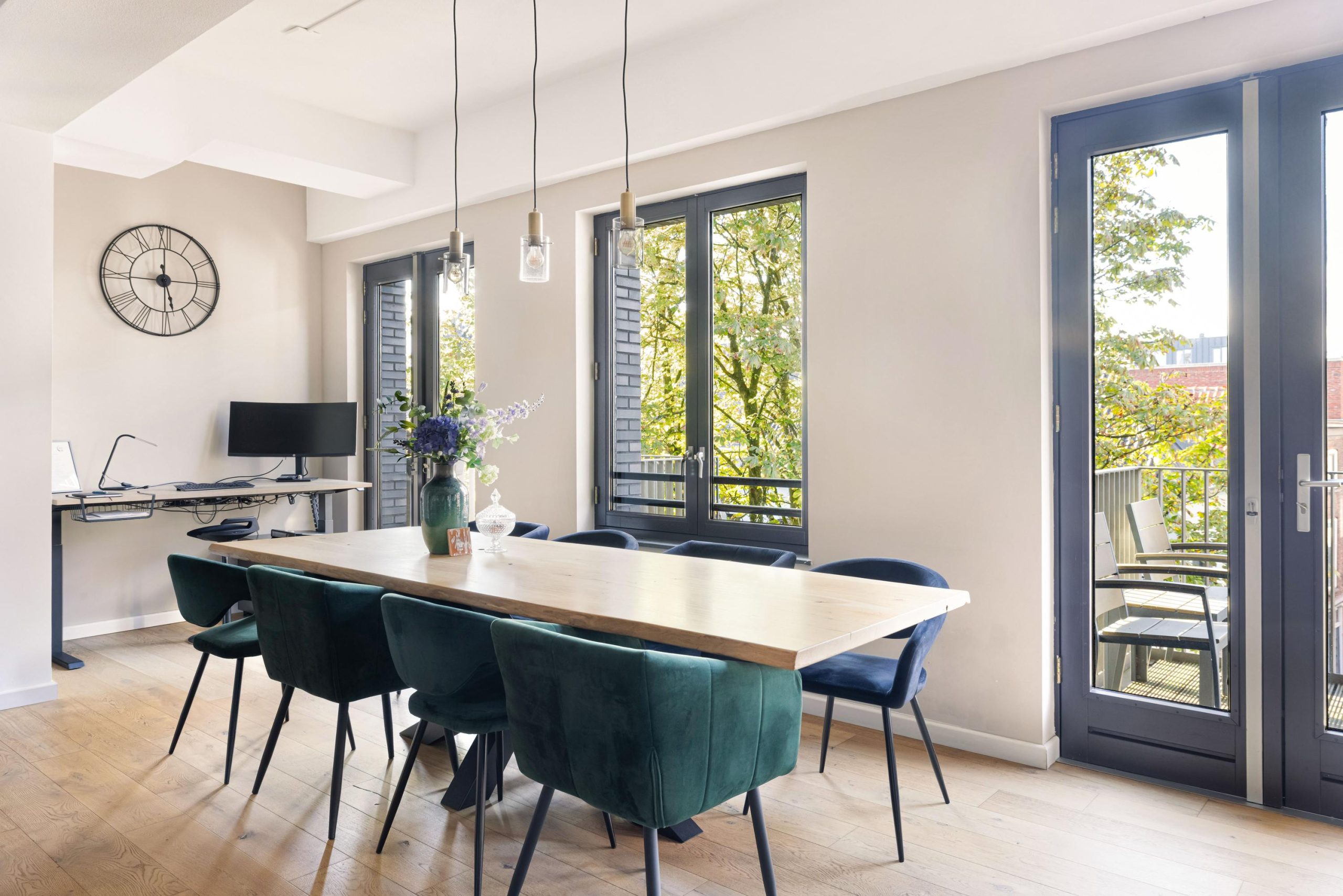 De ramen & deuren rondom zorgen voor een lichte en open sfeer. En hoewel het balkon compact is, heb je toch je eigen buitenplek om even te ontspannen.