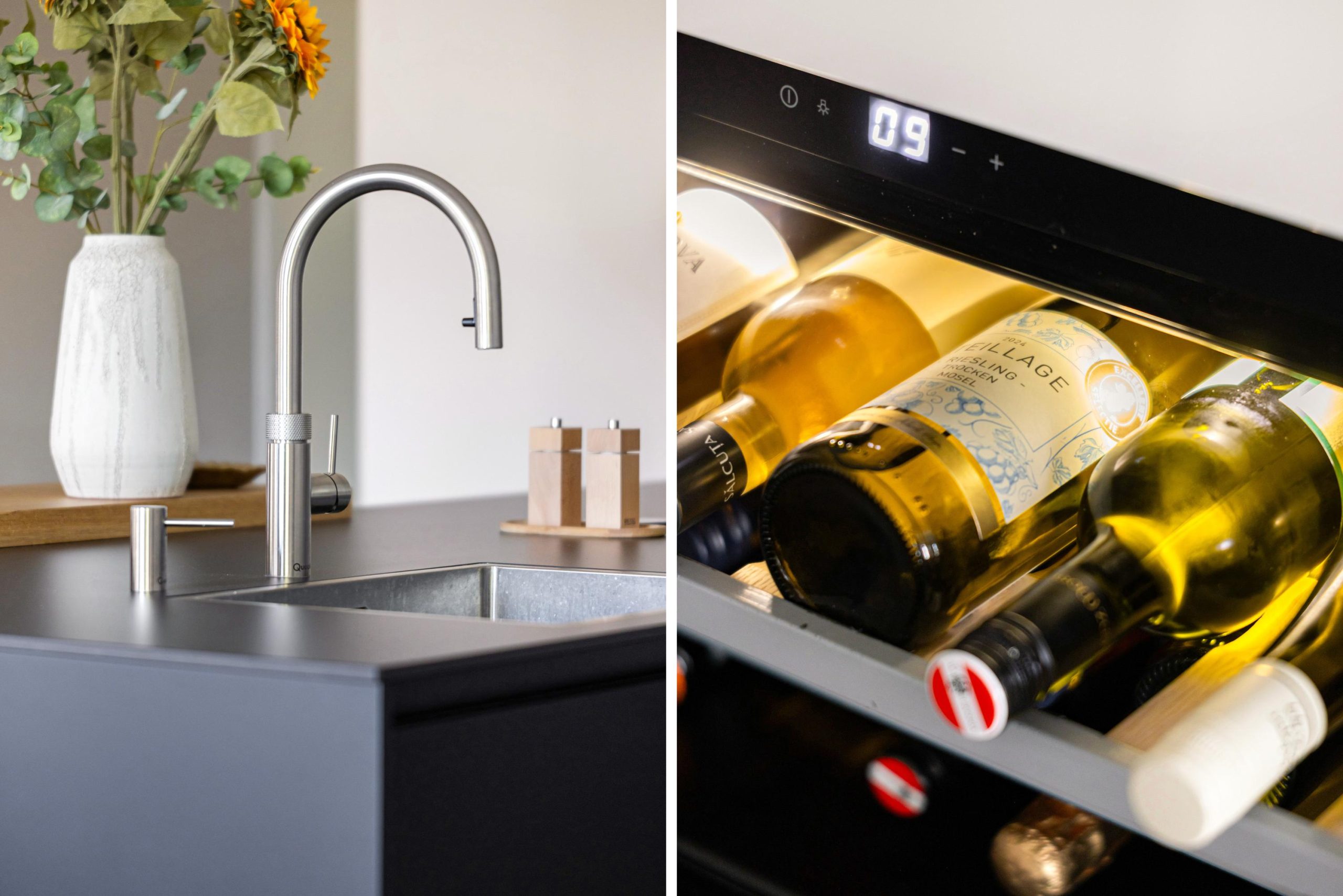De keuken in de ruimte is in 2022 gloednieuw geplaatst en een parel voor het oog. Uiteraard is deze van alle gemakken voorzien: een AEG inductie kookplaat met afzuiging, Quooker, wijnklimaatkast, koffiezet apparaat, stoomoven, koelkast, vaatwasser en een keramisch blad als afwerking. Er is goed nagedacht aan veel kastruimte in de keuken. De keuken is ingericht met een wandopstelling en een schiereiland.