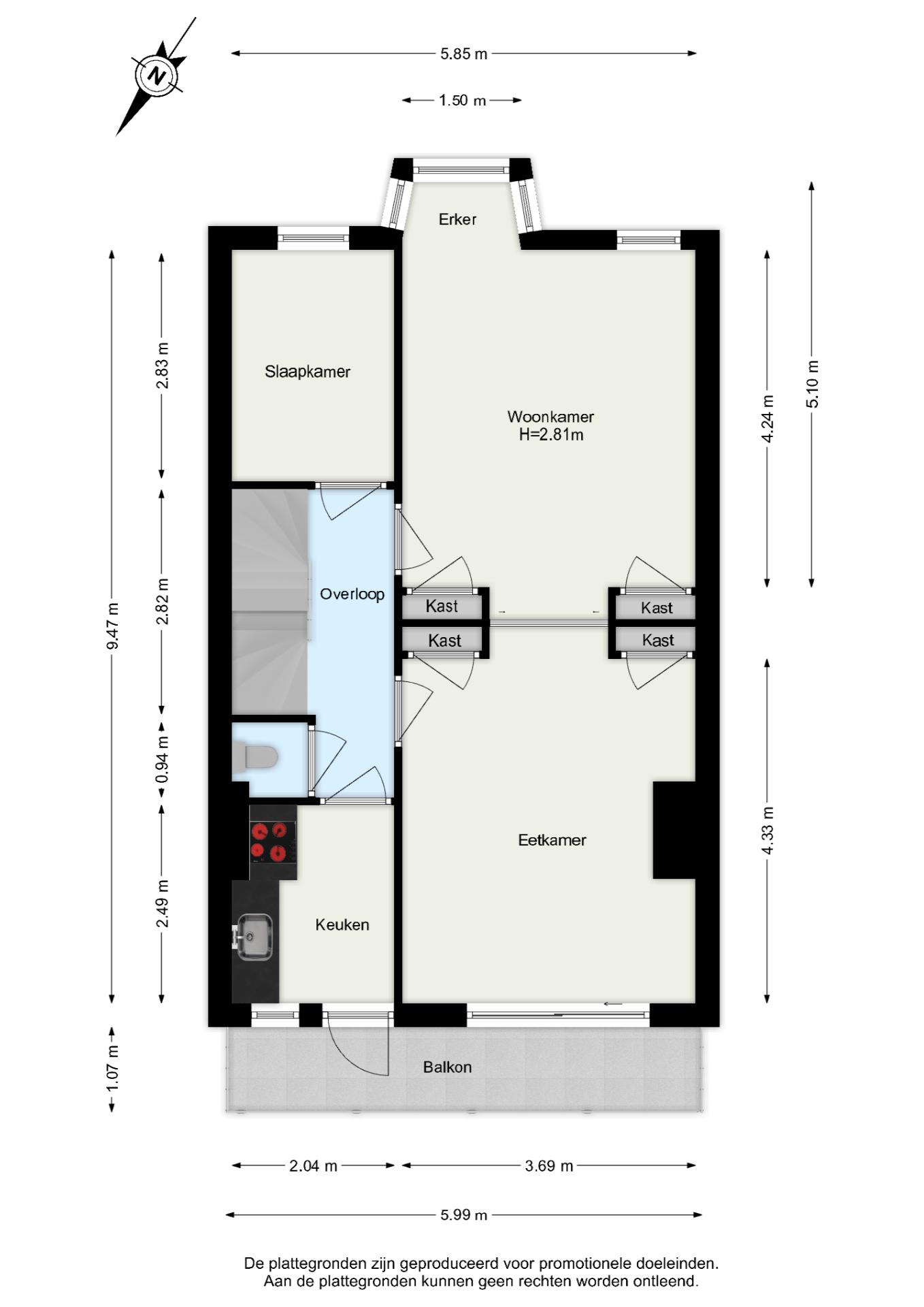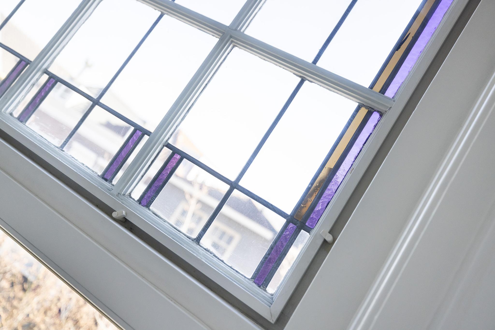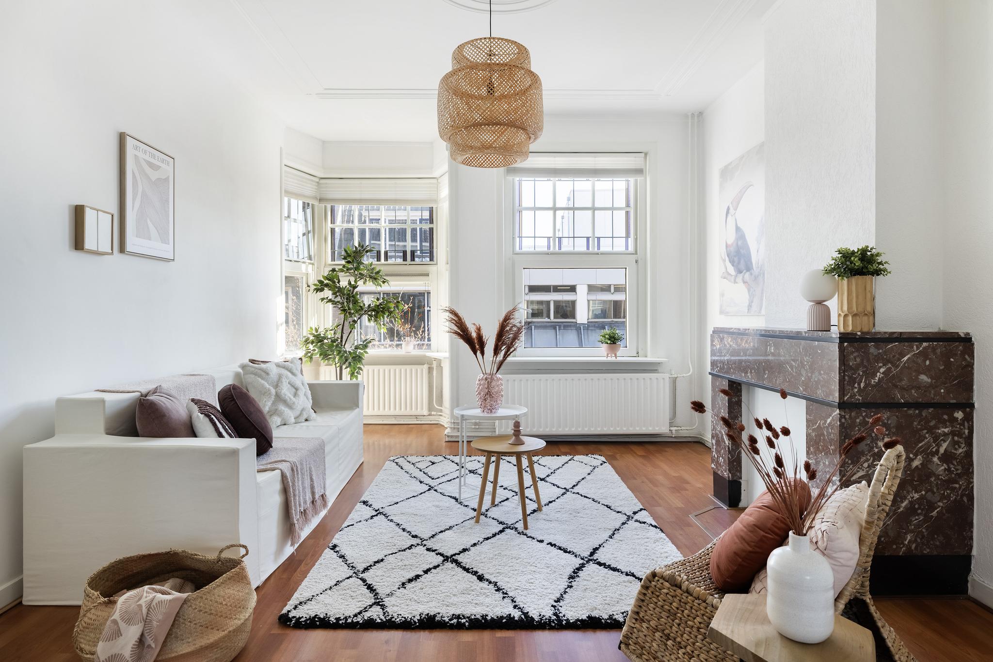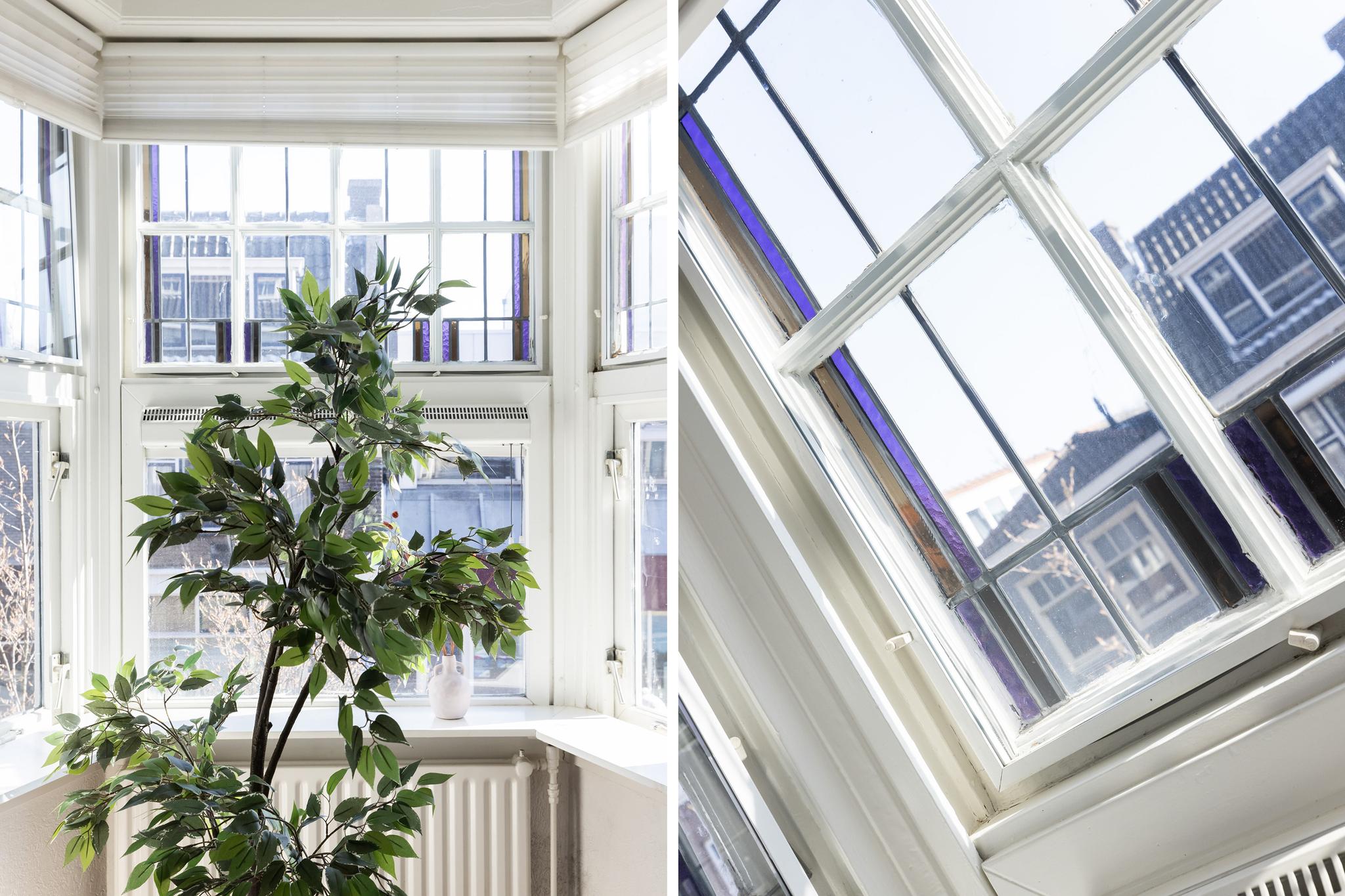 Aan de voorzijde is een heerlijke erker aanwezig en marmeren schouw, glas-in-lood ramen (met voorzet ramen) en ornamenten plafond. Vloer is afgewerkt met laminaat.