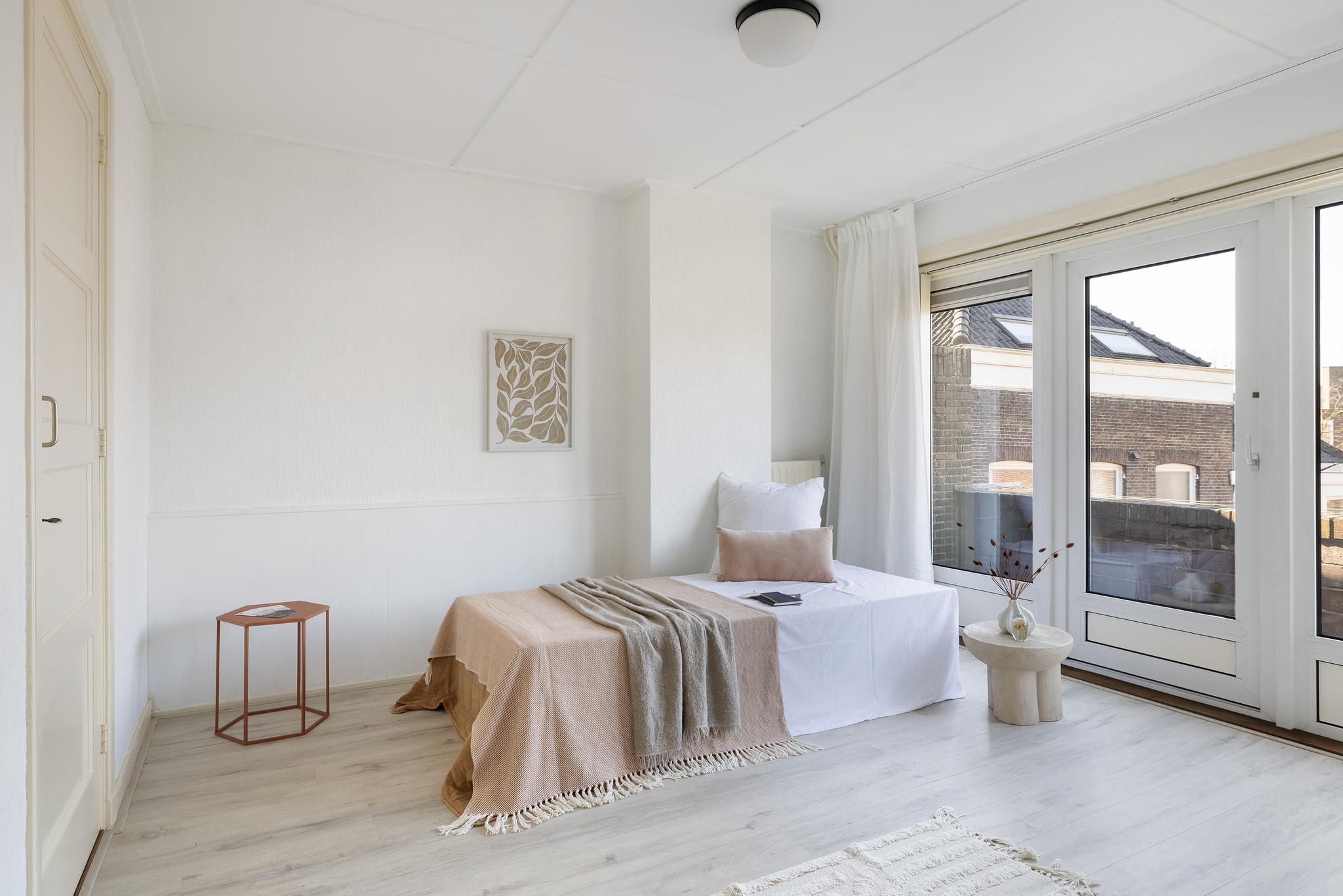 Slaapkamer 1 gelegen aan de voorzijde met deur naar het balkon en vaste kast.