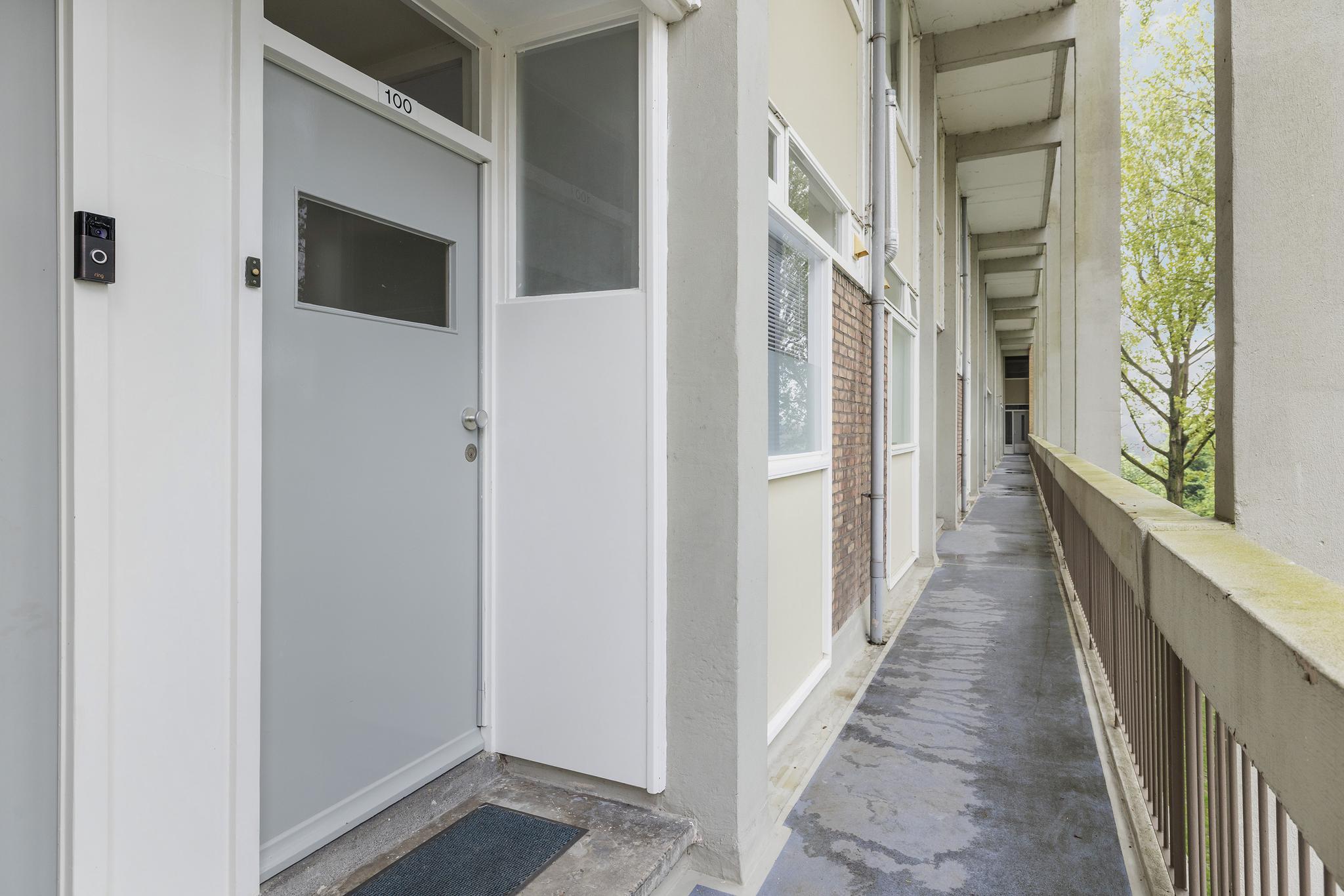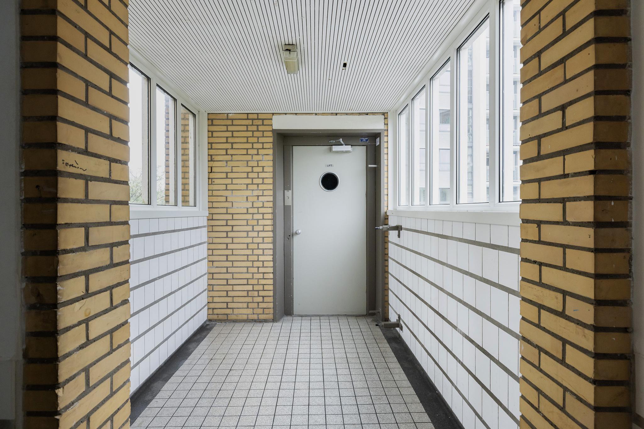 Entree in de centrale (en afgesloten) hal met brievenbussen en bellentableau. Toegang tot de bergingen, de lift en het trappenhuis.