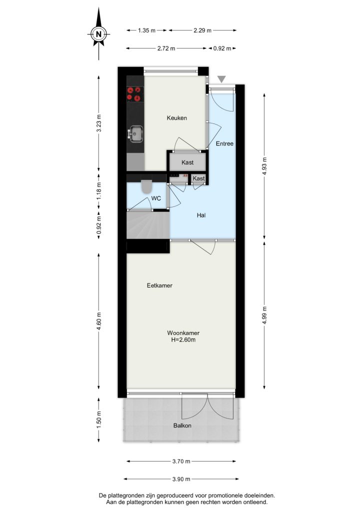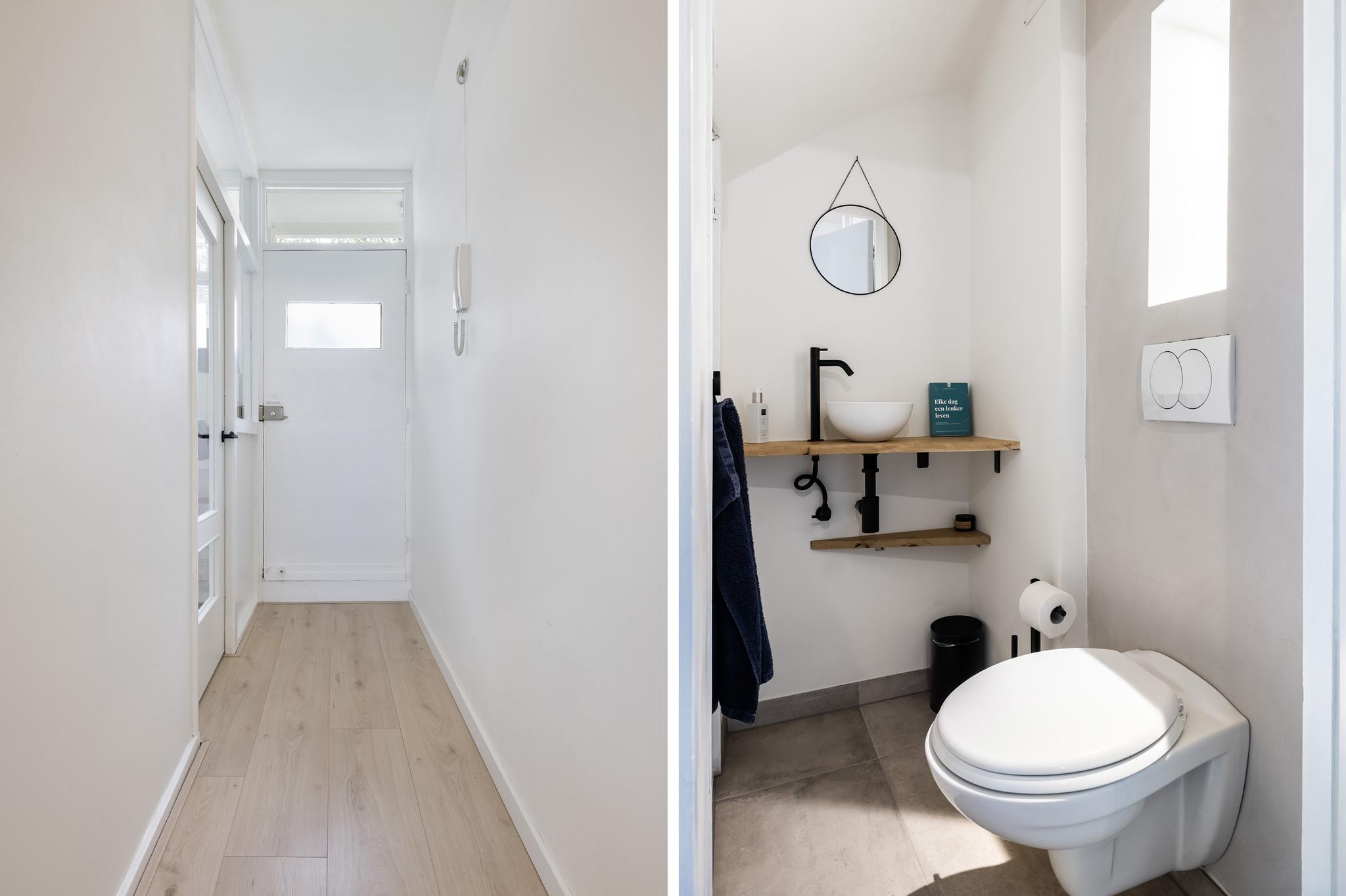 In de hal tussen de woonkamer en de keuken bevindt zich het toilet, de meterkast, een praktische garderobe kast en de trapopgang naar de verdieping.